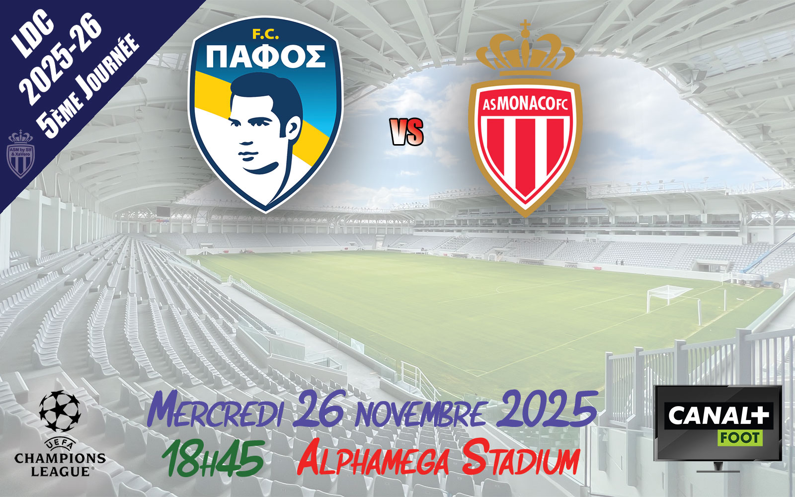 Pour la cinquième journée de la phase de poule de la Ligue, l'AS Monaco (19e) se déplace chez le Paphos FC (20e).