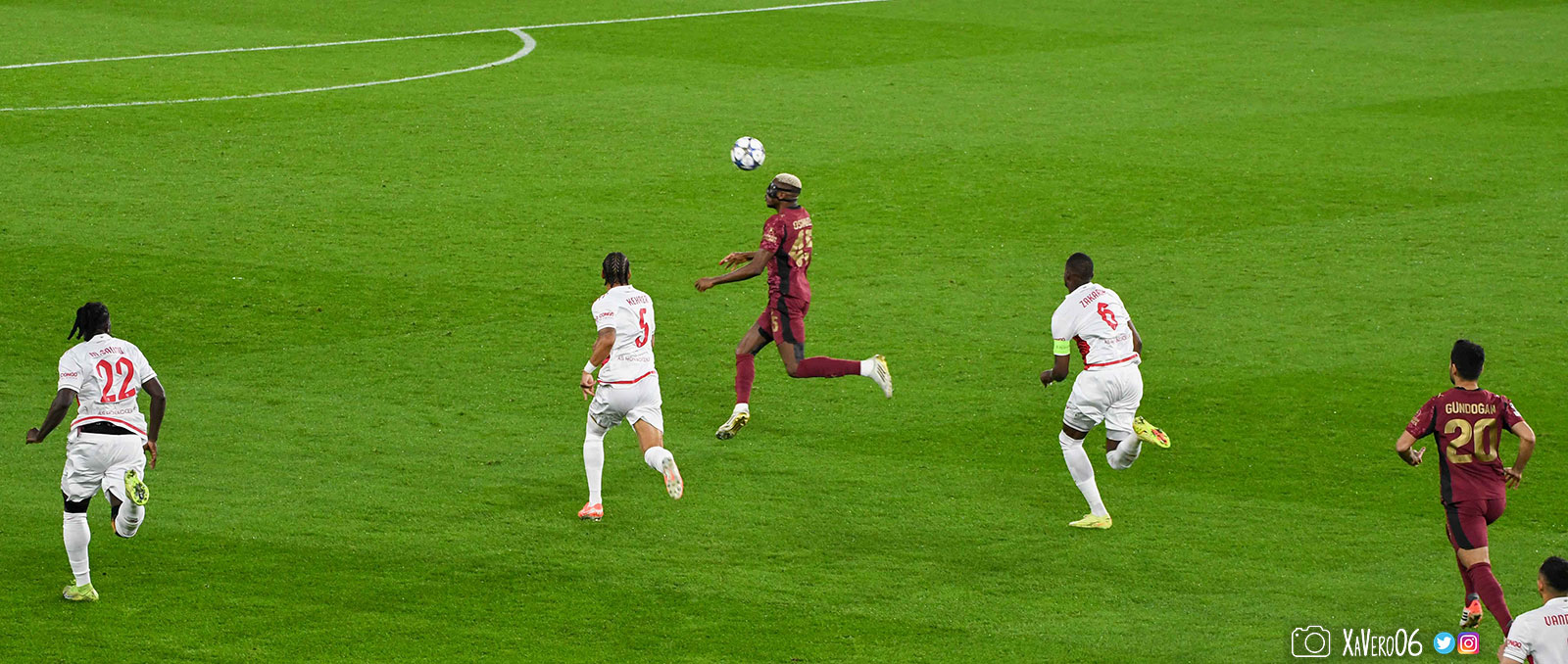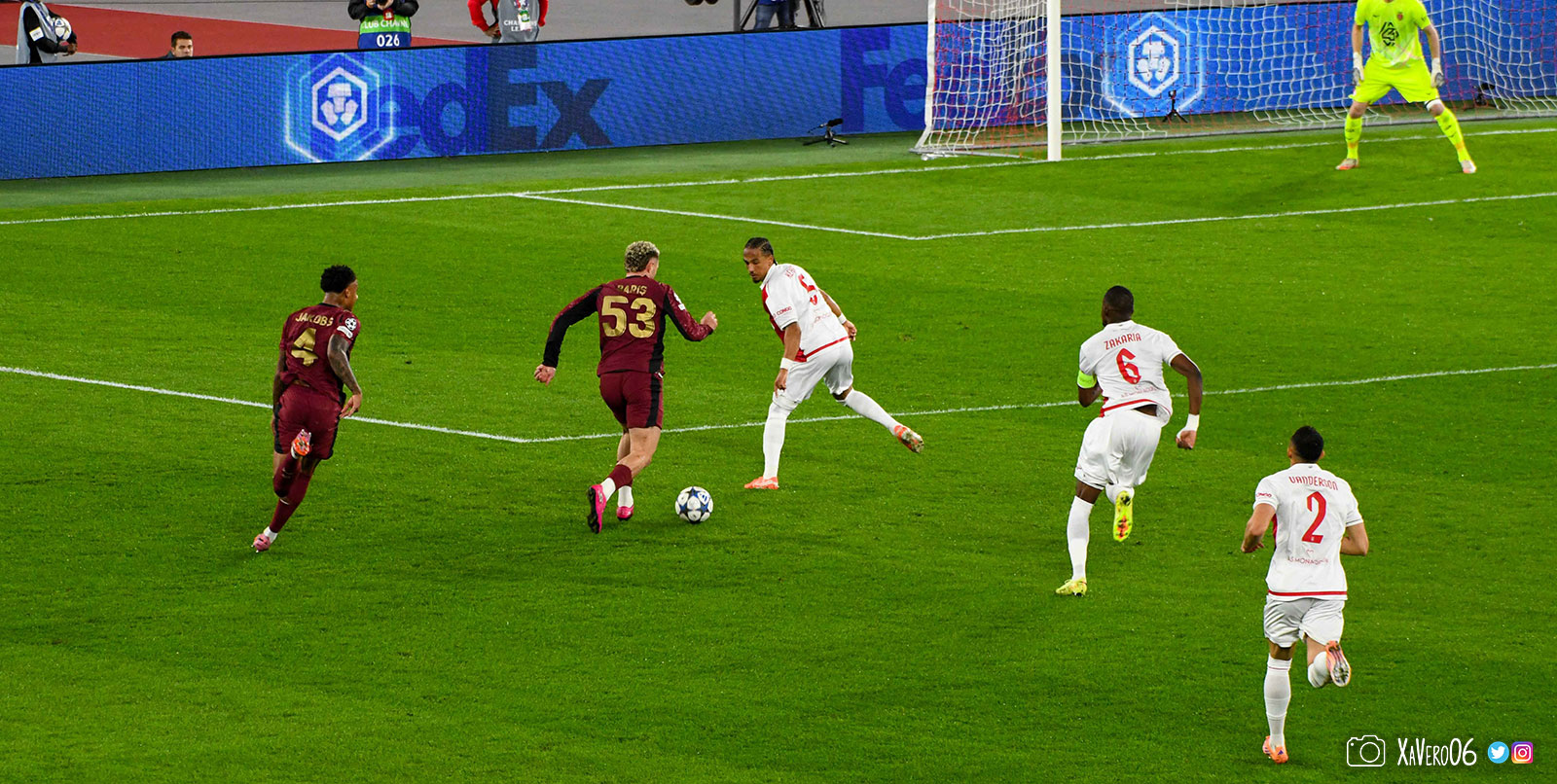 - Sané percute côté droit, revient dans l'axe en dribblant entre les monégasques, décale en entrant dans la surface à droite pour Gündogan qui centre pour le second poteau pour la tête d'Osimhen, mal placé qui met largement au-dessus (16e).