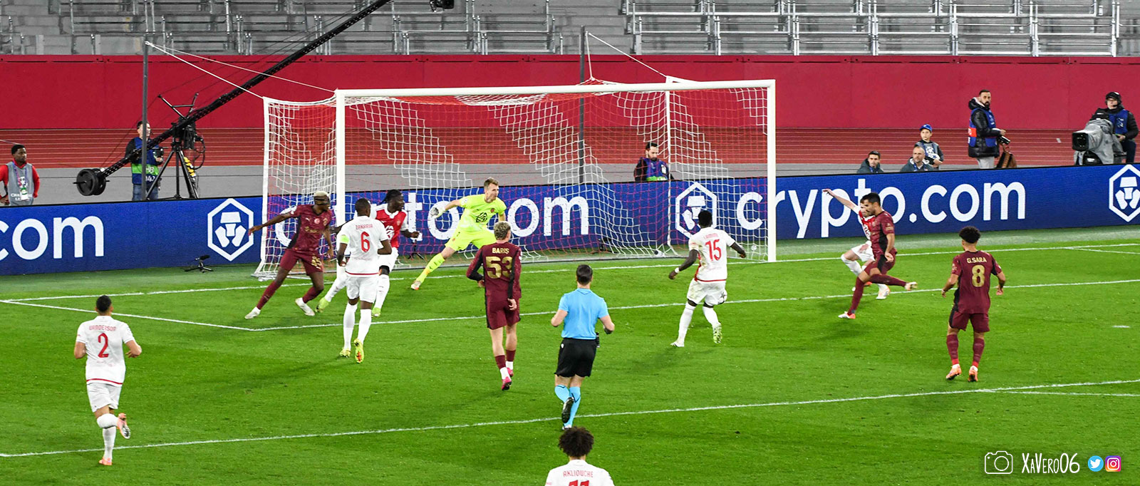 L'arbitre demande à ce que le changement se fasse rapidement, Güvenç va se positionner dans le but et Lamine Camara frappe le corner.
