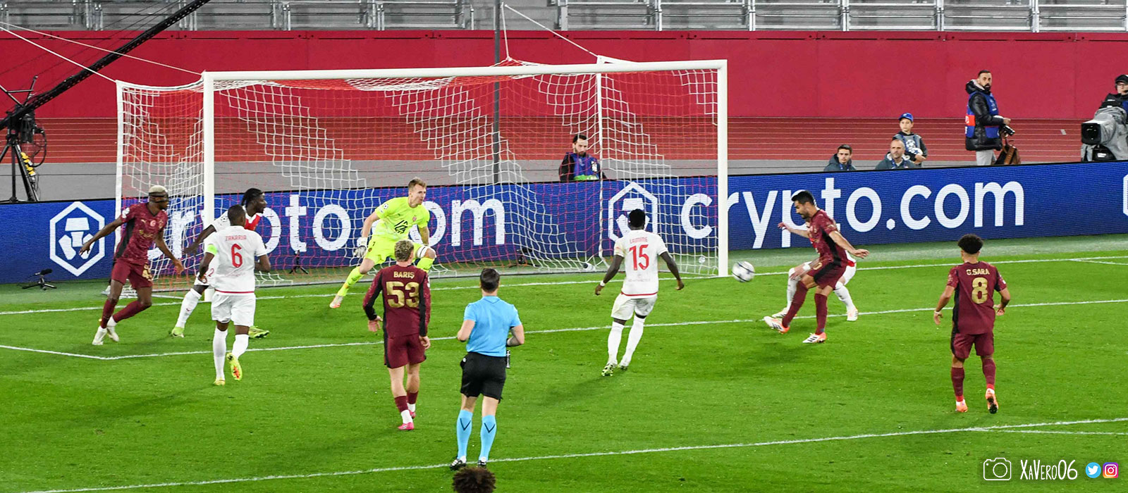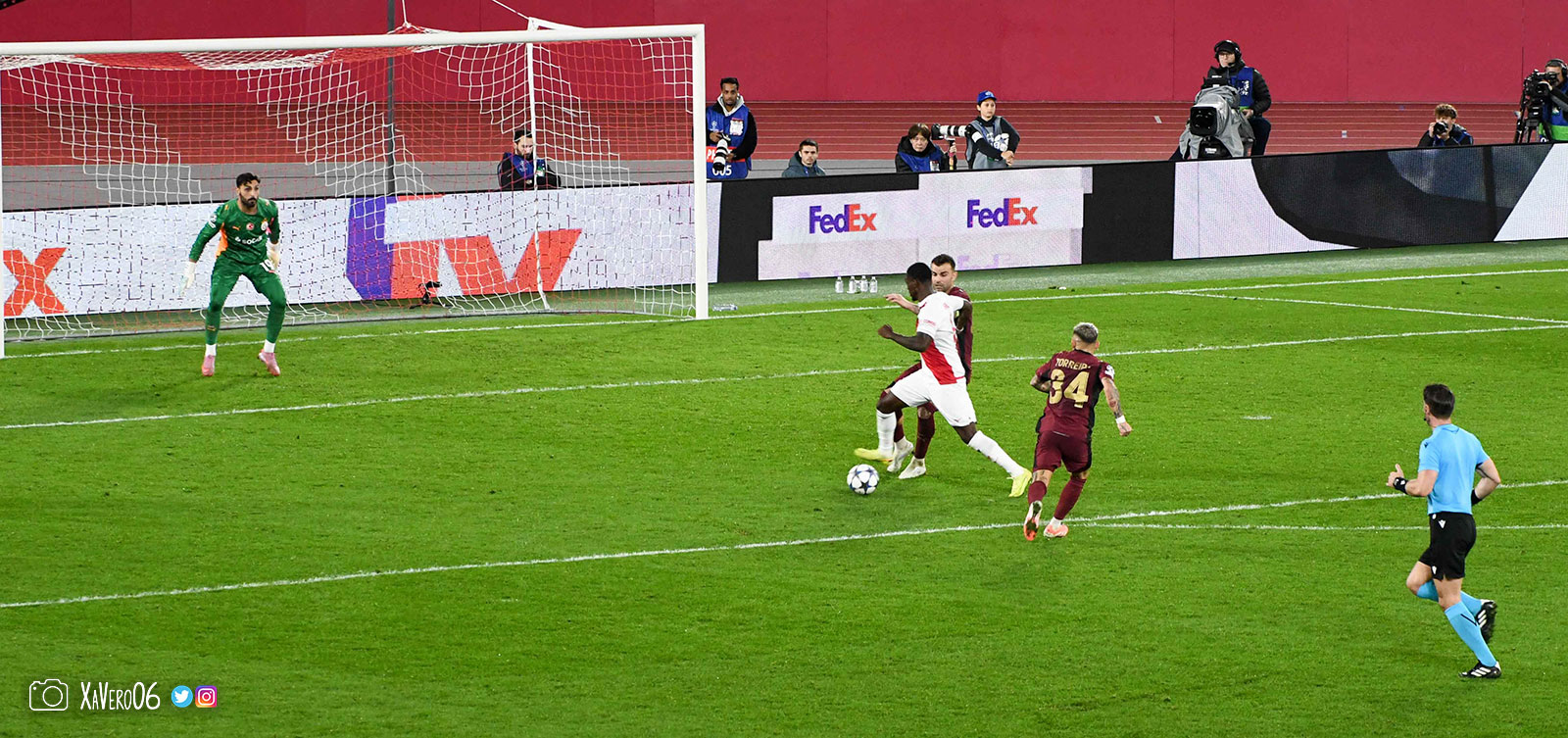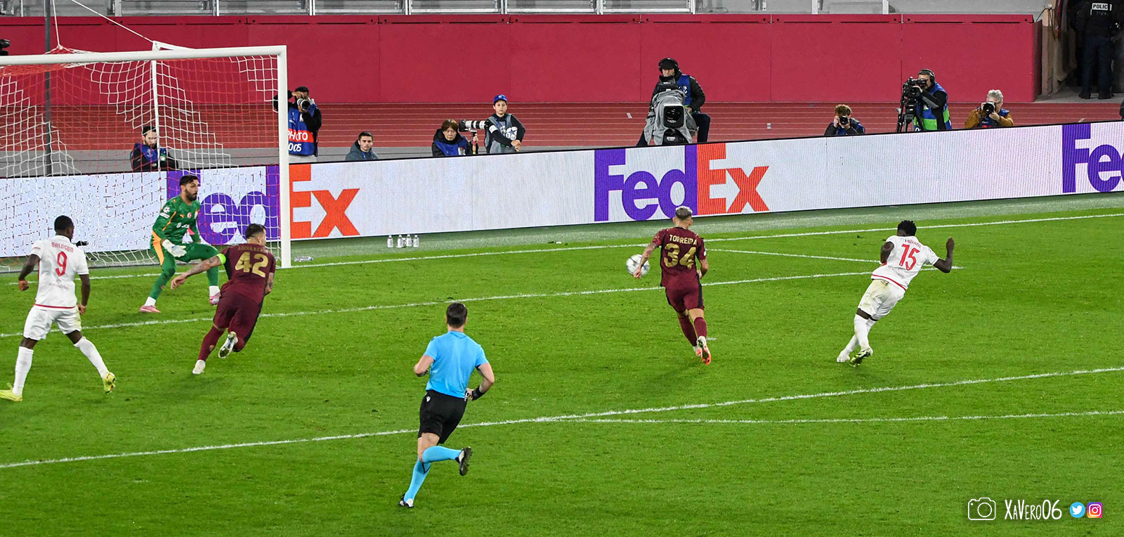 - Sallai côté droit met en retrait pout Sara aux 20m, contré par le tacle de Zakaria. Le ballon part en cloche et retombe dans les gants de Hrádecký qui peut relancer (17e).