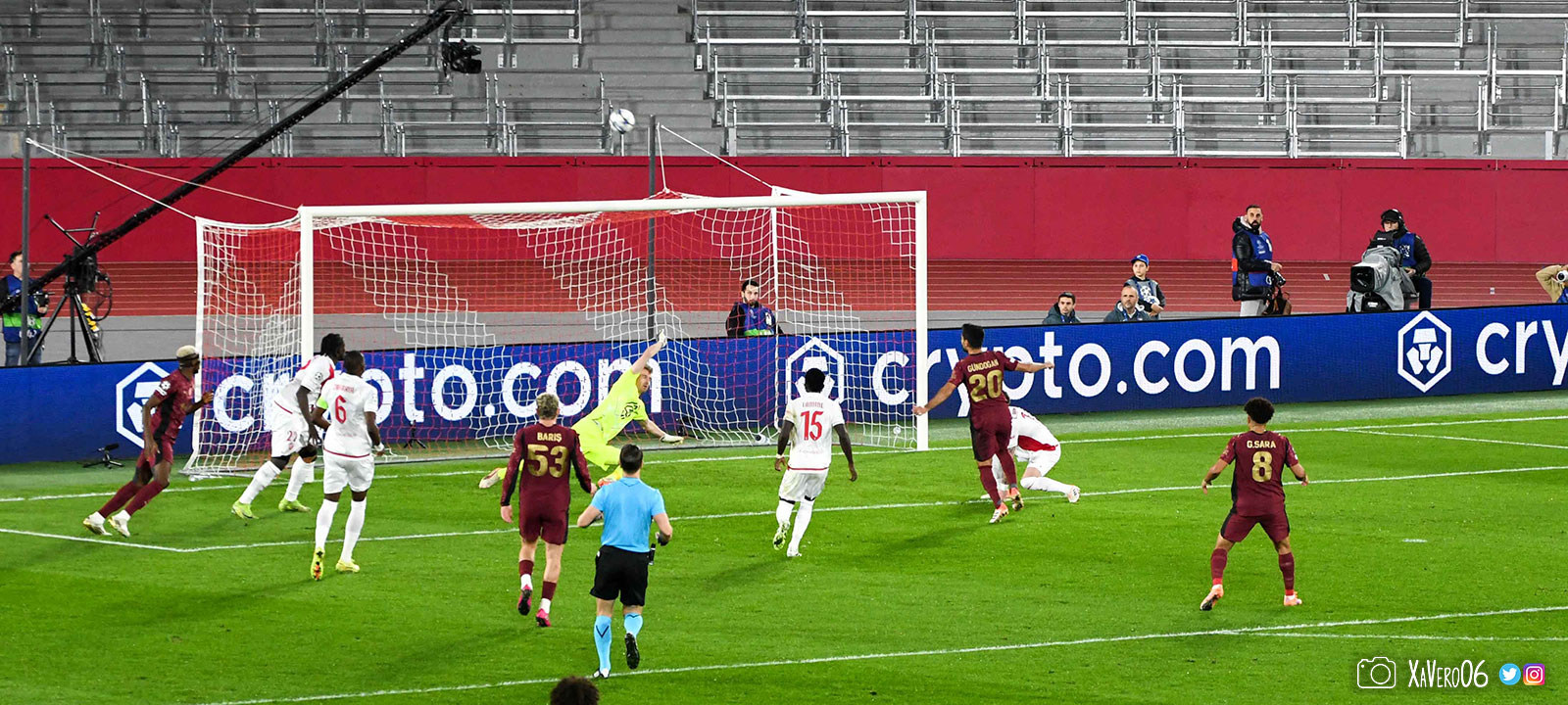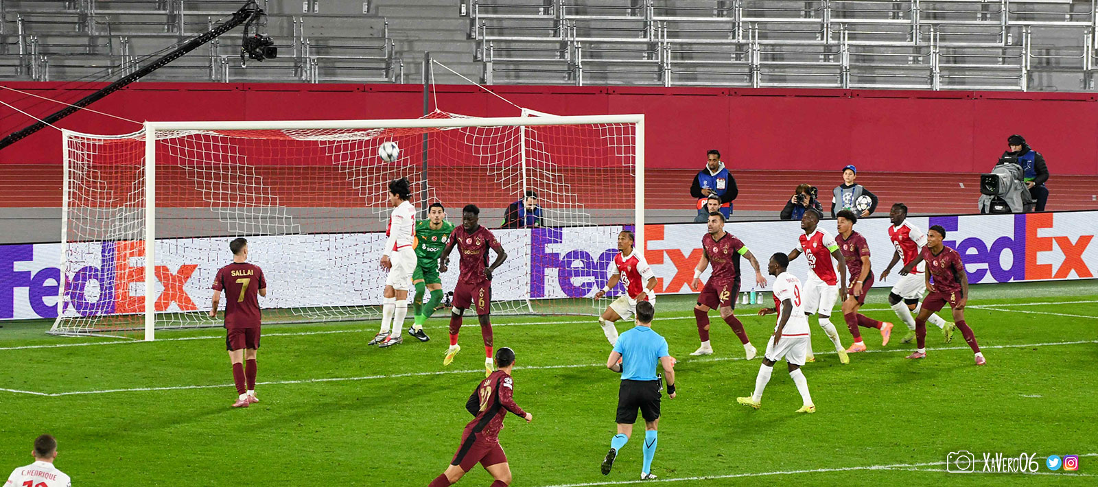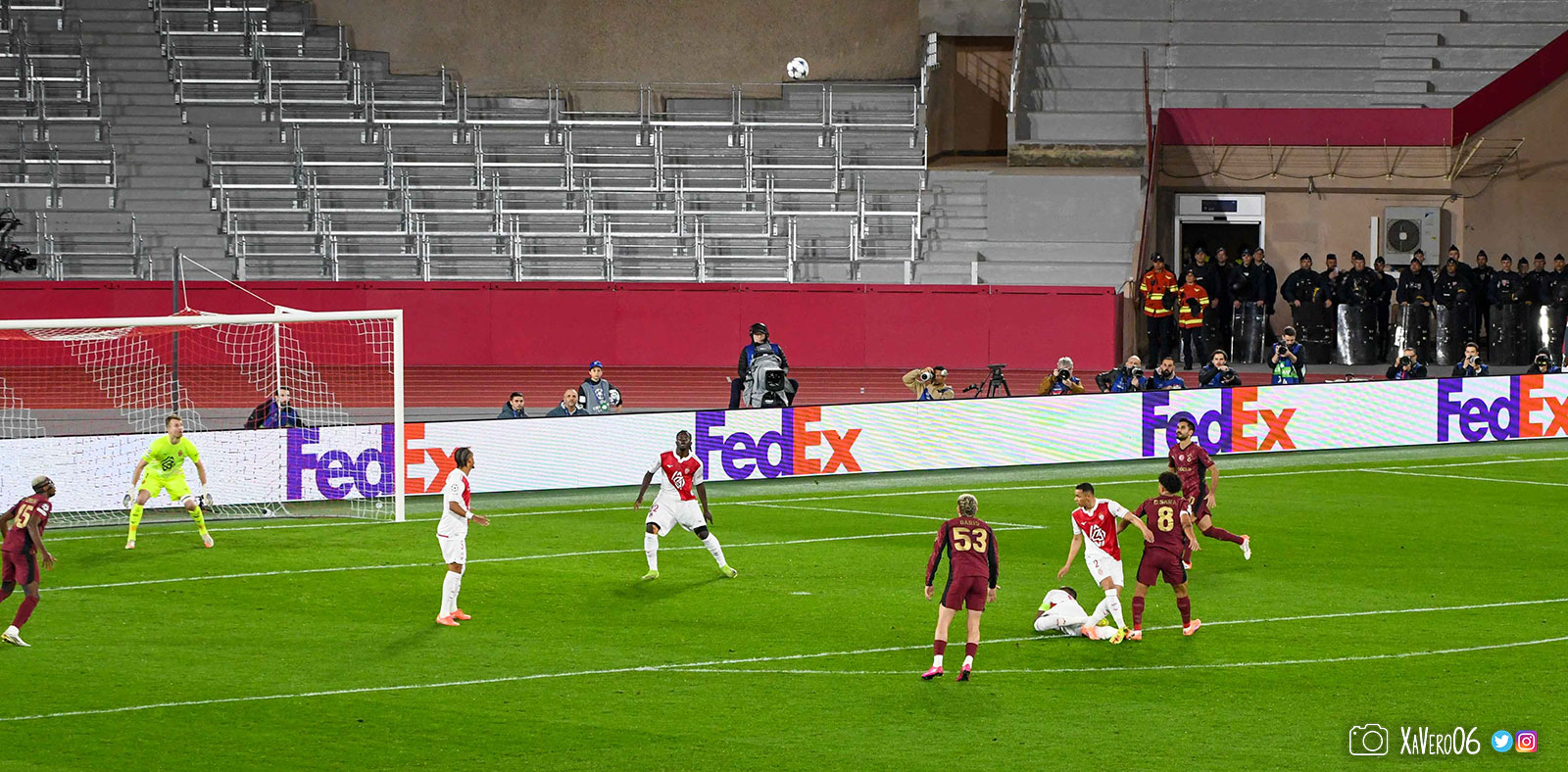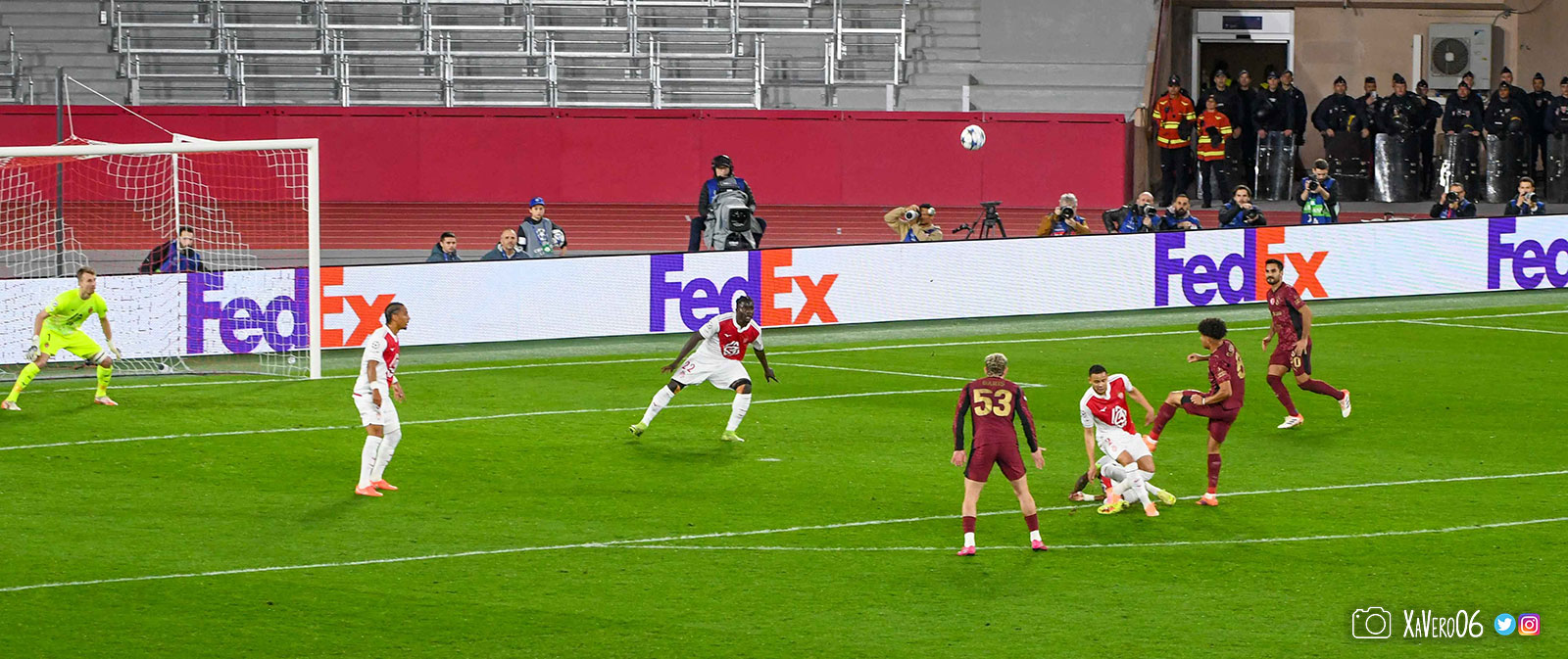 Sur le 6m, les turcs tentent de repartir côté droit et se font prendre le ballon aux 30m par le pressing de l'ASM. Golovin joue vite pour Akliouche aux 25m qui dévie dans la course de Minamino sur la gauche de la surface qui contrôle et centre parfaitement pour Folarin Balogun, seul aux 6m au premier poteau qui reprend mais tire à côté (59e).