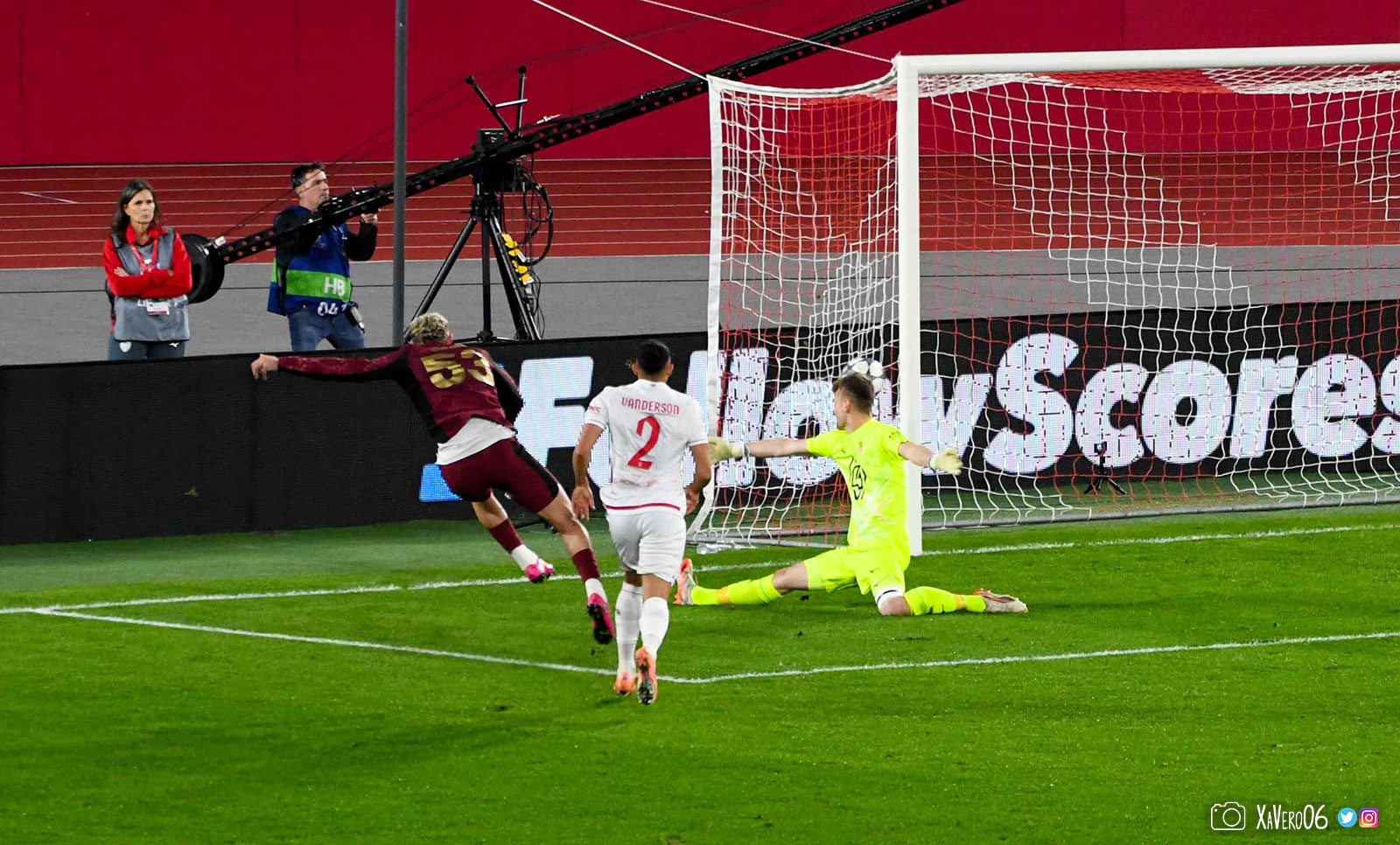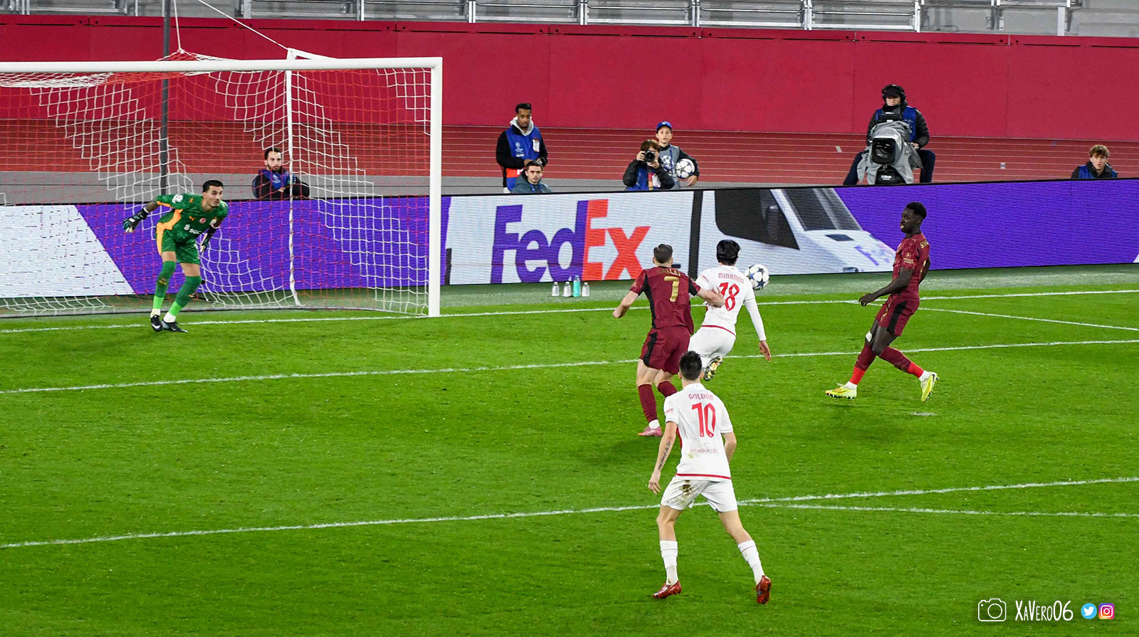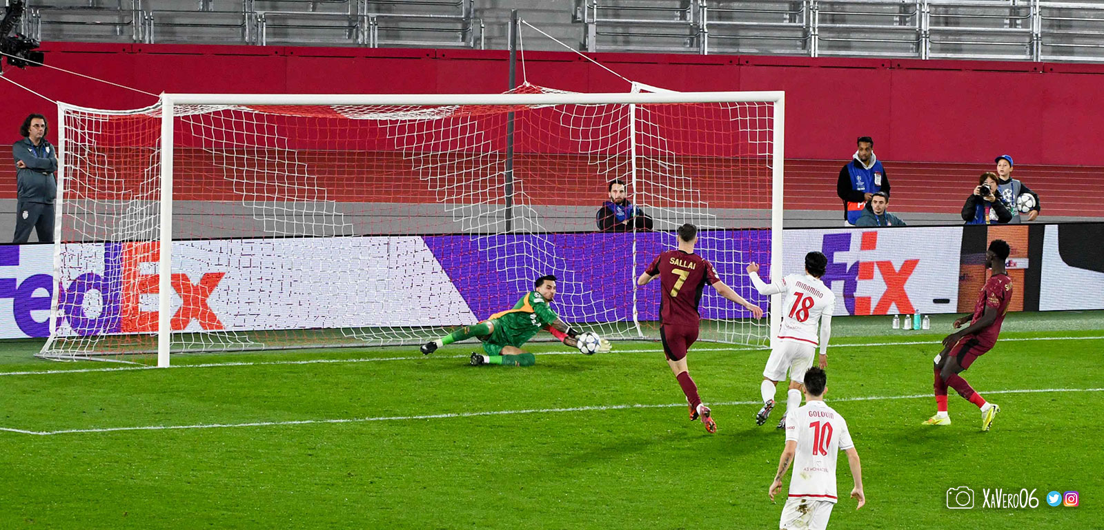 Encore une longue transversale de Vanderson pour Golovin côté gauche aux 35m, qui contrôle, accélère et décale pour Caio passé dans le dos du défenseur, qui met en retrait pour Balogun qui laisse passer entre ses jambes pour Lamine Camara dans son dos, seul aux 16m face au but qui reprend du plat du pied droit et met le ballon au-dessus de la lucarne droite de Güvenç qui avait plongé sur sa gauche (80e).