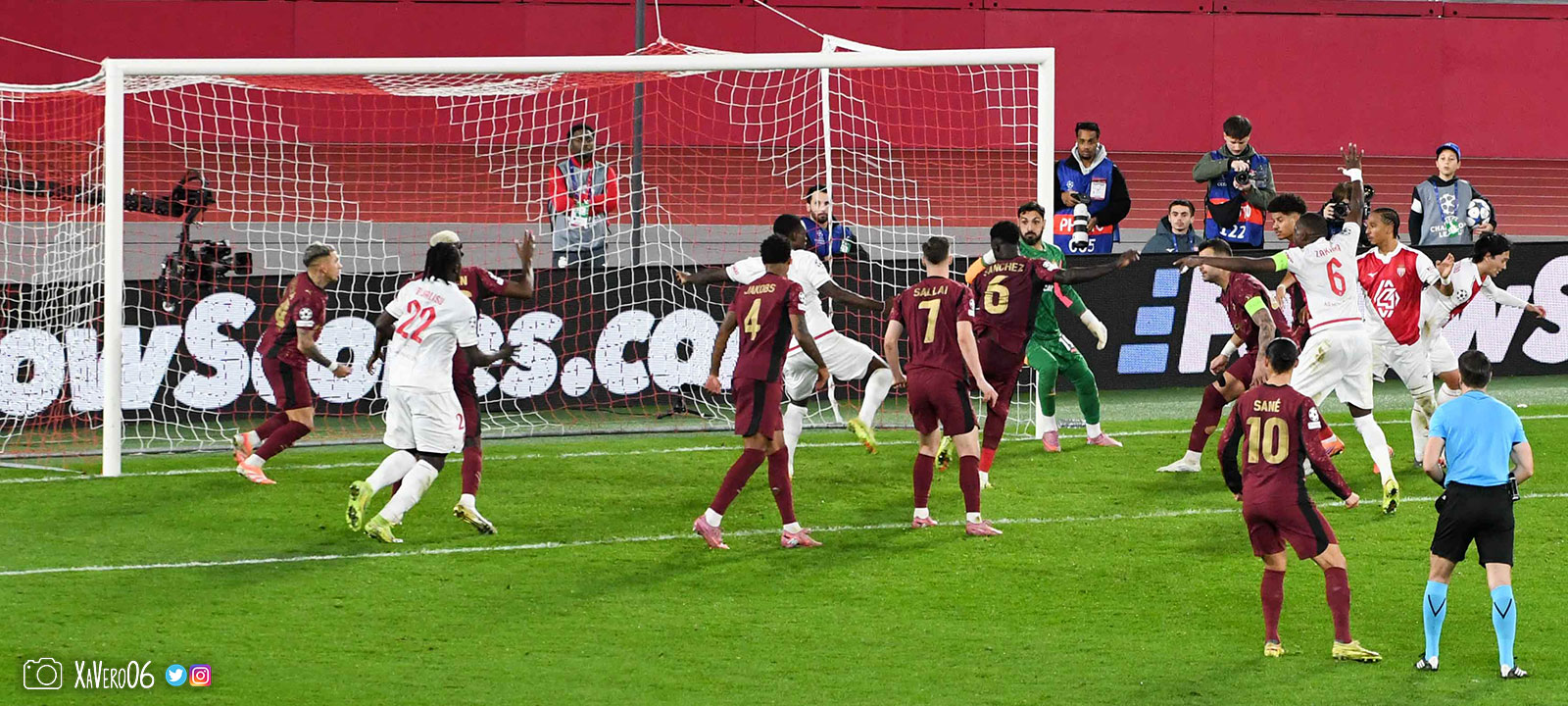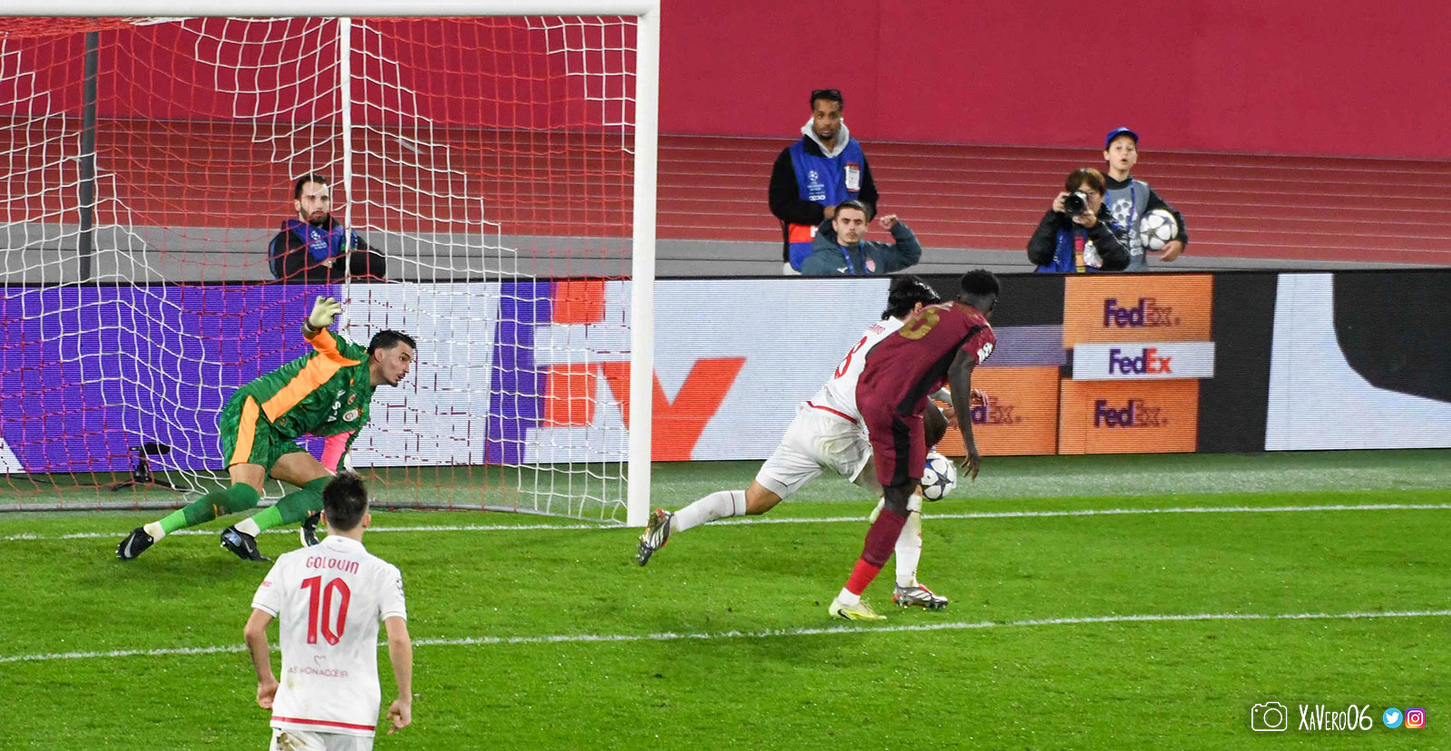 Sur celui-ci, le long ballon aérien de Camara est remisé au second poteau par Salisu en reculant pour l'axe et Balogun, qui recule aussi et ne peut redresser la course de la tête (21e).