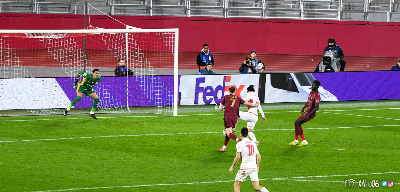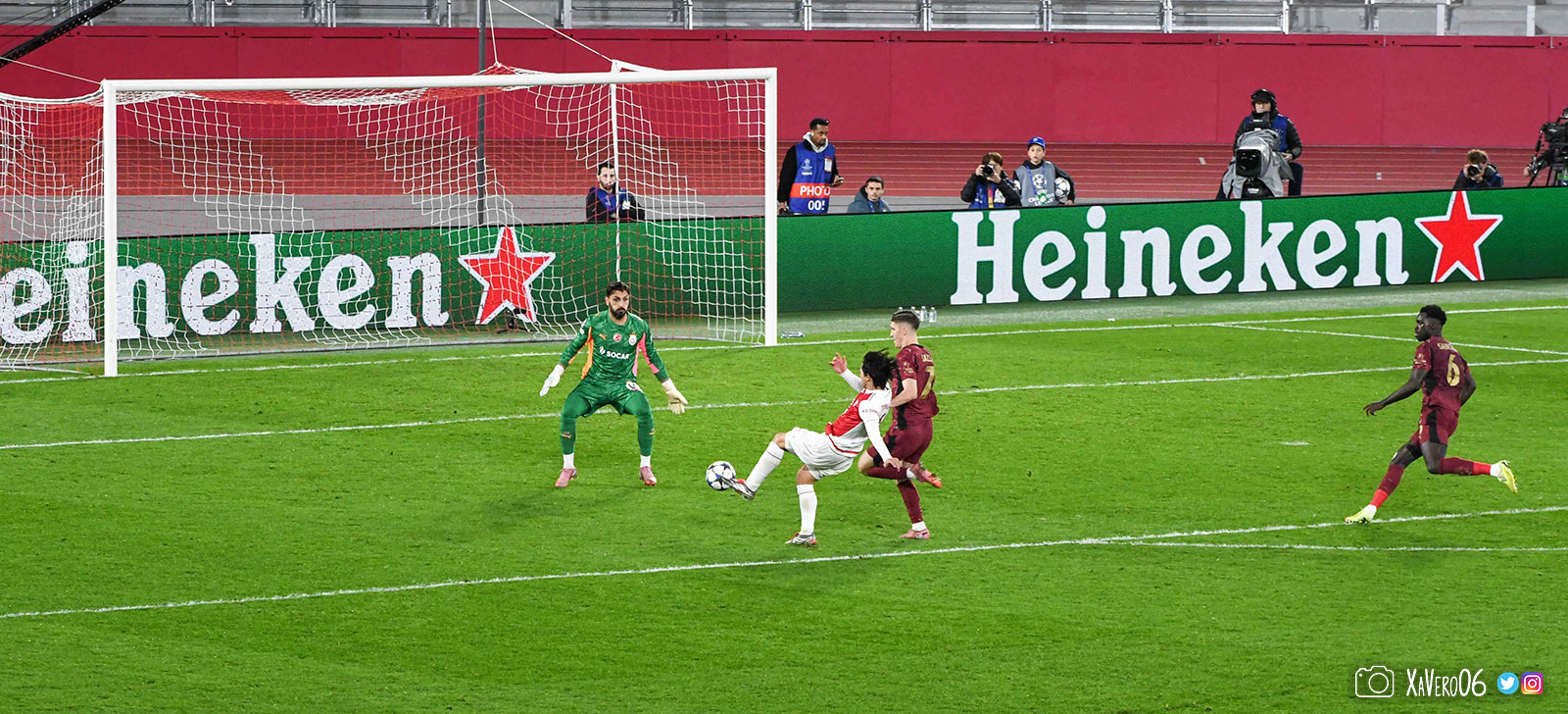 - Percée de Zakaria plein axe qui lance Minamino avec une diagonale pour le côté gauche de la surface, qui contrôle, lêve la tête et centre pour le suisse qui a poursuivi son effort, mais sa tête devant Jakobs n'est pas cadrée et passe à côté du montant (24e).
