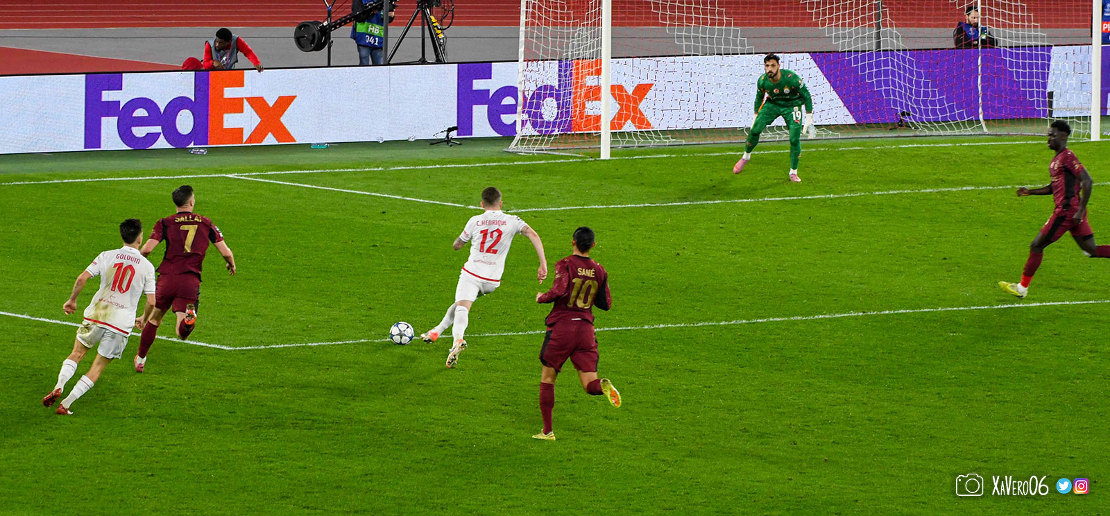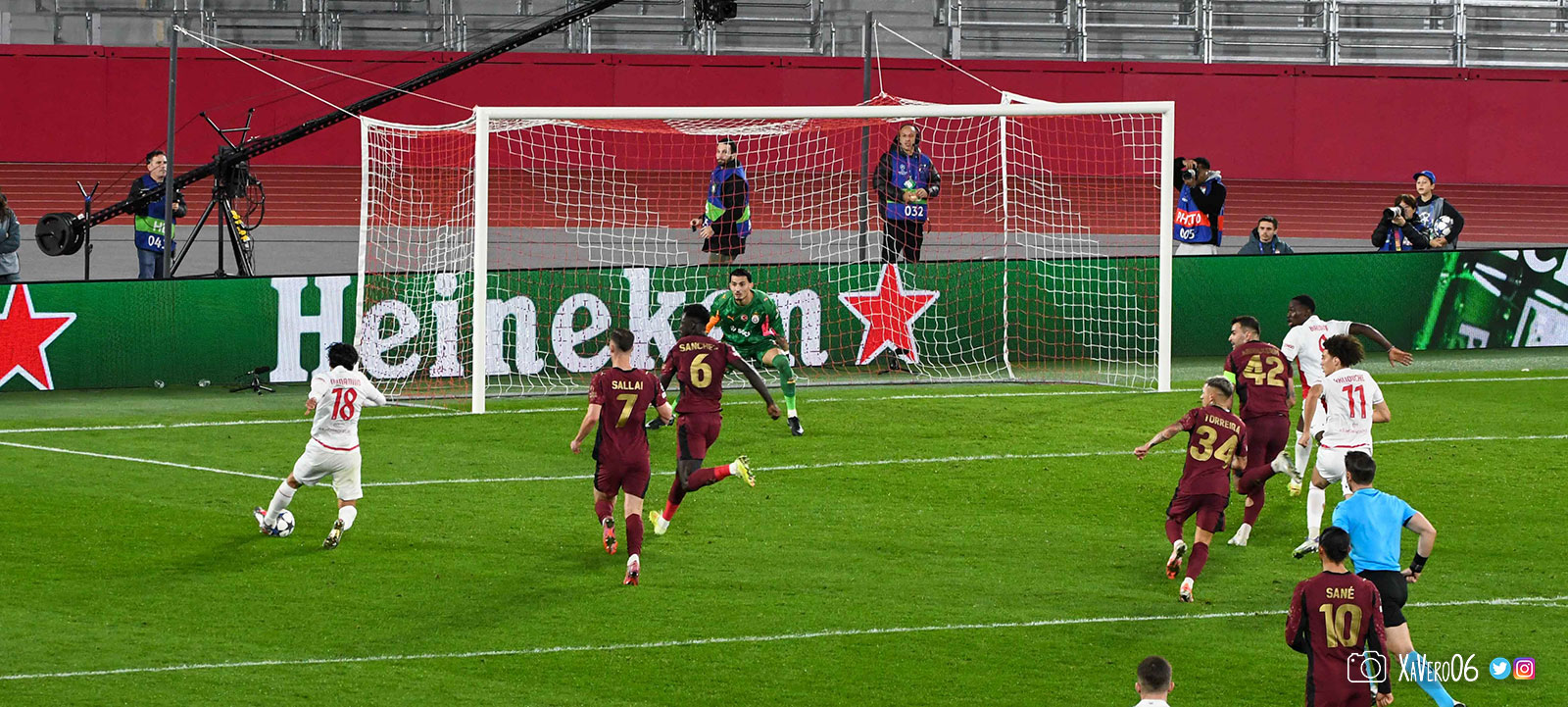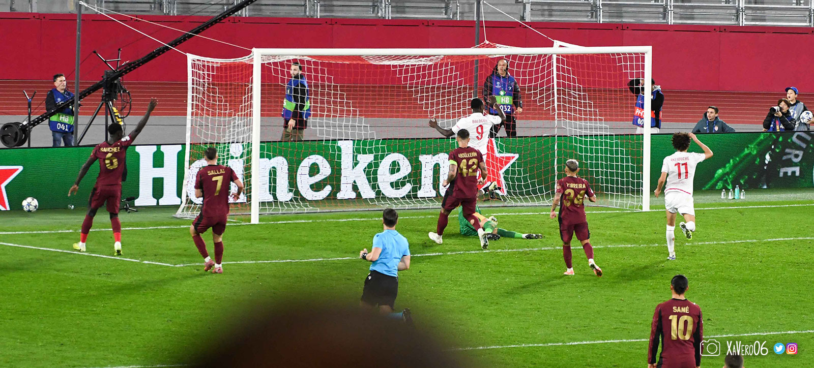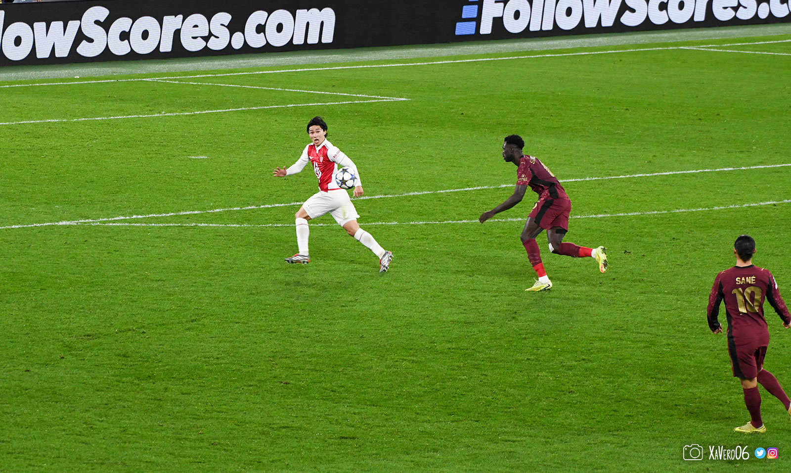 L'arbitre fait signe de jouer, Minamino reste au sol, le jeu continue avec Sané qui vient déborder, rentre dans la surface asémiste et est repris par Caio avant que l'arbitre n'arrête le jeu, appelé par la V.A.R.