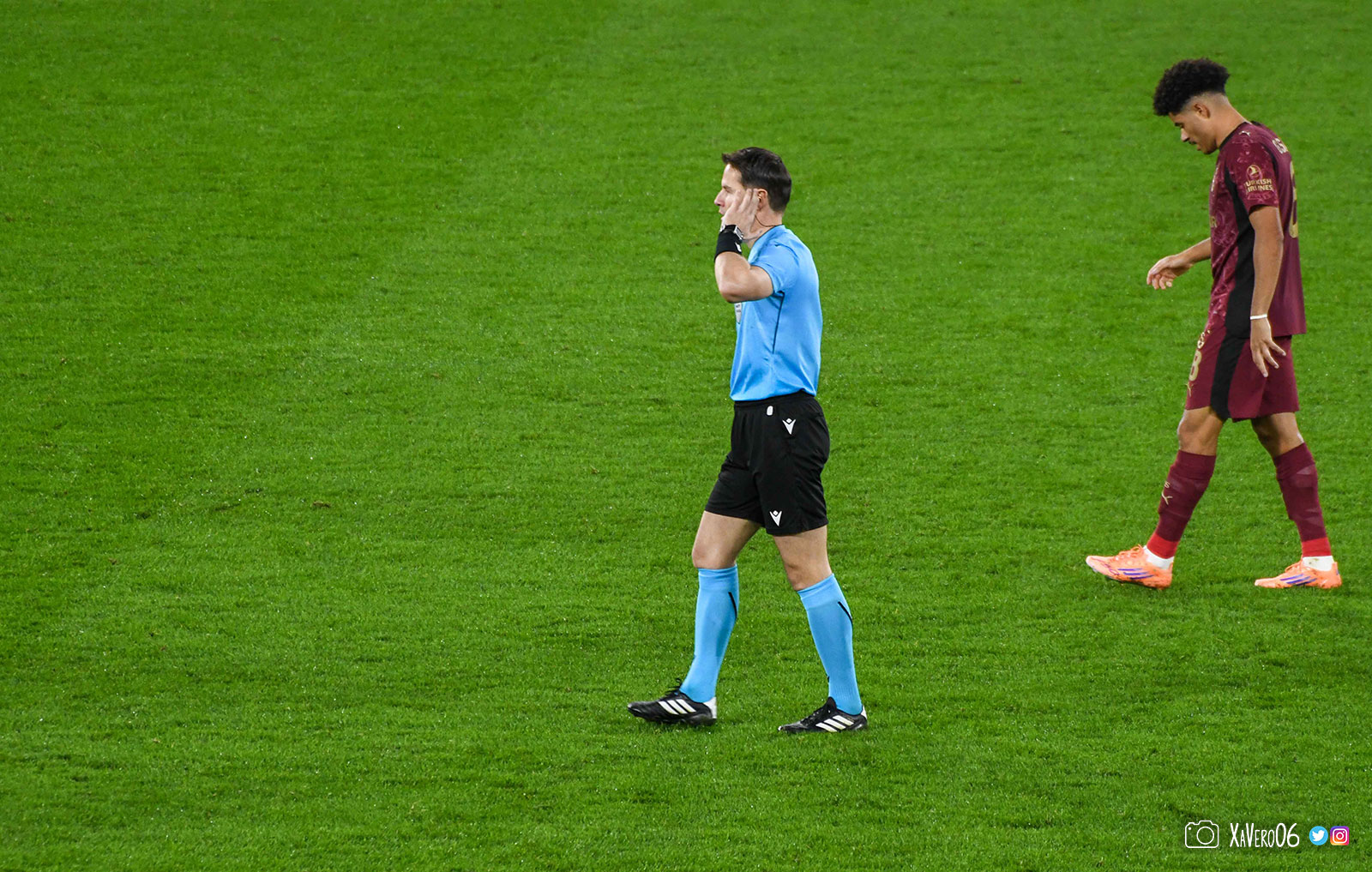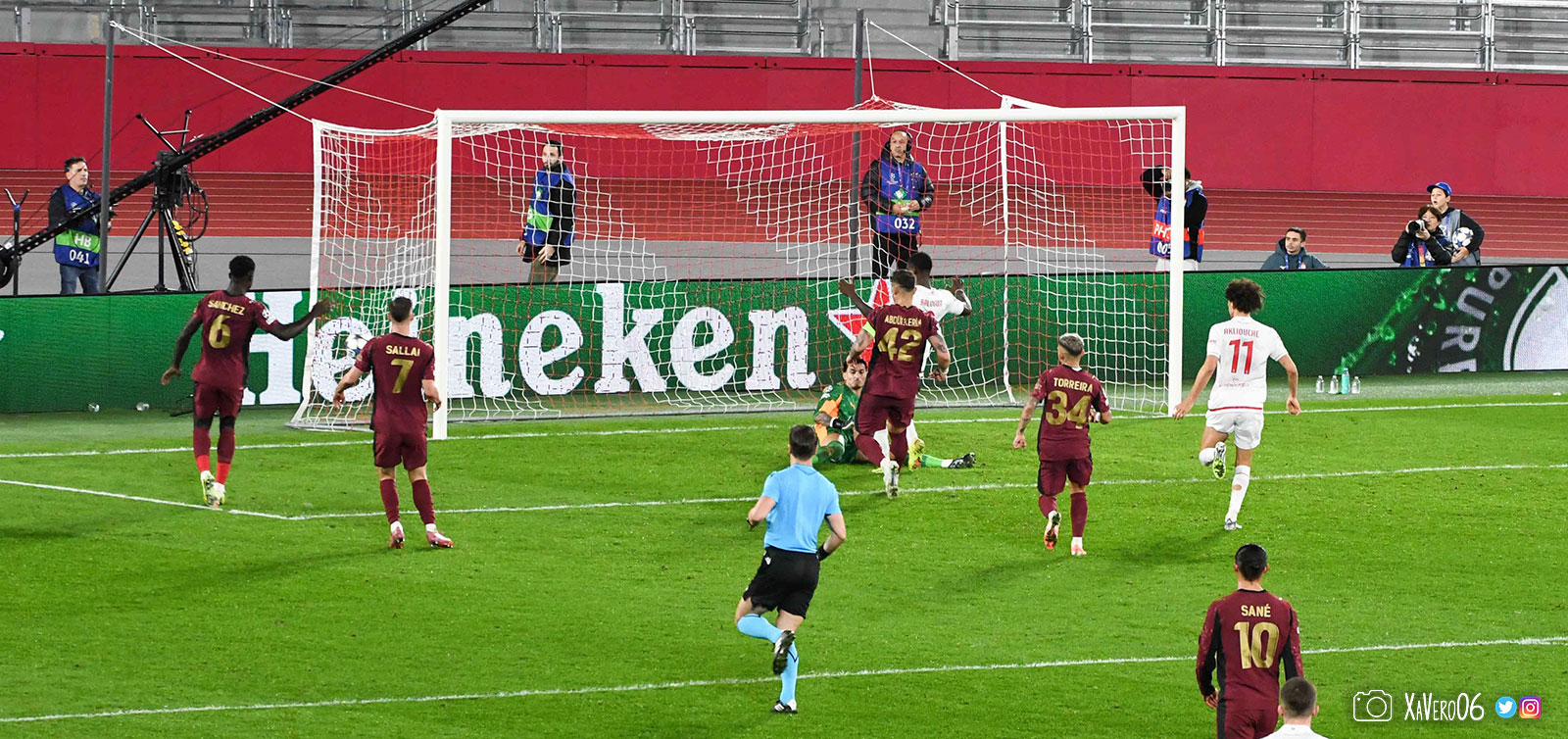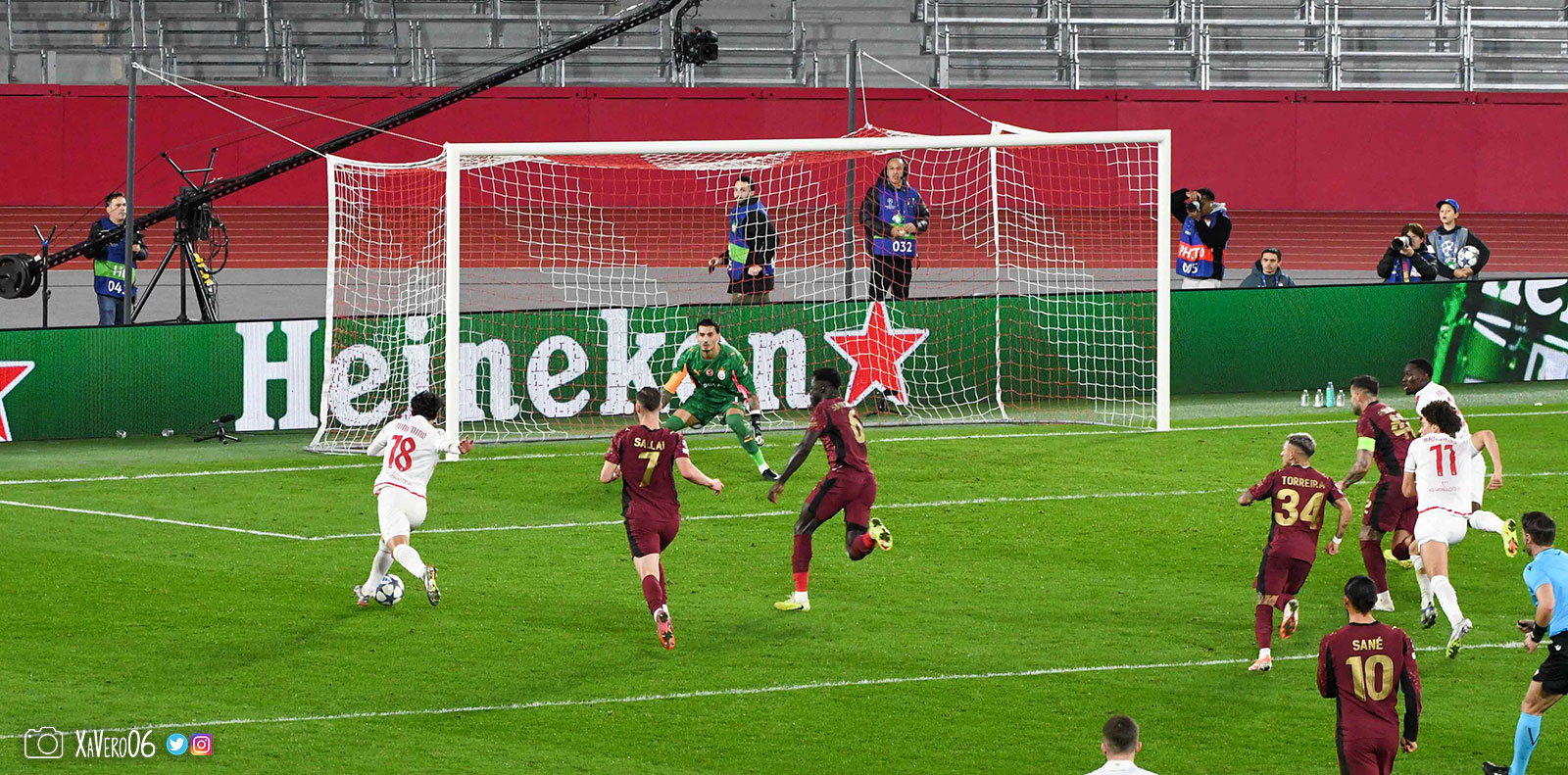 L'arbitre fait signe de jouer, Minamino reste au sol, le jeu continue avec Sané qui vient déborder, rentre dans la surface asémiste et est repris par Caio avant que l'arbitre n'arrête le jeu, appelé par la V.A.R.