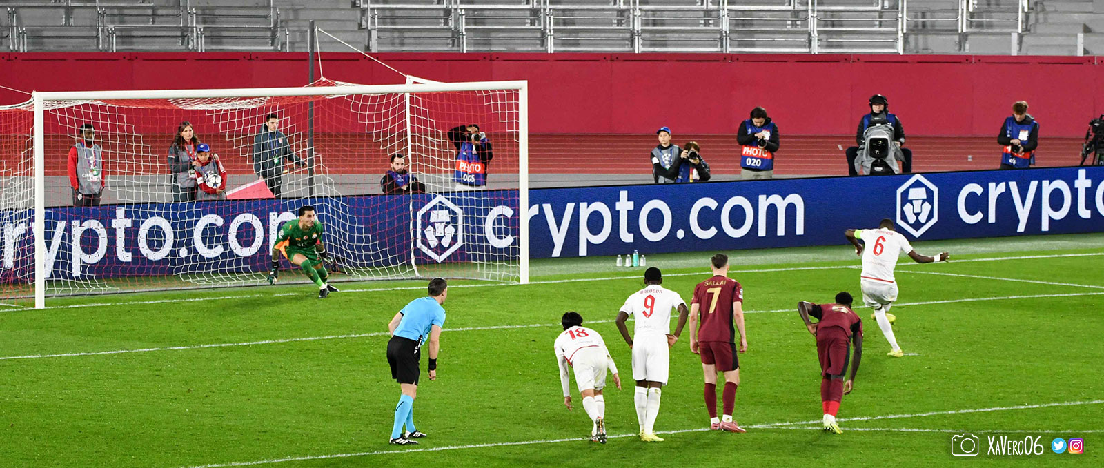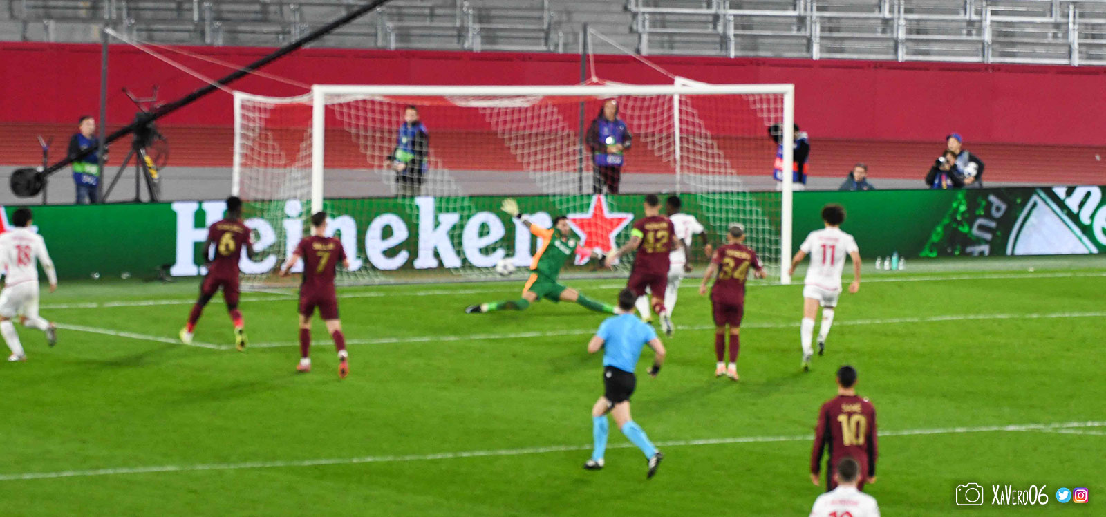 C'est le capitaine Denis Zakaria qui se charge de la sentence. Il rate son tir qui part plein centre et à ras de terre en rebondissant. Çakir est parti sur sa droite mais a laissé ses jambes traînées et repousse vers son côté gauche où Maghnes Akliouche est proche de reprendre de volée, mais le ballon tournoie tellement qu'il est trompé par la trajectoire (50e).