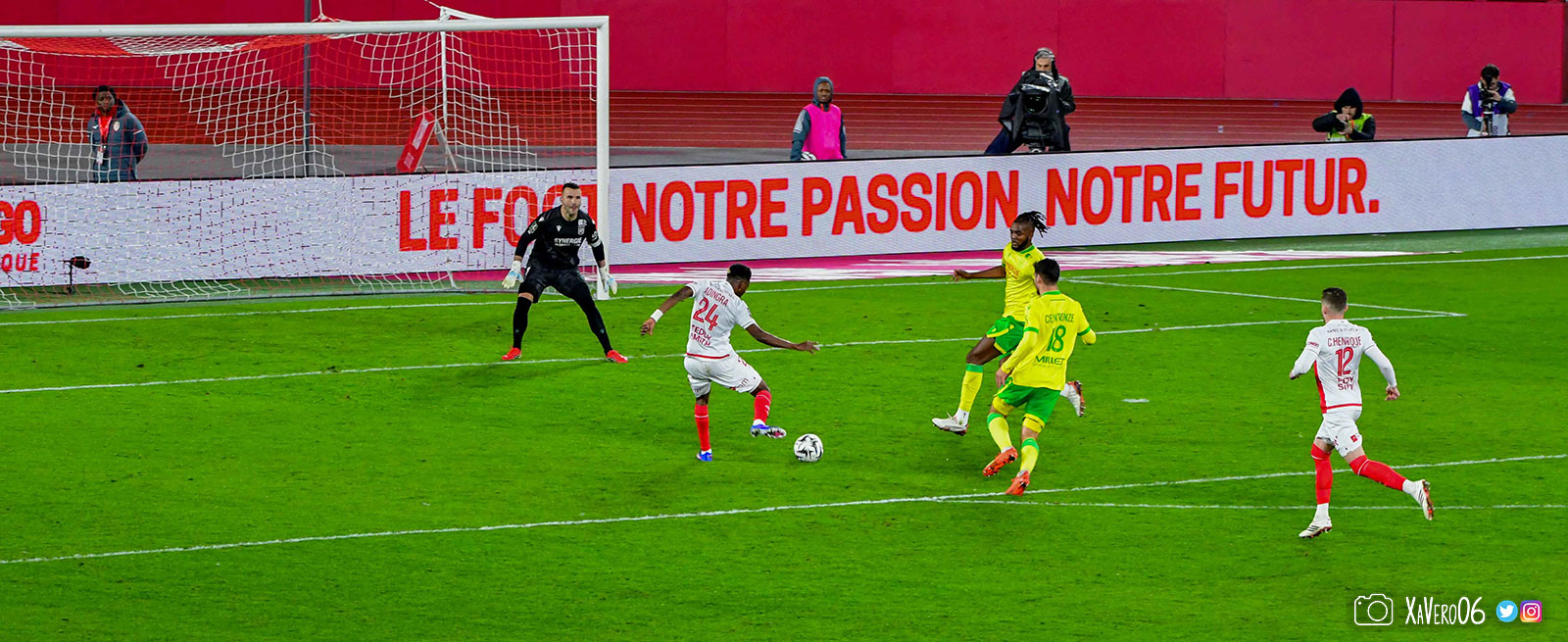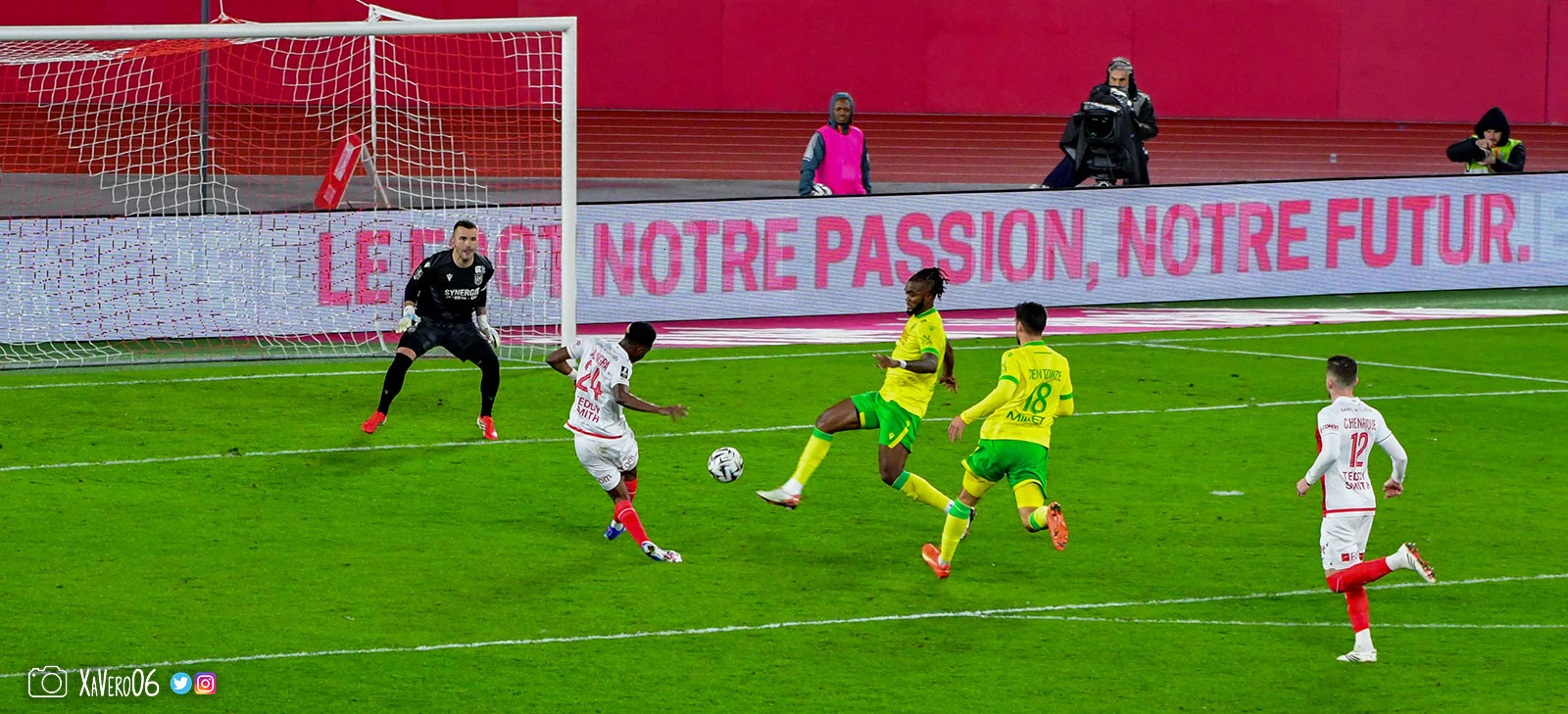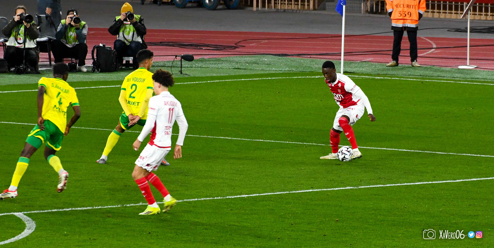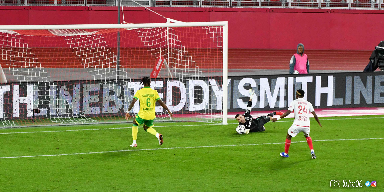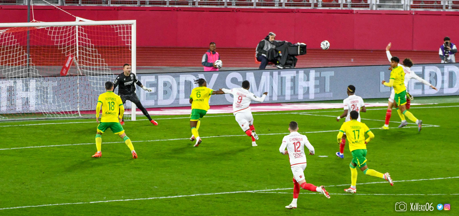 - Nantes a le ballon, fait tourner sans trouver la faille aux 25-30m. Monaco contre avec Teze dans le rond central qui met à gauche sur Simon Adingra qui efface facilement Tabibou, rentre dans la surface et met en retrait au point de pénalty où il n'y a personne car Fati et Biereth avaient fait le même appel aux 6m devant le but (82e).