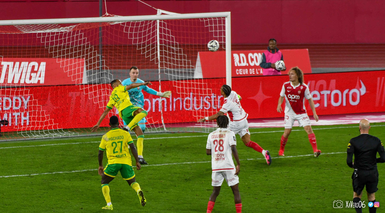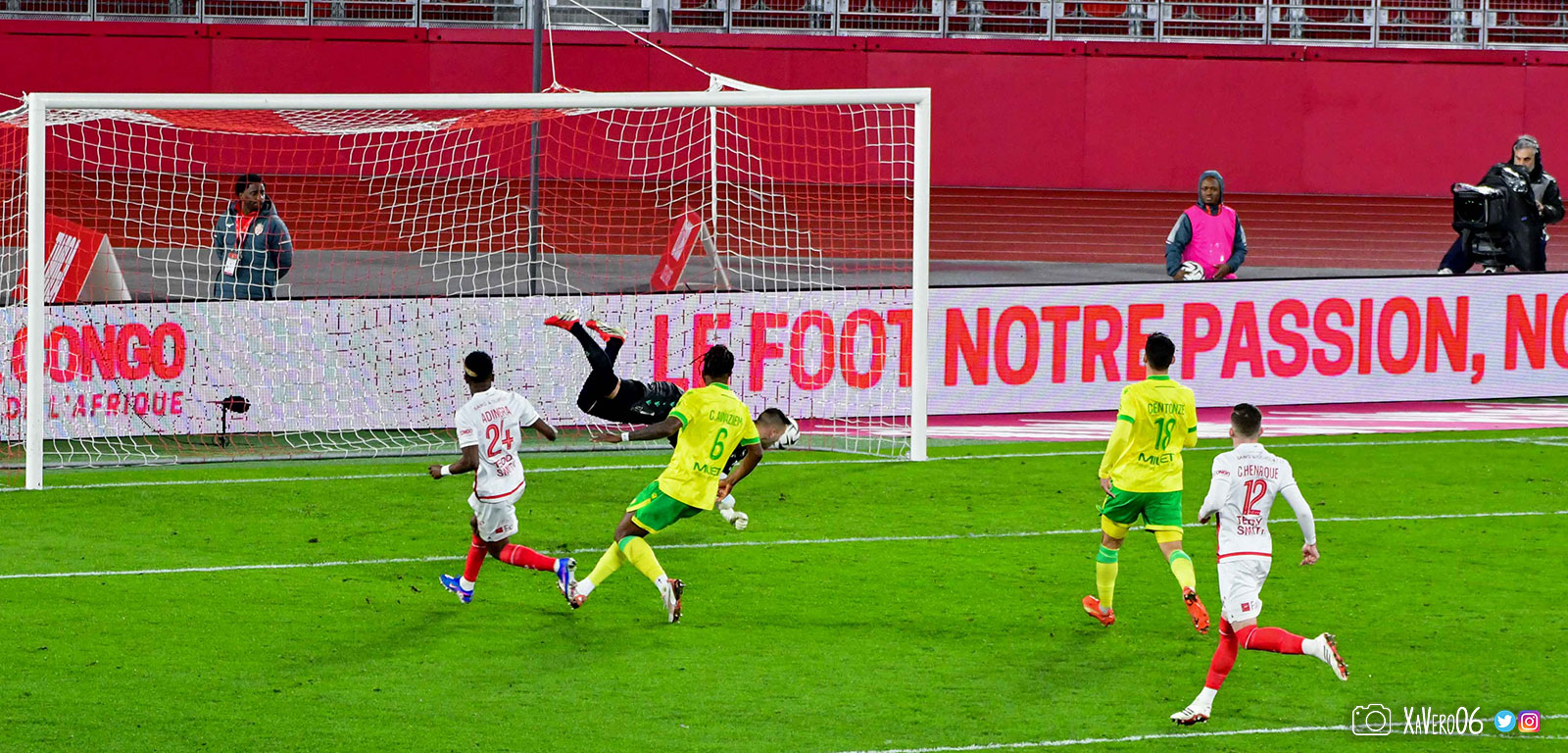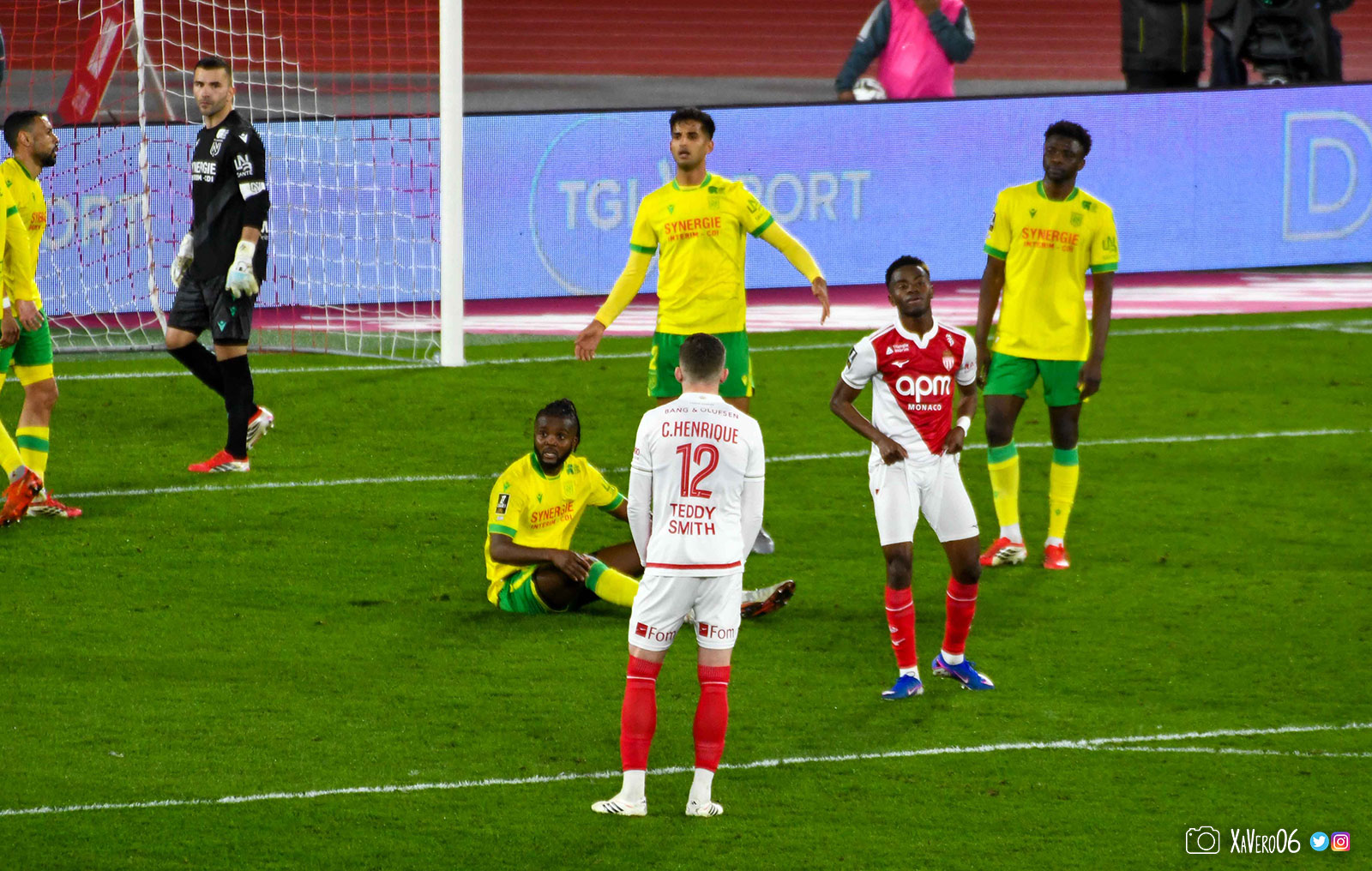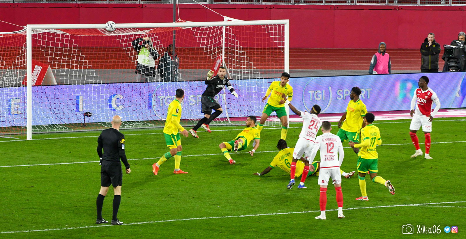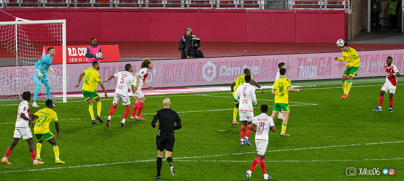 Les esprits monégasques s'échauffent. Déjà avertis deux fois alors que les nantais n'en ont toujours pas reçu, Camara reste au sol après une intervention rugueuse de Cozza sur sa cheville gauche (51e) et l'arbitre laisse jouer, jusqu'à une grosse faute de Vanderson qui s'en sort bien.