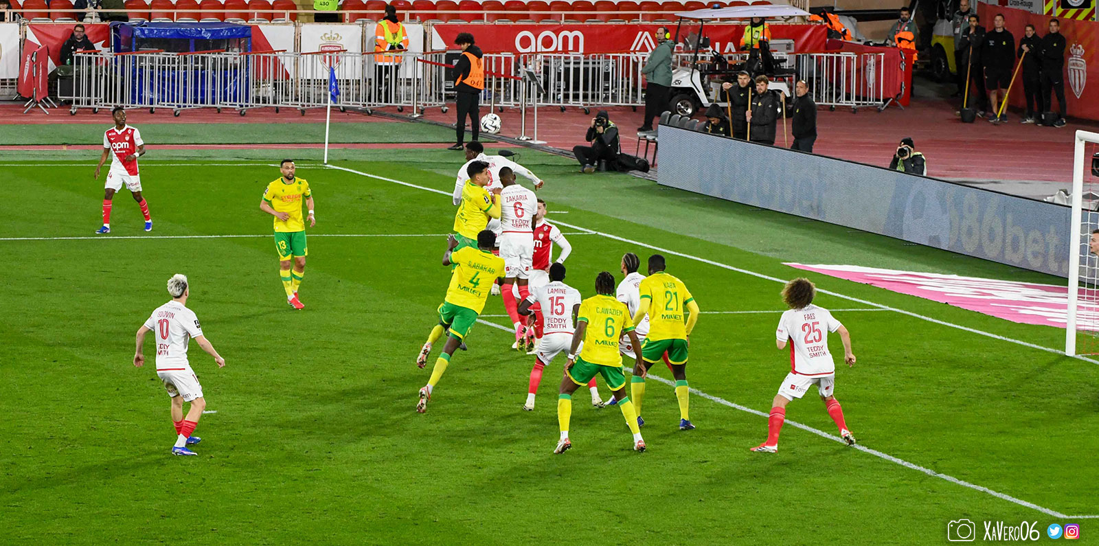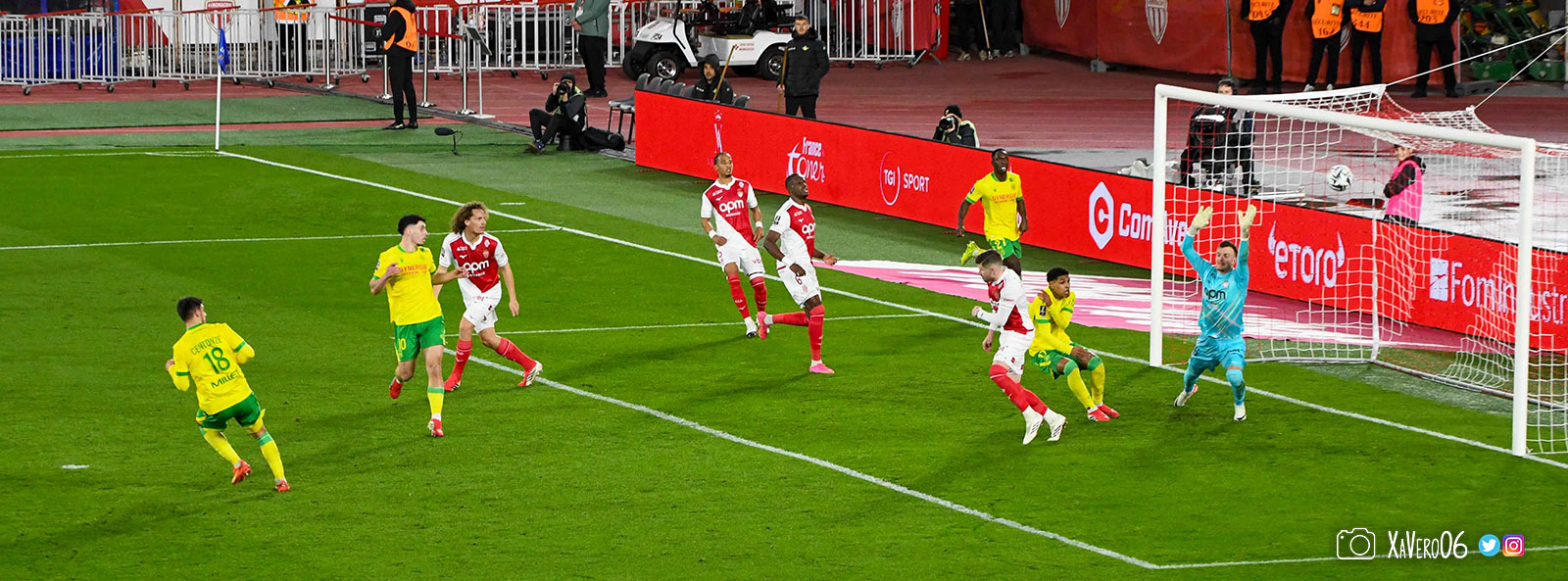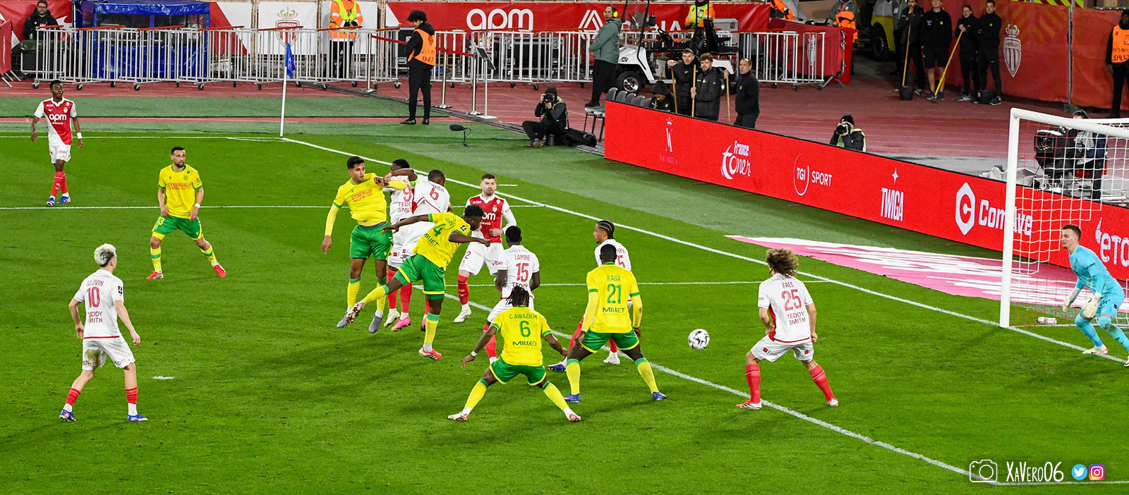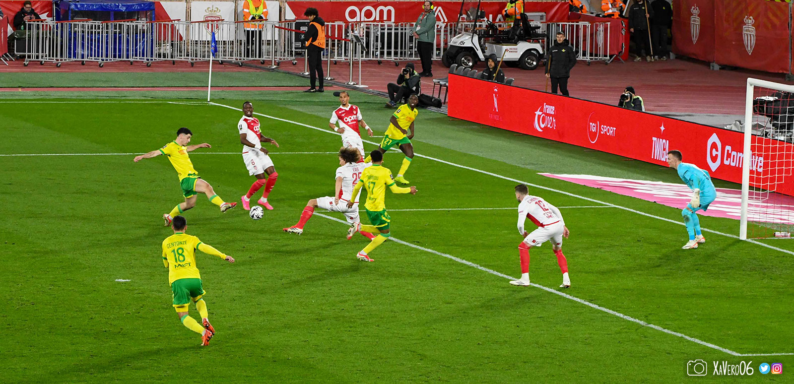 - Sur une remise en jeu, Akliouche lance Golovin dans le dos de la défense nantaise côté droit, rentre dans la surface et centre pour le second poteau et Simon Adingra, devancé par Centonze qui met en corner (16e).