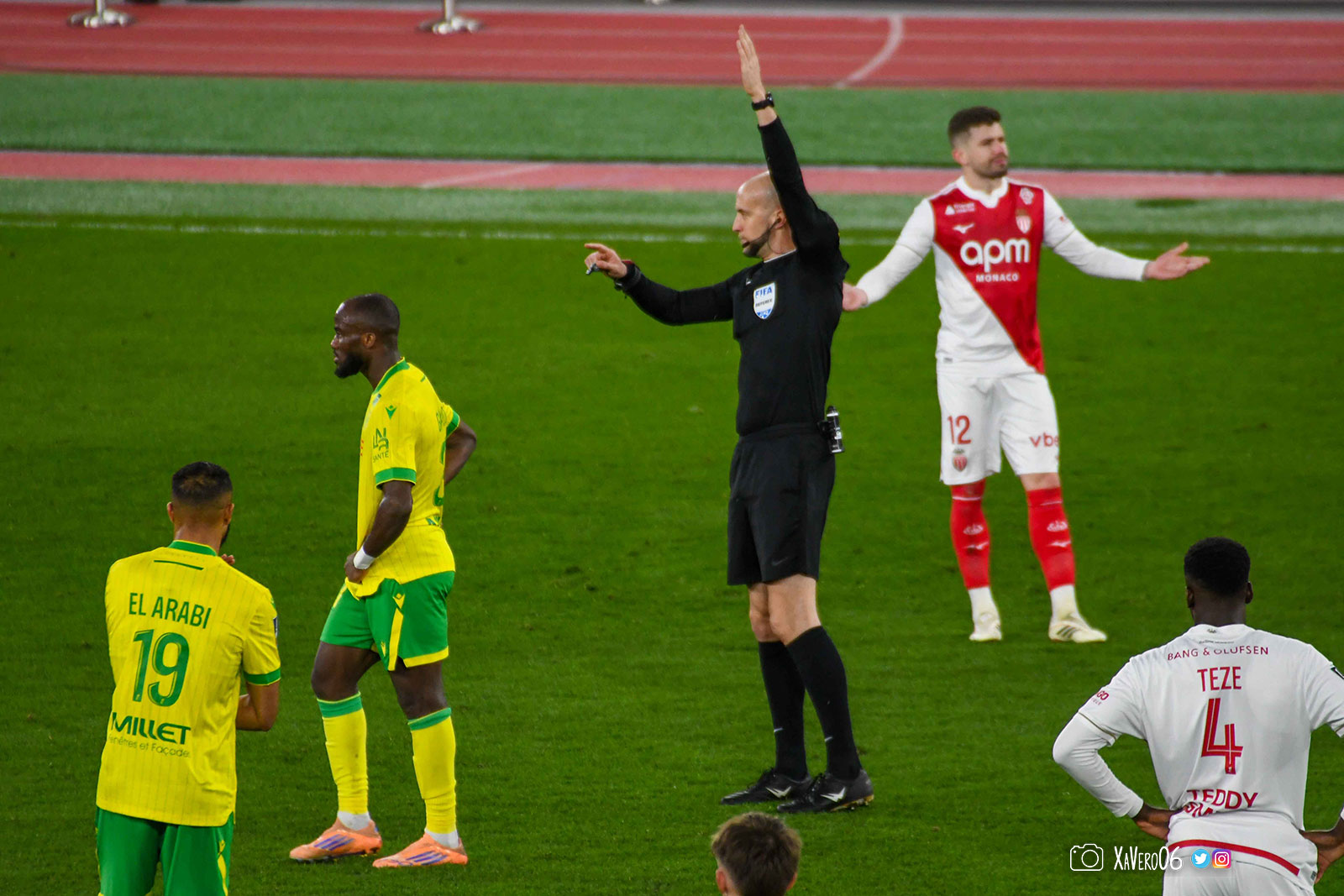 La frustration monégasque avec l'arbitrage continue, avec un nouveau carton pour Teze pour sa première faute (82e), Mr Wattellier oubliant une simulation dans la surface de Ganago, entre autres.
