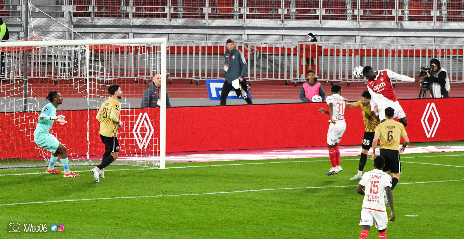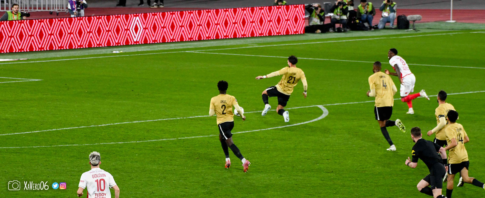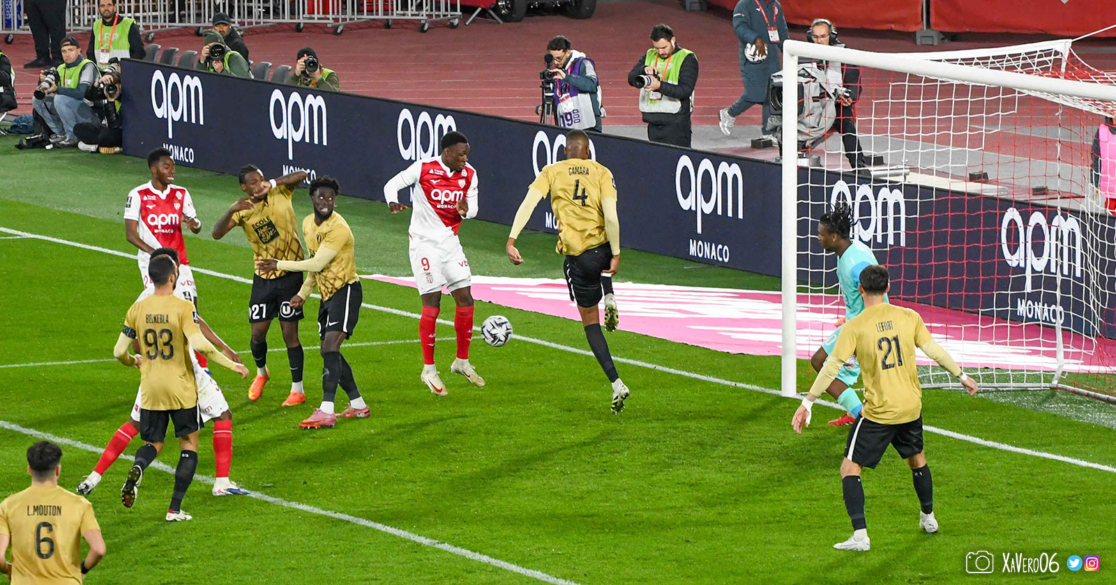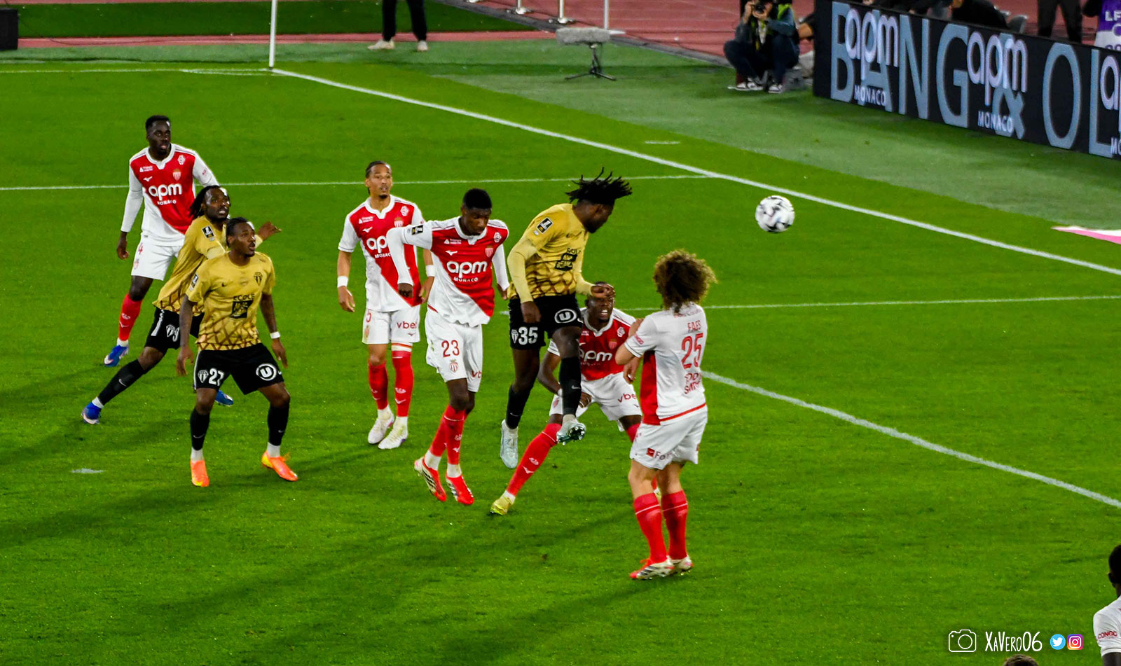 Corner monégasque, raté par Camara. Sur sa deuxième chance, Pona boxe le ballon et Raolisoa récupère et accélère côté gauche, bloqué par Golovin le long de la touche, mais il revient sur son pied droit et centre dans l'axe pour Belkhdim, oublié au marquage par Adingra qui lui court 3m derrière.