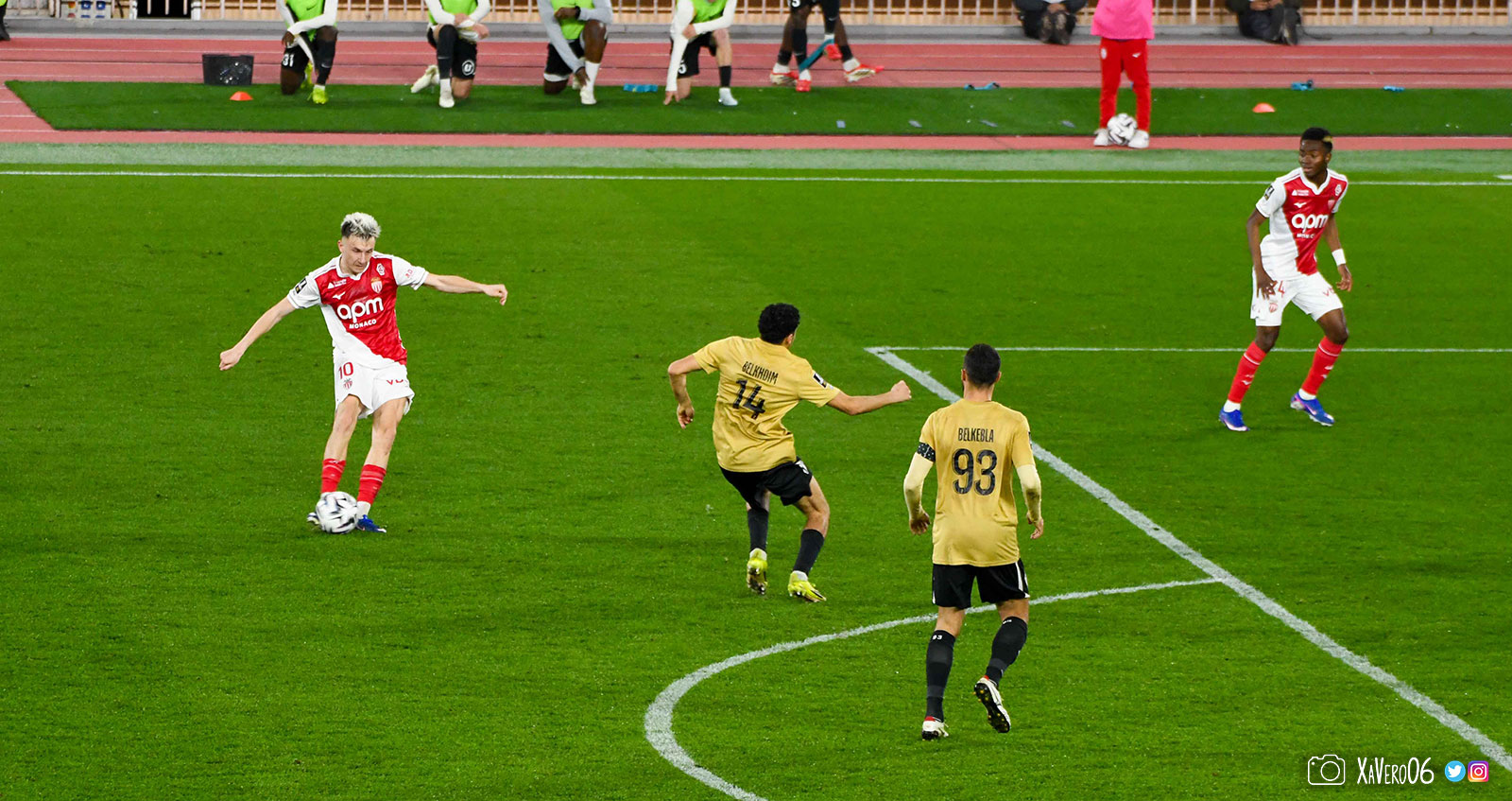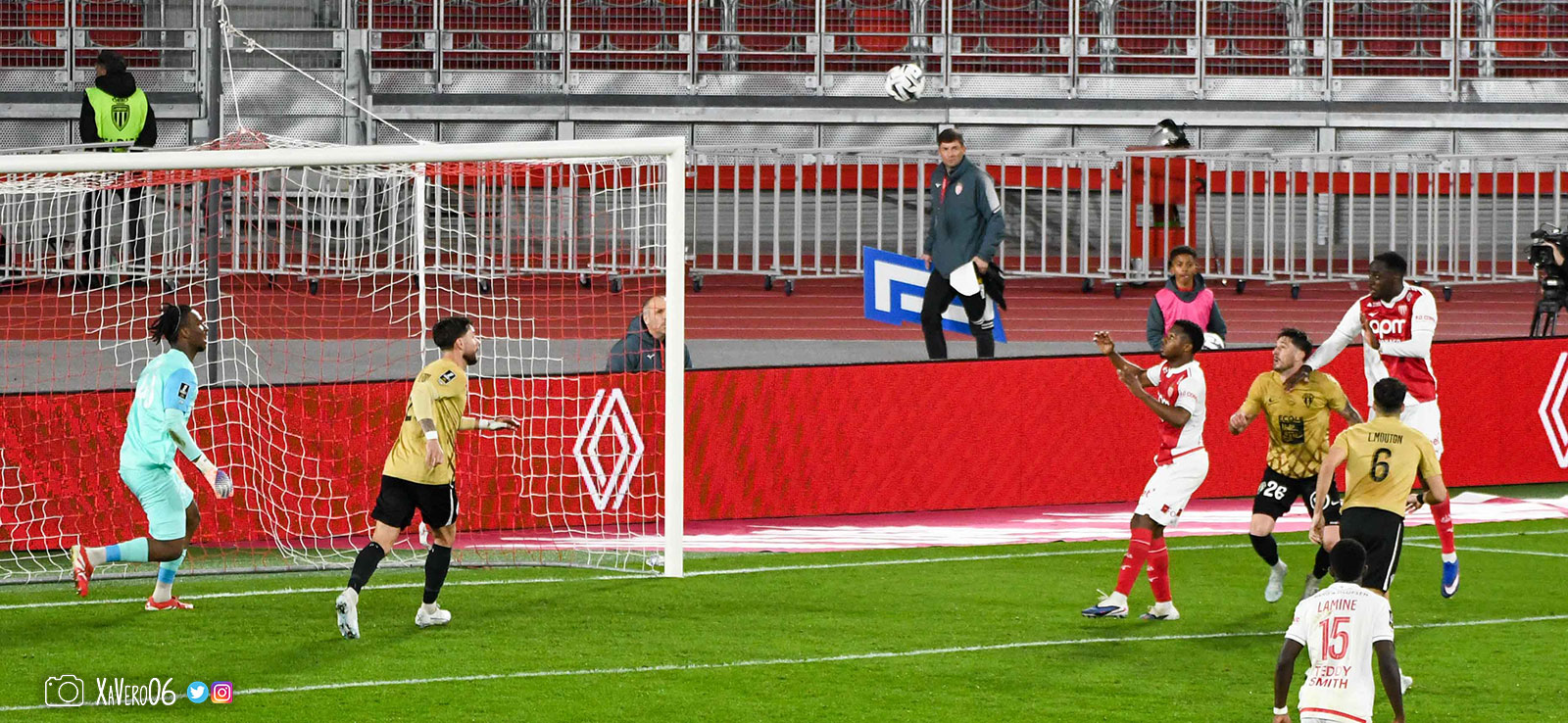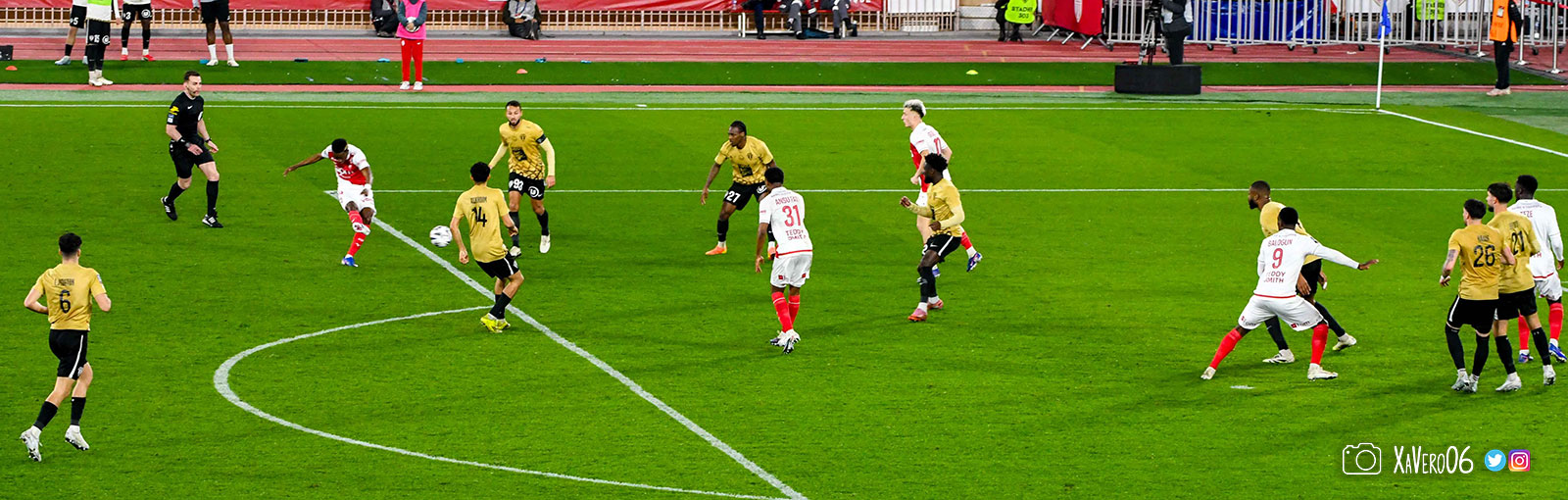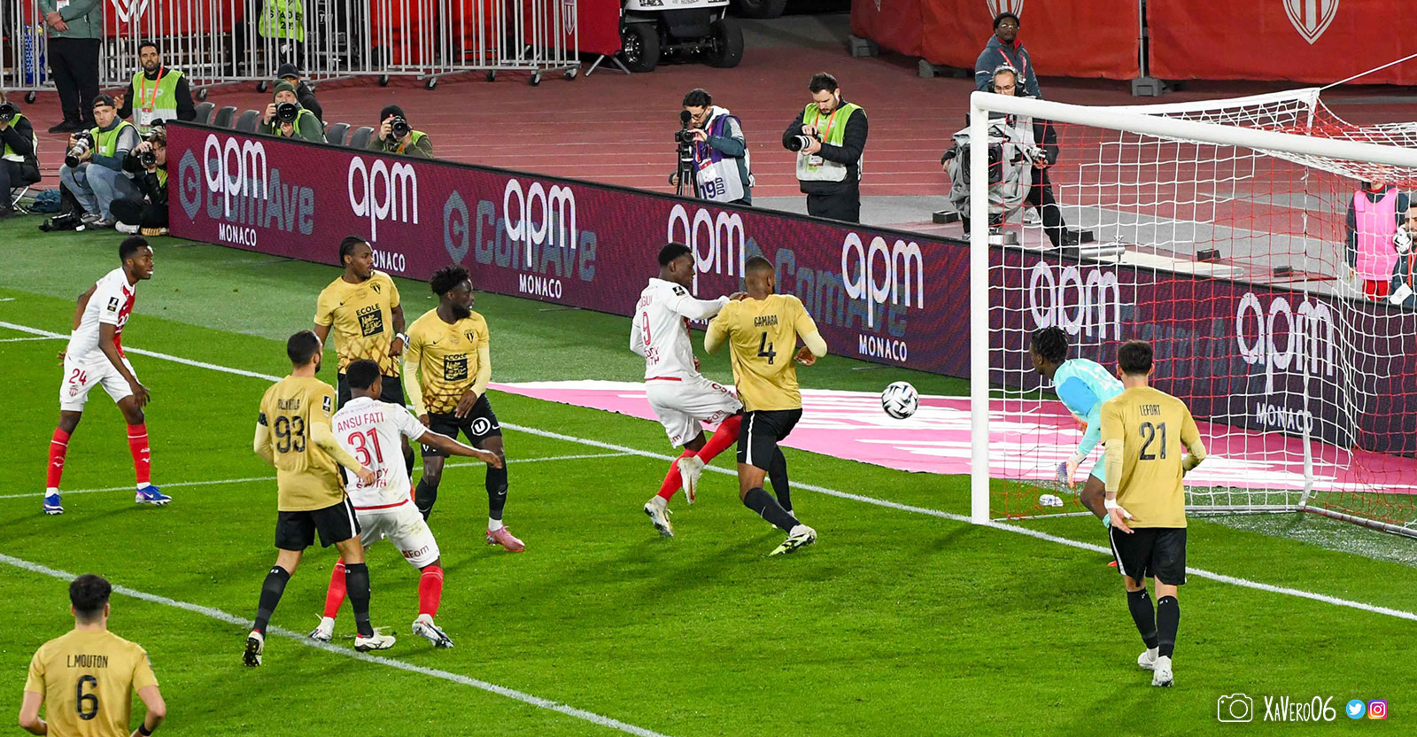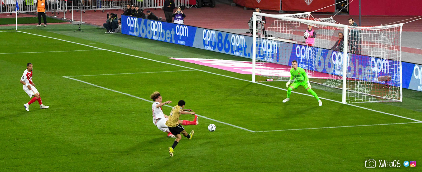 Corner monégasque, raté par Camara. Sur sa deuxième chance, Pona boxe le ballon et Raolisoa récupère et accélère côté gauche, bloqué par Golovin le long de la touche, mais il revient sur son pied droit et centre dans l'axe pour Belkhdim, oublié au marquage par Adingra qui lui court 3m derrière.