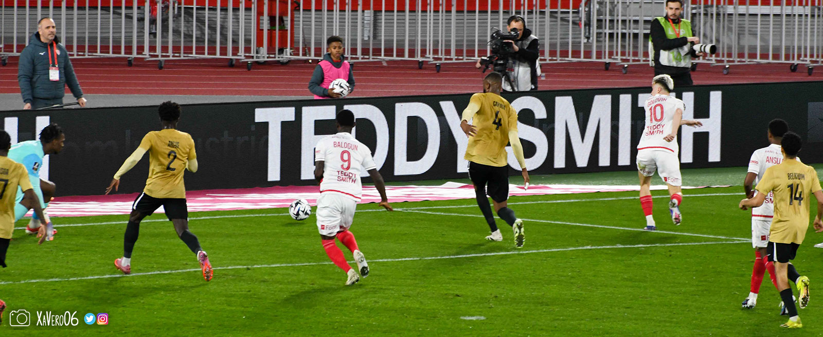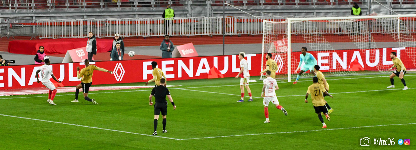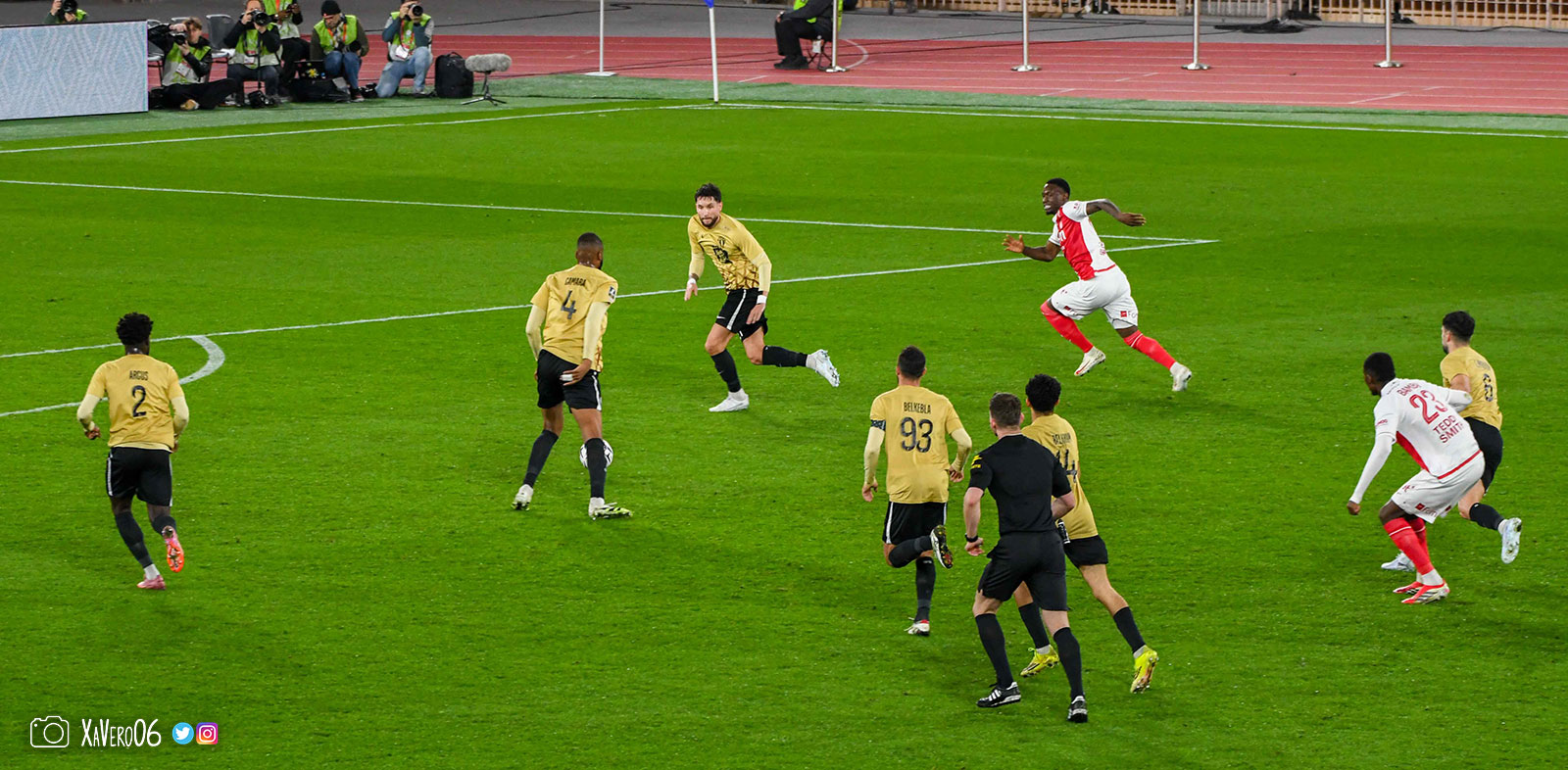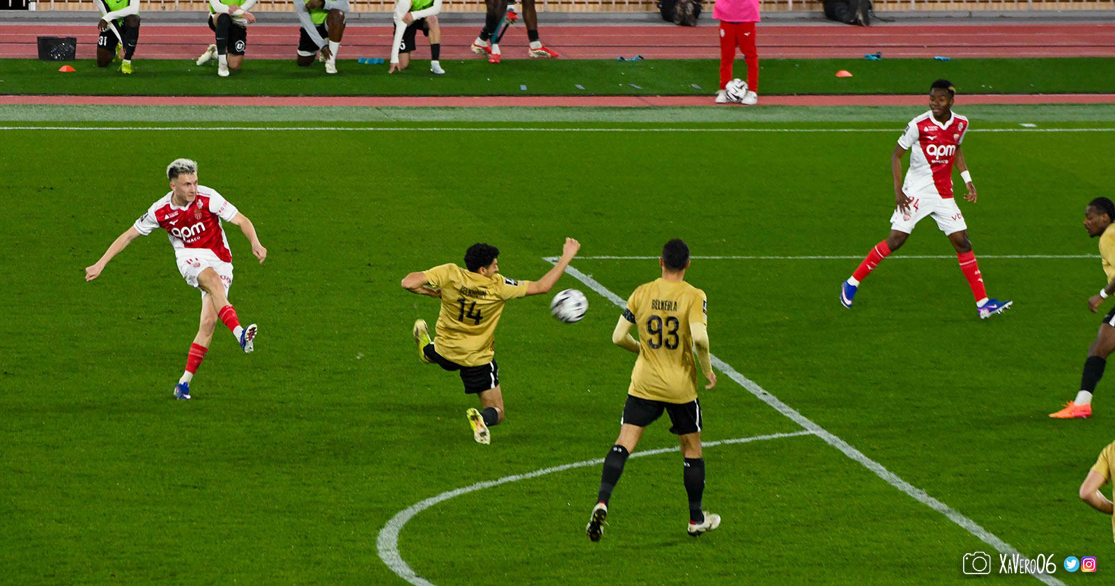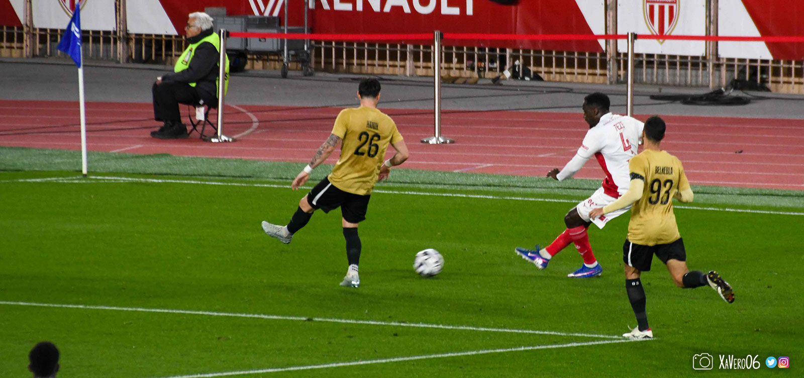 Corner monégasque, raté par Camara. Sur sa deuxième chance, Pona boxe le ballon et Raolisoa récupère et accélère côté gauche, bloqué par Golovin le long de la touche, mais il revient sur son pied droit et centre dans l'axe pour Belkhdim, oublié au marquage par Adingra qui lui court 3m derrière.