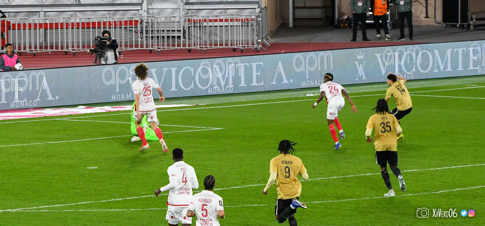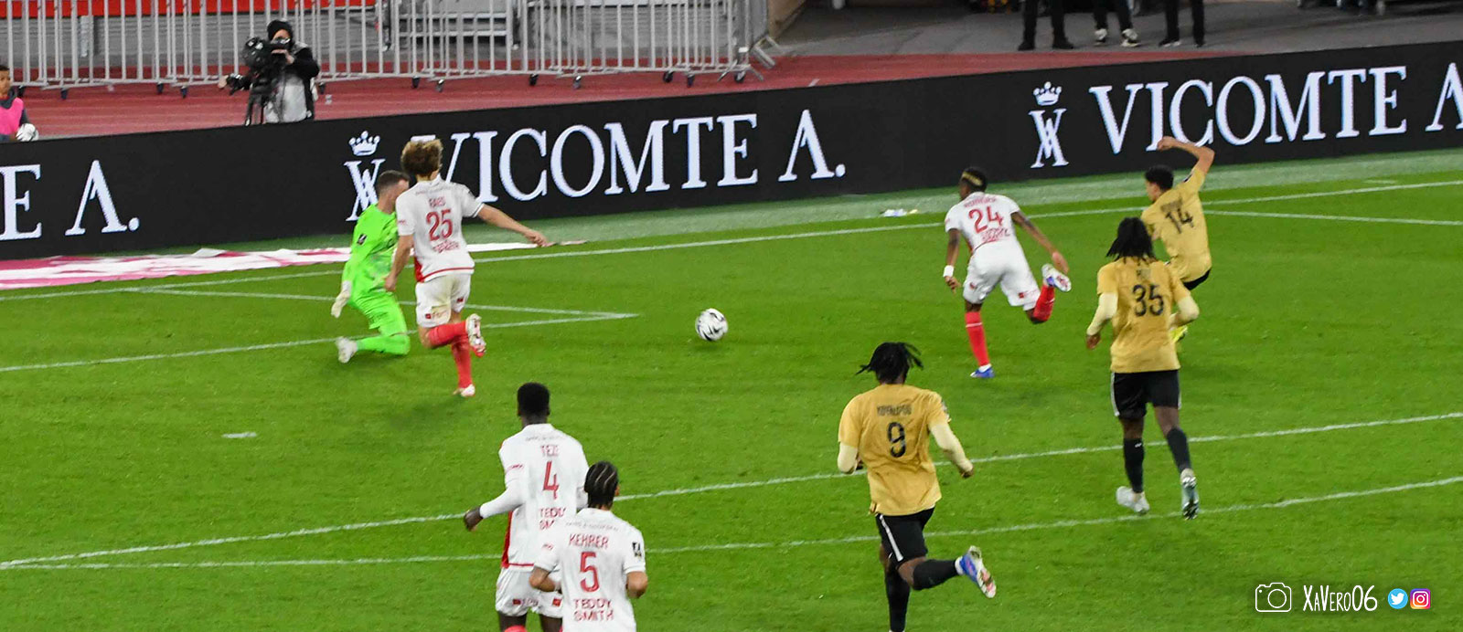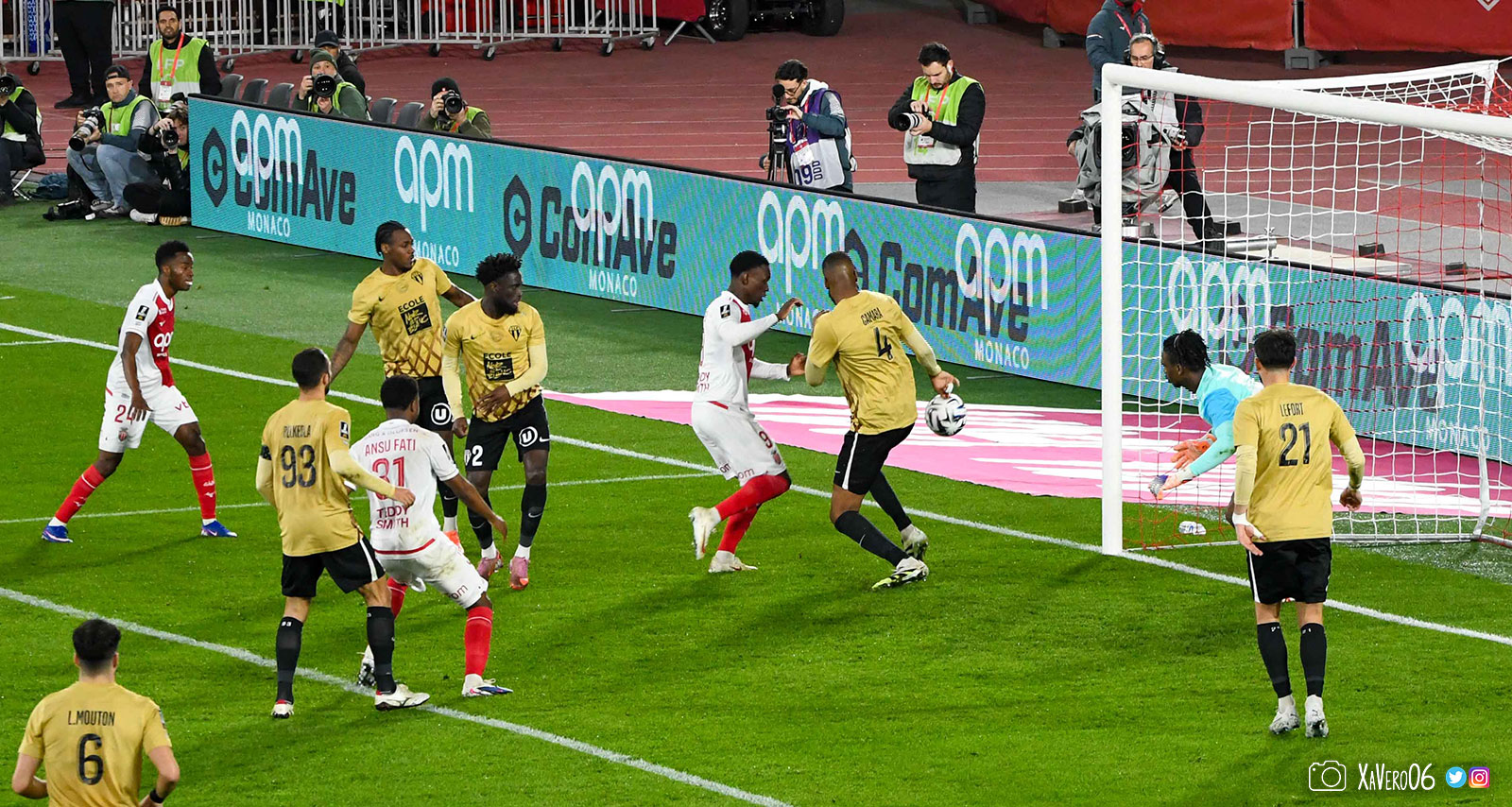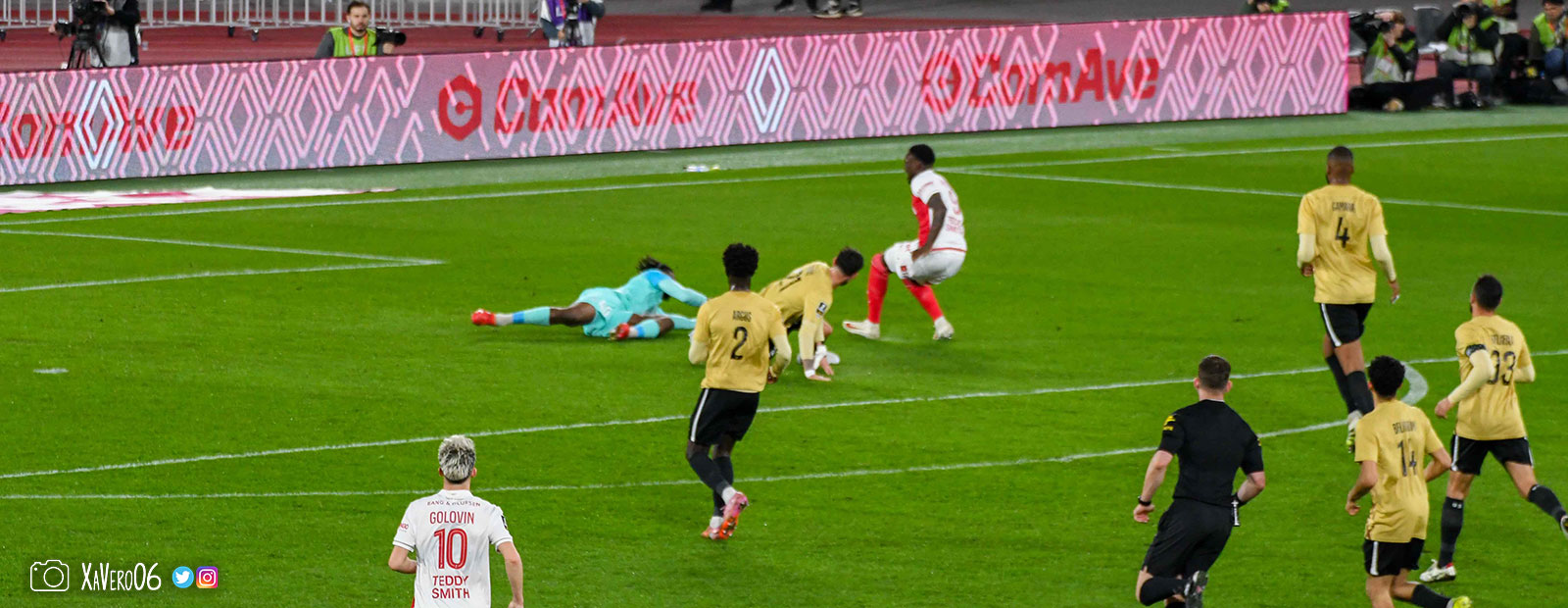 Au contraire, Monaco ouvre le score sur une tête de Folarin Balogun repoussée par Camara dans les jambes de l'américain qui prend la direction du but où était Pona, mais le ballon est encore dévié par le bout des doigts de Camara pour tromper son gardien (1-0, 57e), et accroît son avantage sur une frappe enroulée de Simon Adingra (2-0, 62e).