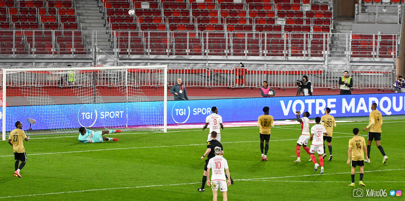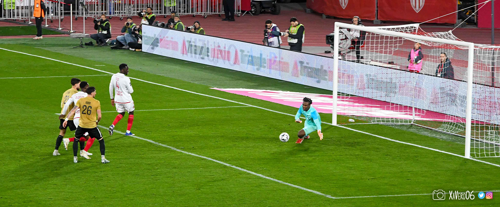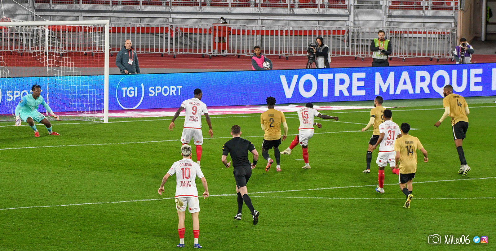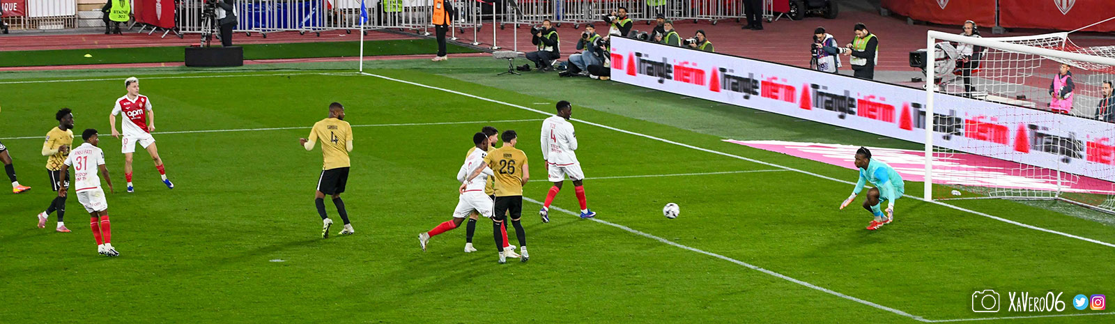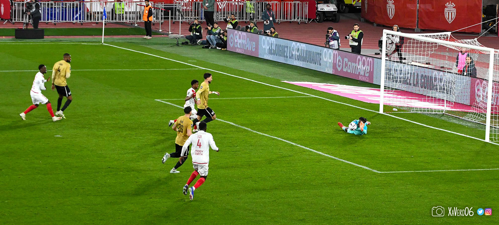Au contraire, Monaco ouvre le score sur une tête de Folarin Balogun repoussée par Camara dans les jambes de l'américain qui prend la direction du but où était Pona, mais le ballon est encore dévié par le bout des doigts de Camara pour tromper son gardien (1-0, 57e), et accroît son avantage sur une frappe enroulée de Simon Adingra (2-0, 62e).