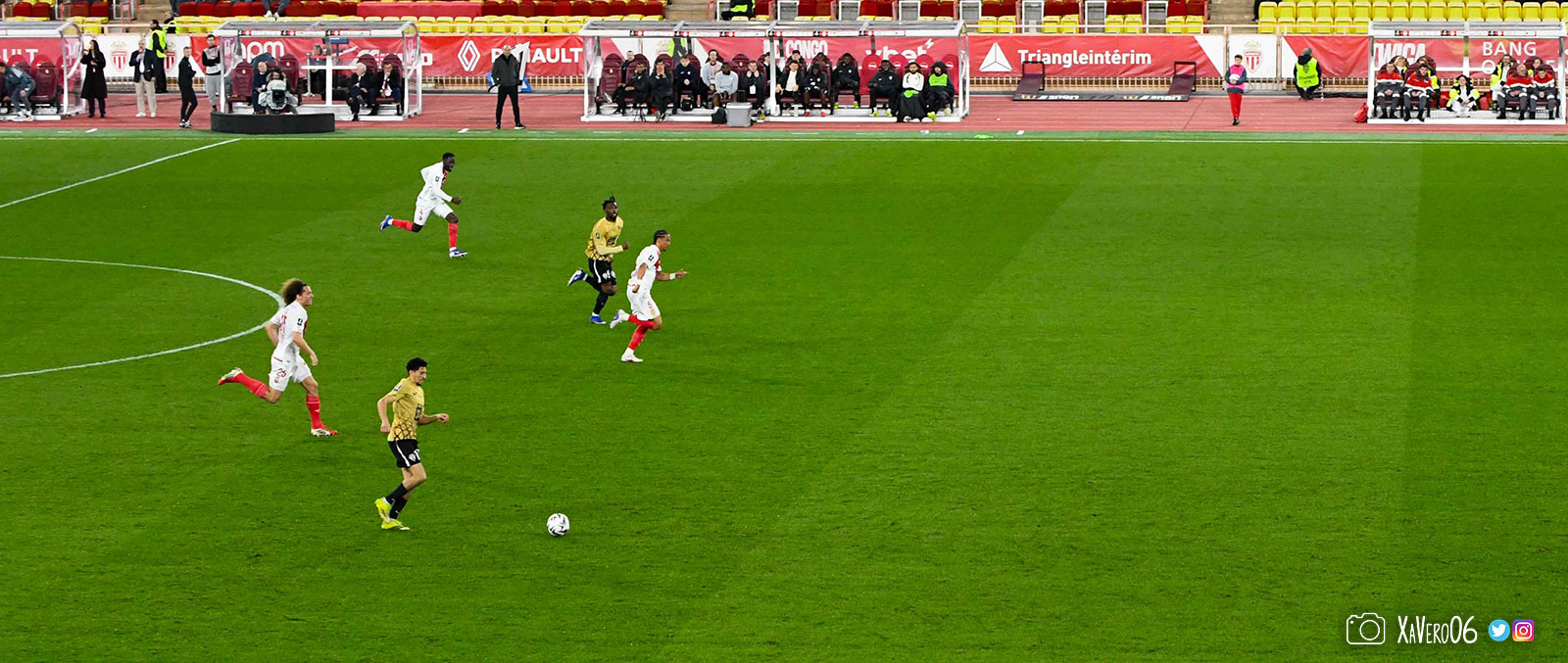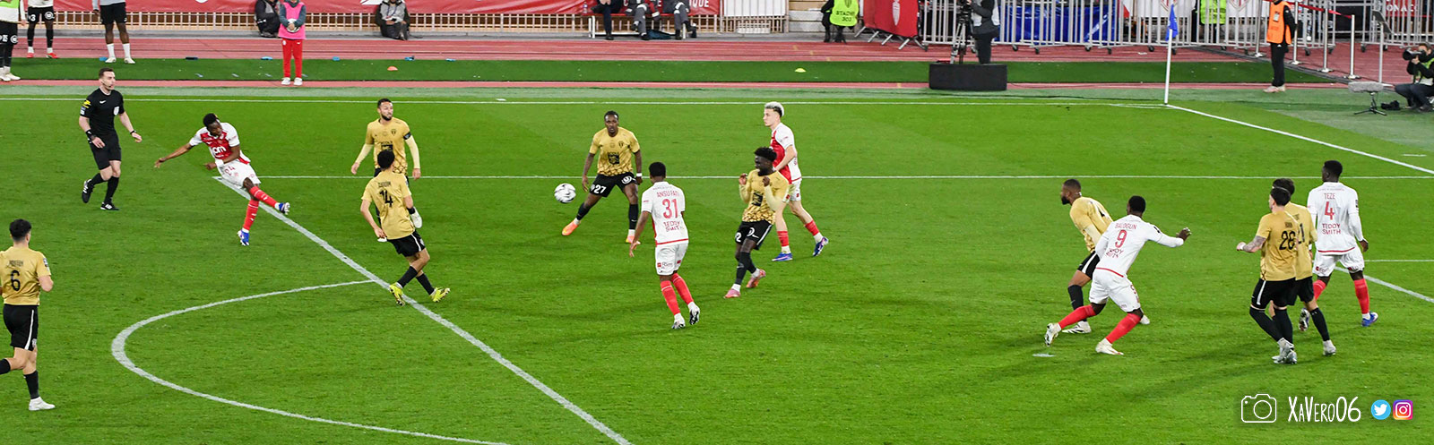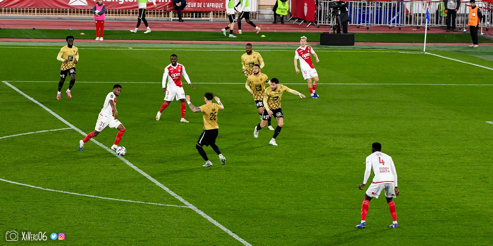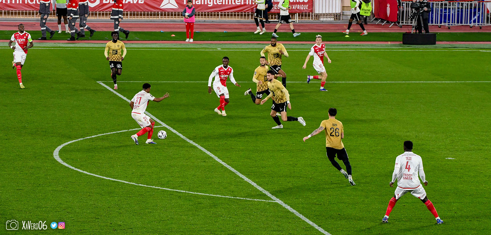 Et la rencontre débute avec le ballon dans les pieds monégasques qui font face à un bloc angevin regroupé dans son camp, qui attend le contre.