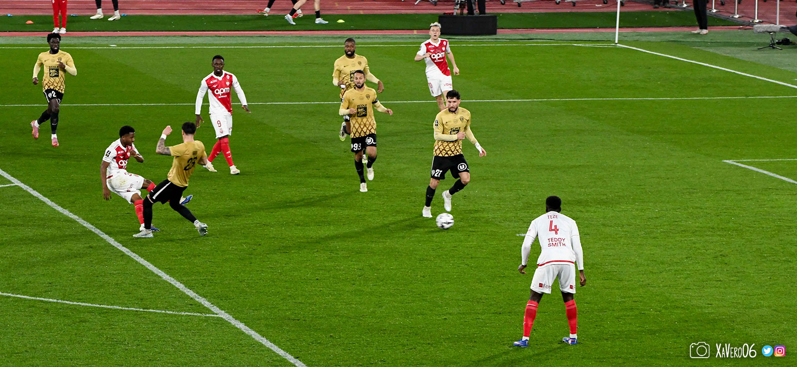 Monaco a eu chaud, et profite qu'Angers joue à 10 avec un joueur qui reste au sol (les scoïstes gagnent du temps à chaque instant depuis l'entame, leur gardien sera averti à la 45e) pour attaquer, l'arbitre n'arrêtant pas le match.