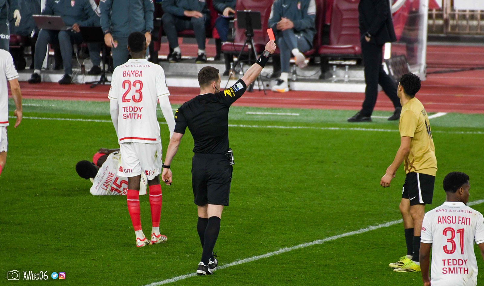 L'AS Monaco est encore passée pas loin de la correctionnelle, comme le SCO avec le carton rouge sorti pour Belkhdim, après une semelle sur Camara (53e).