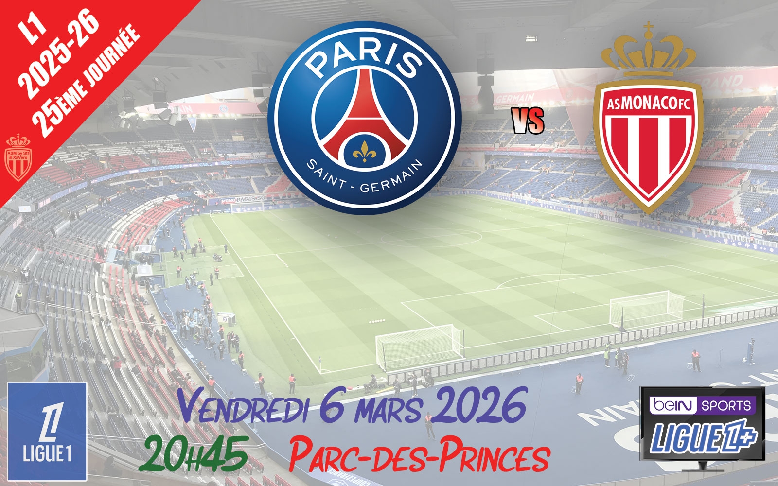 Pour la 25ème journée de Ligue 1, l'AS Monaco (7ème) se rend chez le Paris Saint-Germain FC (1er).