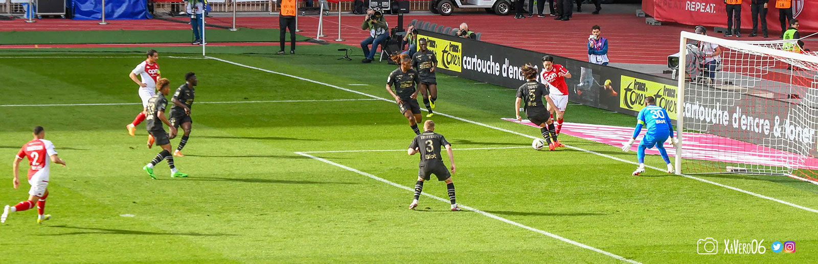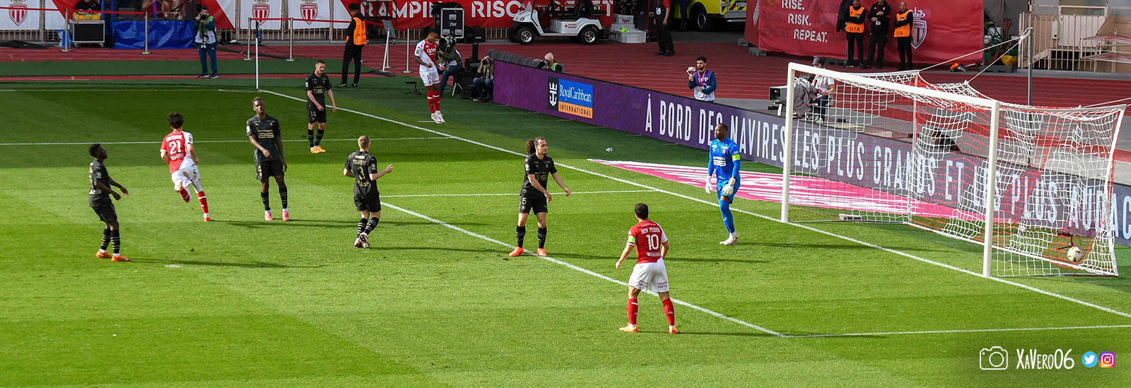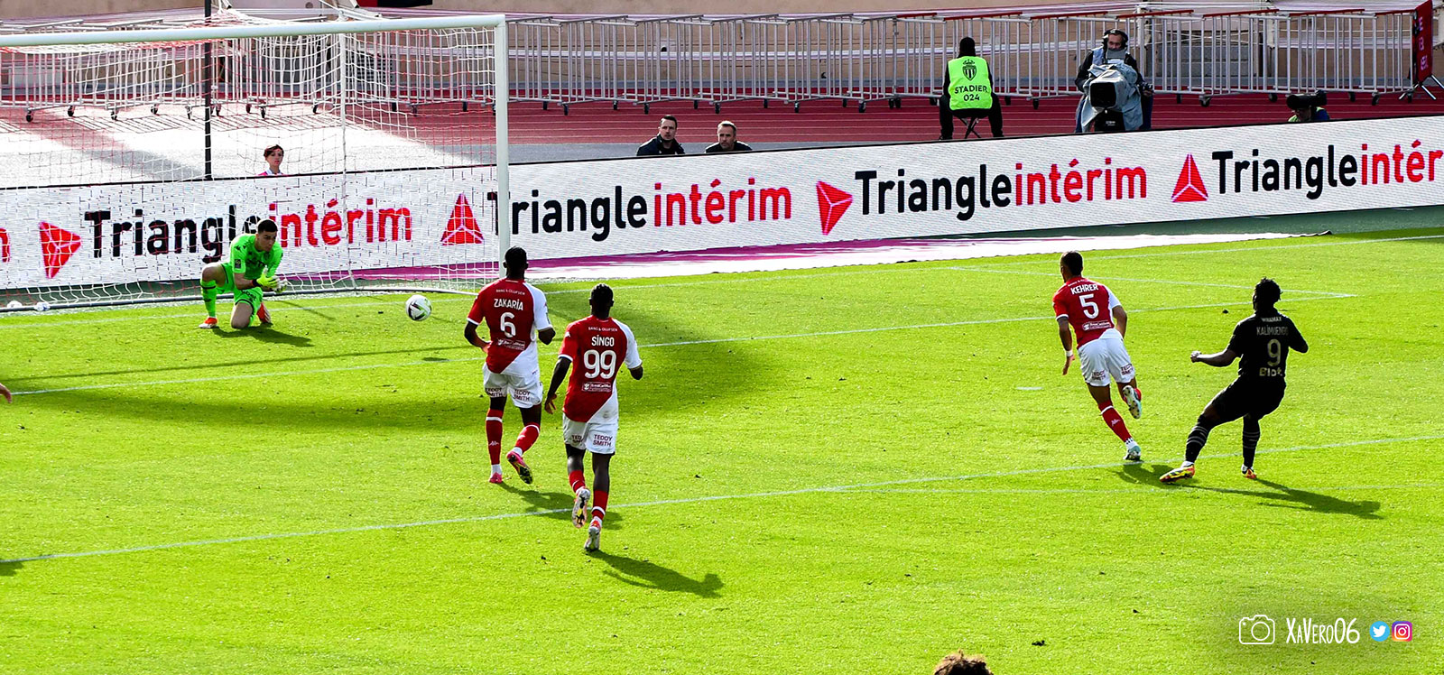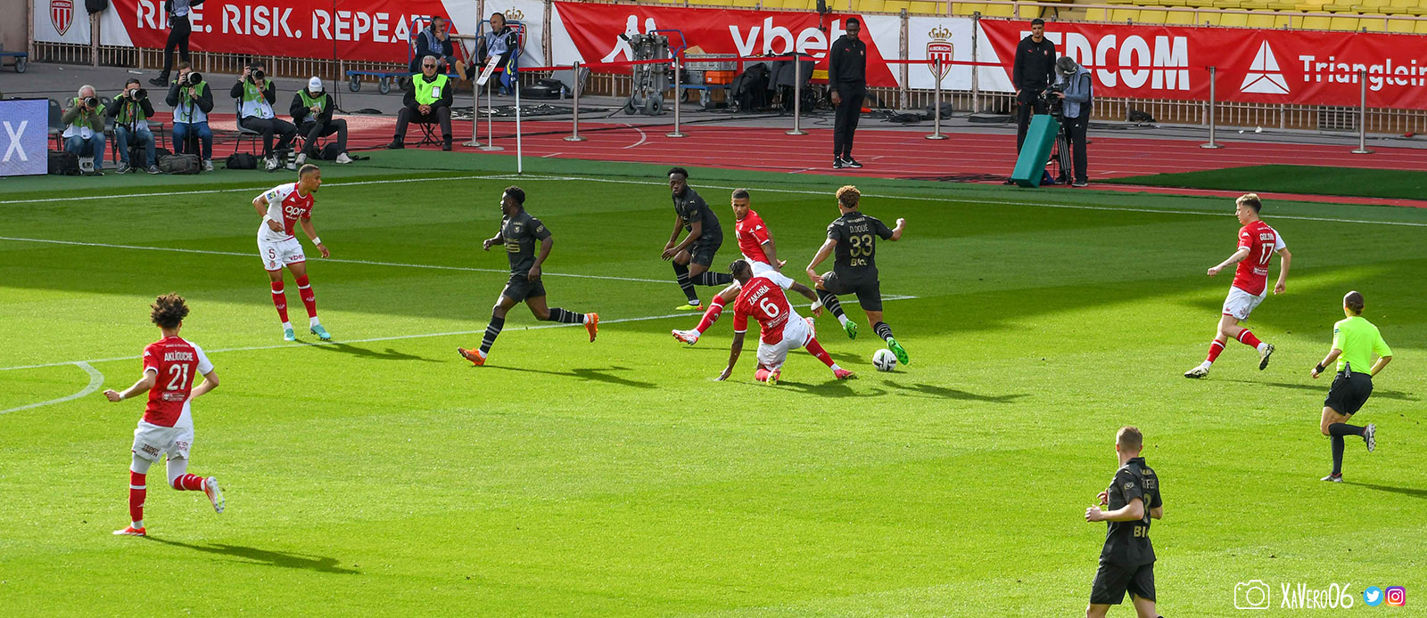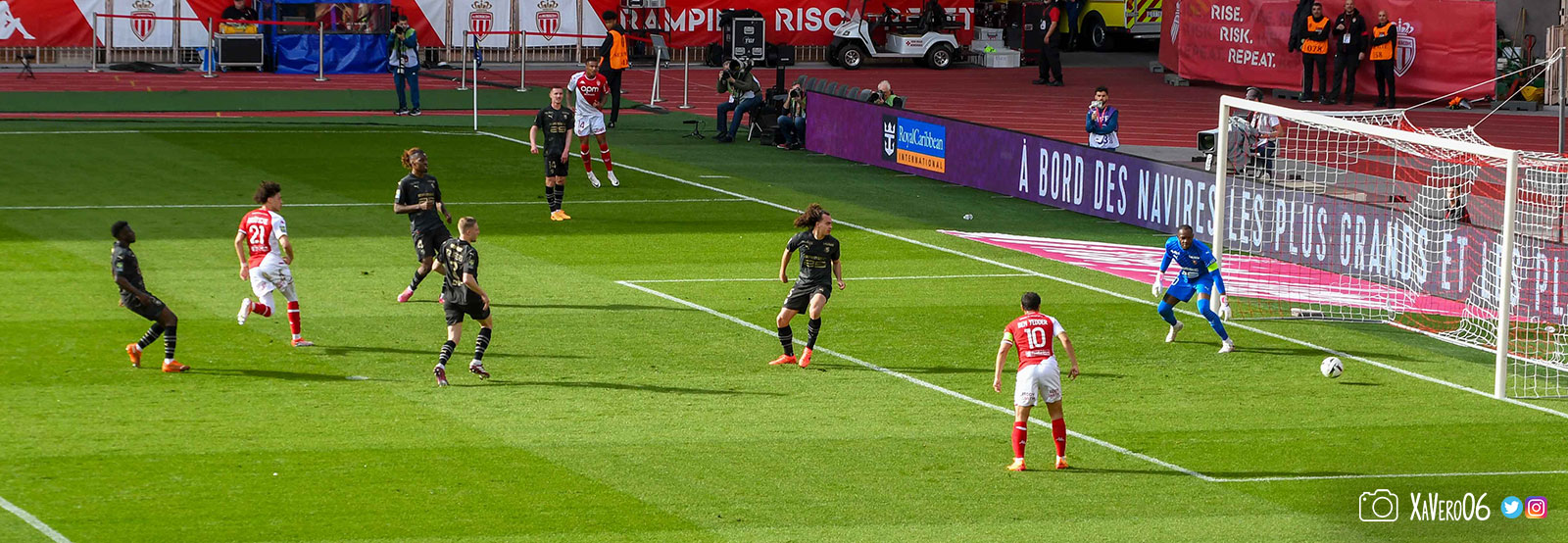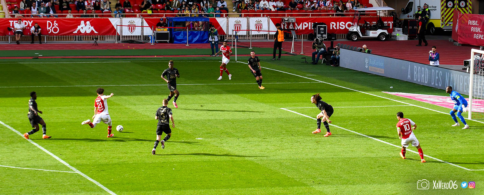 Attaque de l'ASM, avec un centre de Vanderson côté droit. Seidu est trop court au second poteau et prolonge du crâne derrière lui, sur Akliouche à l'angle des 6m, qui contrôle, feinte la frappe en centrant en retrait pour Minamino devancé par le tacle de Matusiwa. Corner (45e+1).