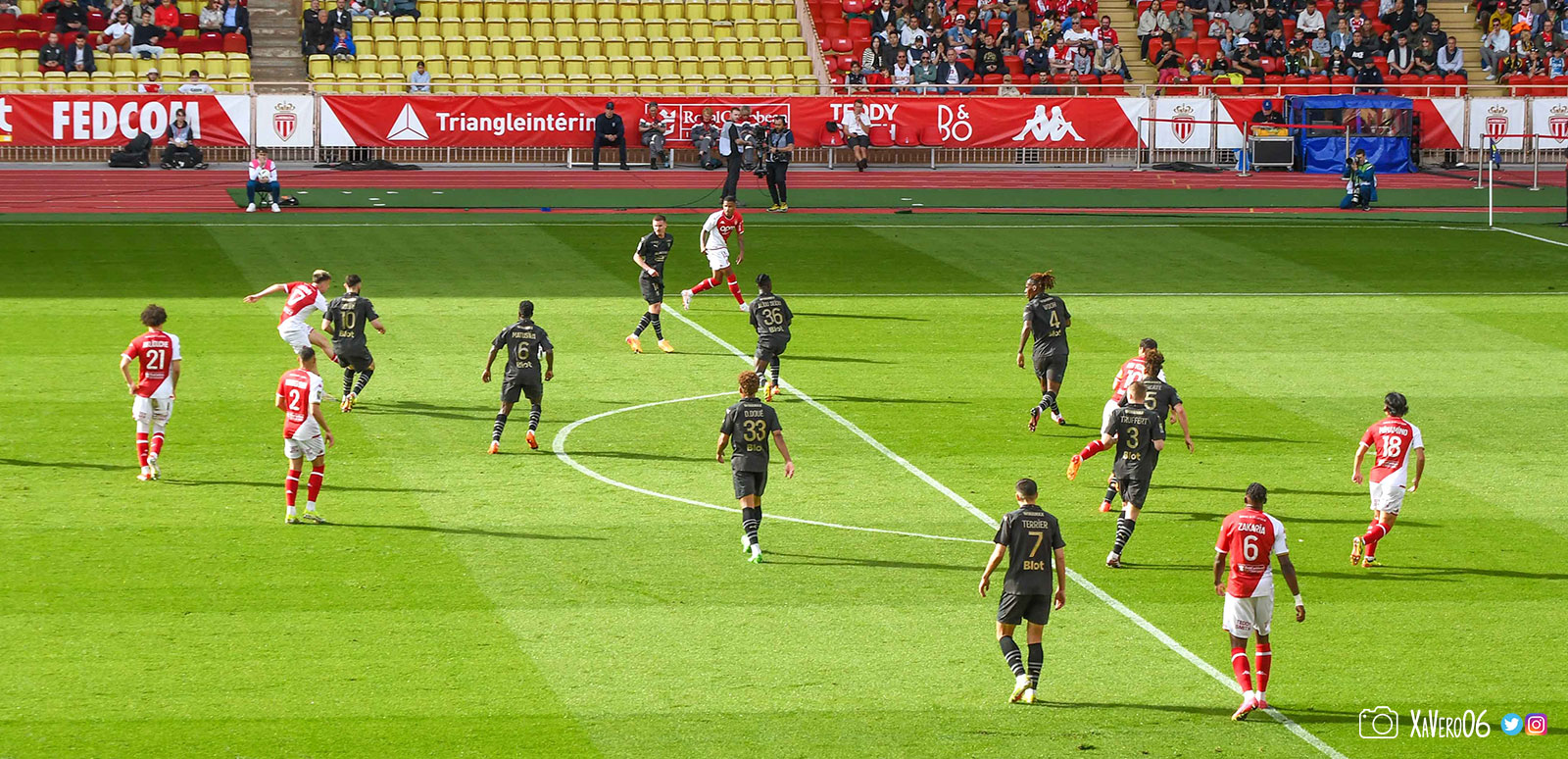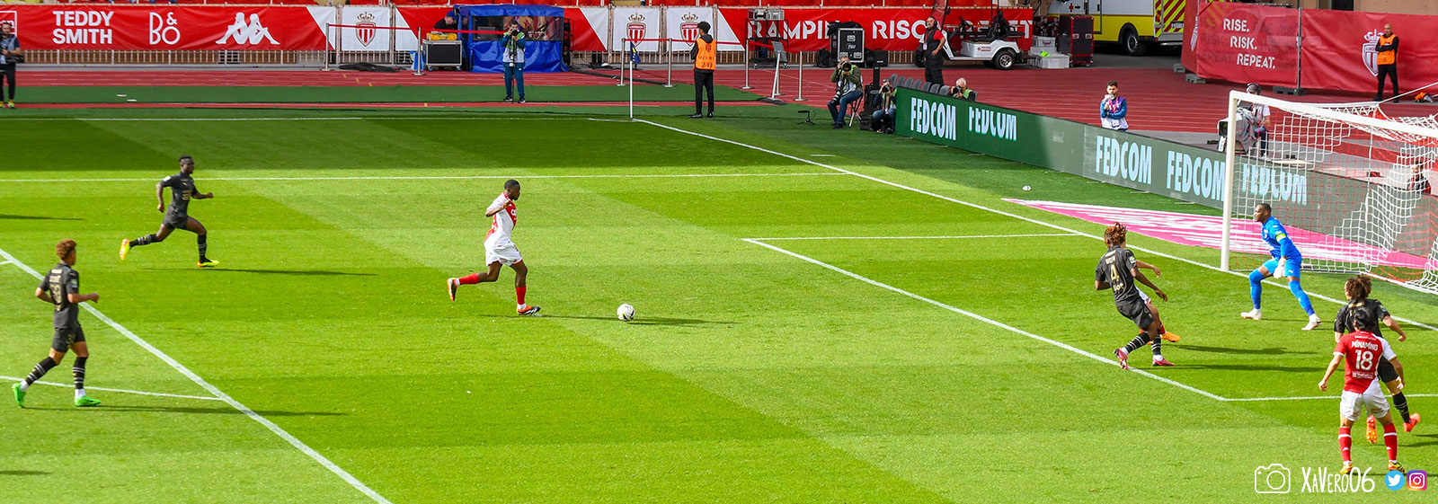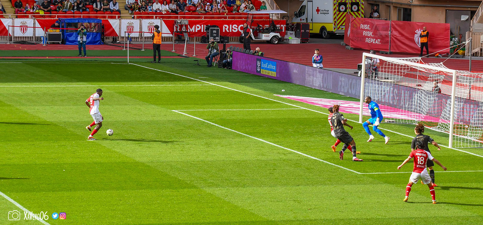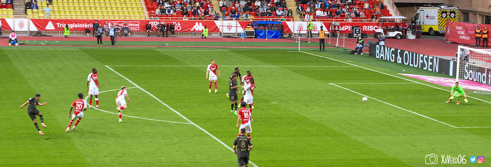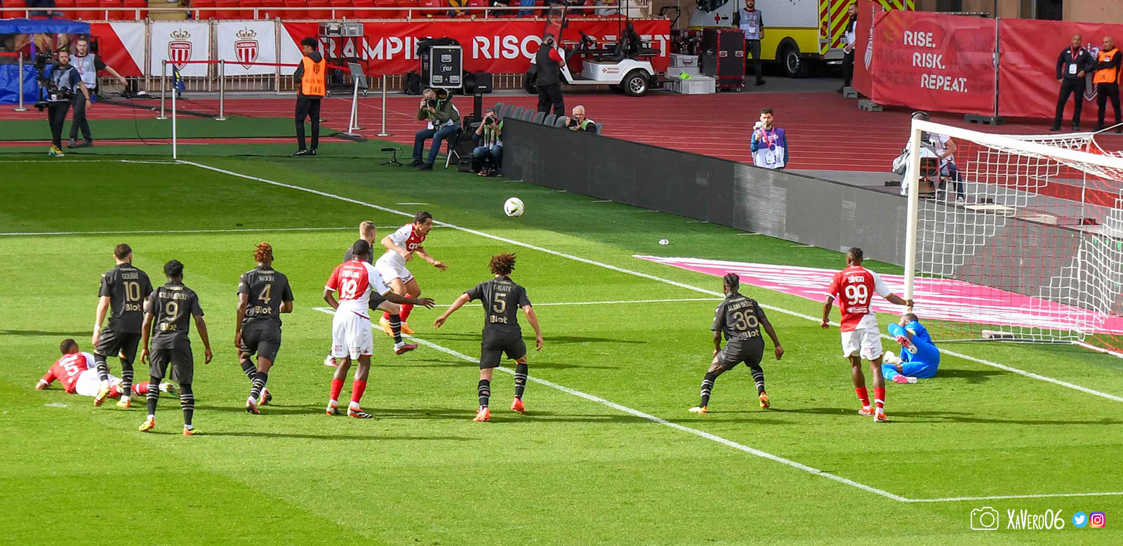 Attaque de l'ASM, avec un centre de Vanderson côté droit. Seidu est trop court au second poteau et prolonge du crâne derrière lui, sur Akliouche à l'angle des 6m, qui contrôle, feinte la frappe en centrant en retrait pour Minamino devancé par le tacle de Matusiwa. Corner (45e+1).