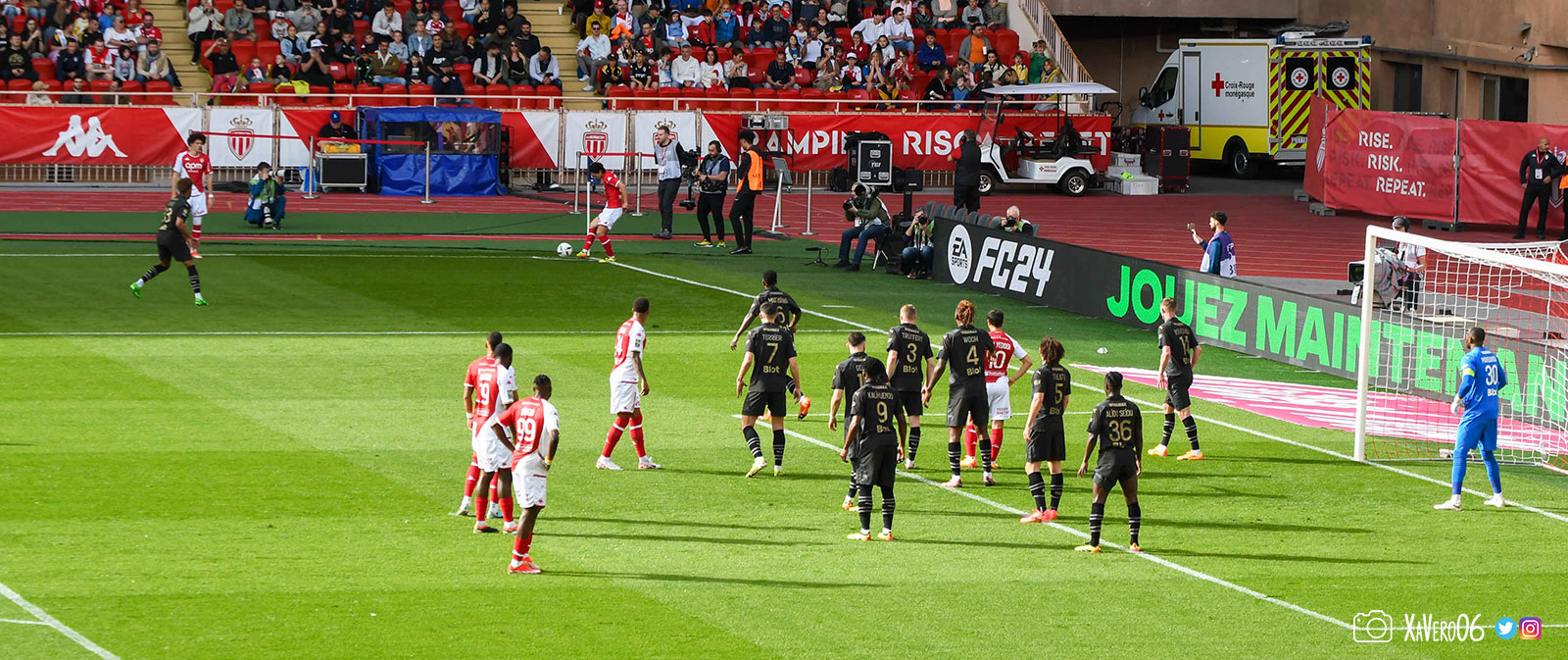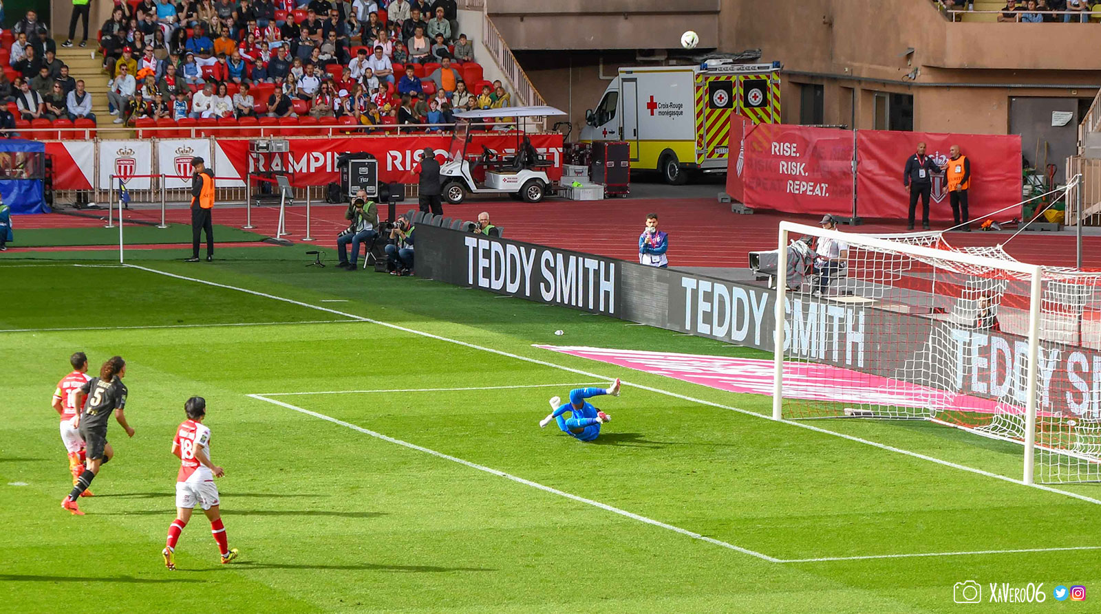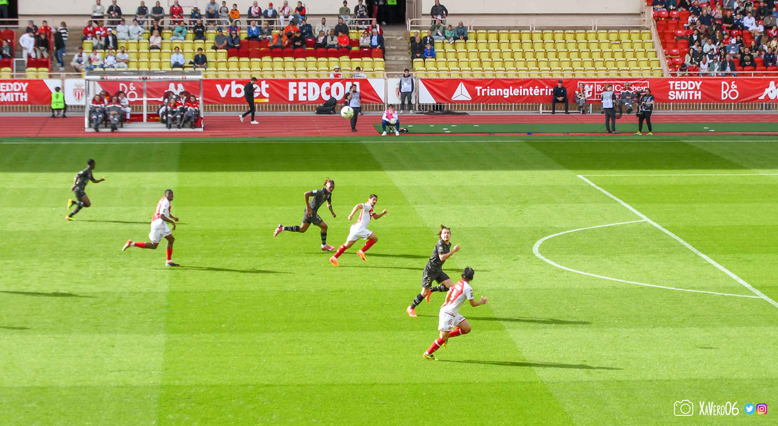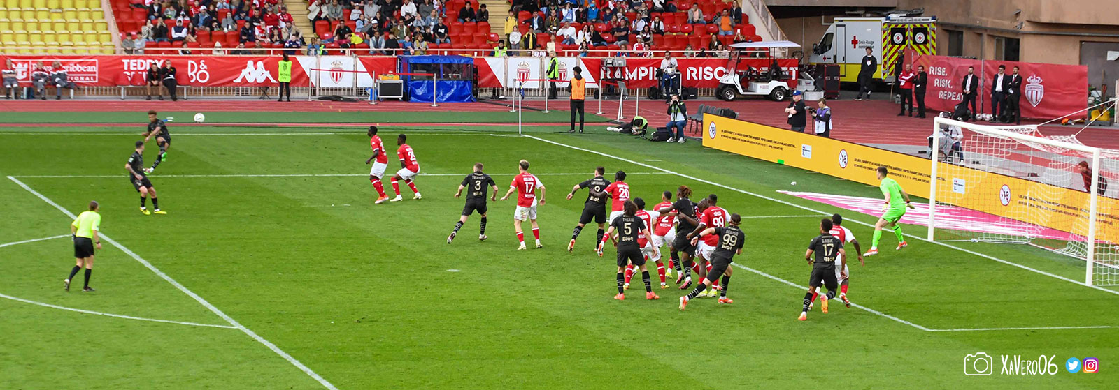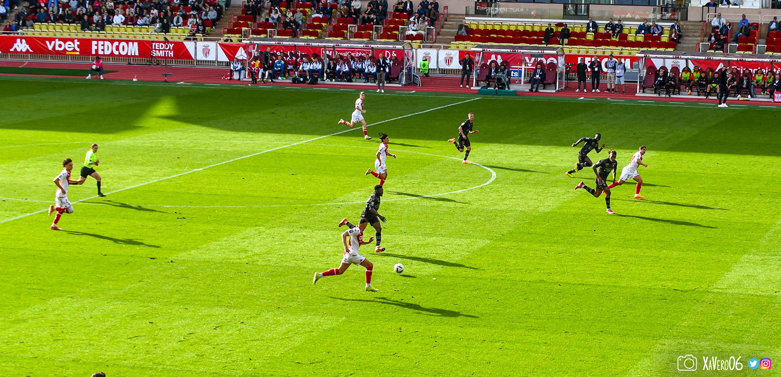 Attaque de l'ASM, avec un centre de Vanderson côté droit. Seidu est trop court au second poteau et prolonge du crâne derrière lui, sur Akliouche à l'angle des 6m, qui contrôle, feinte la frappe en centrant en retrait pour Minamino devancé par le tacle de Matusiwa. Corner (45e+1).
