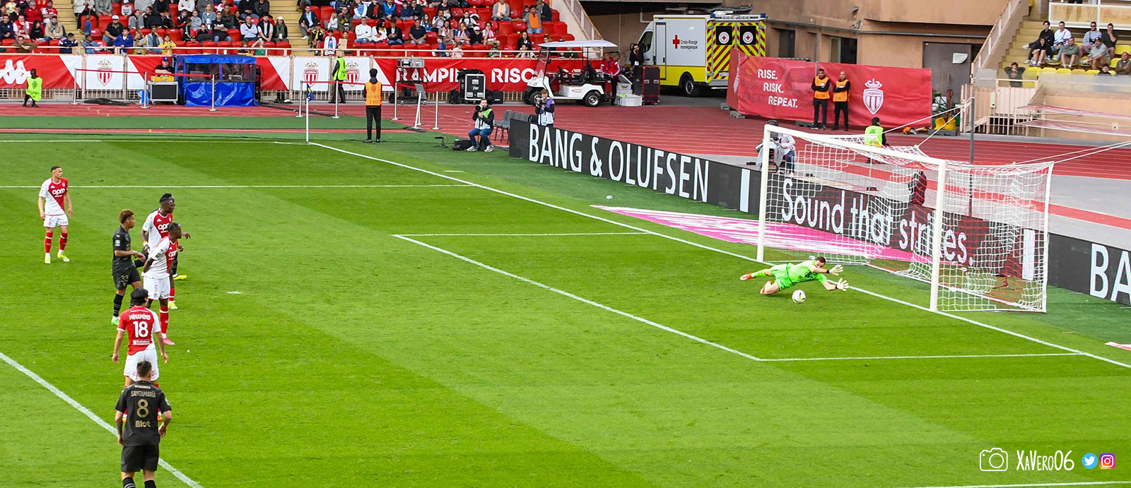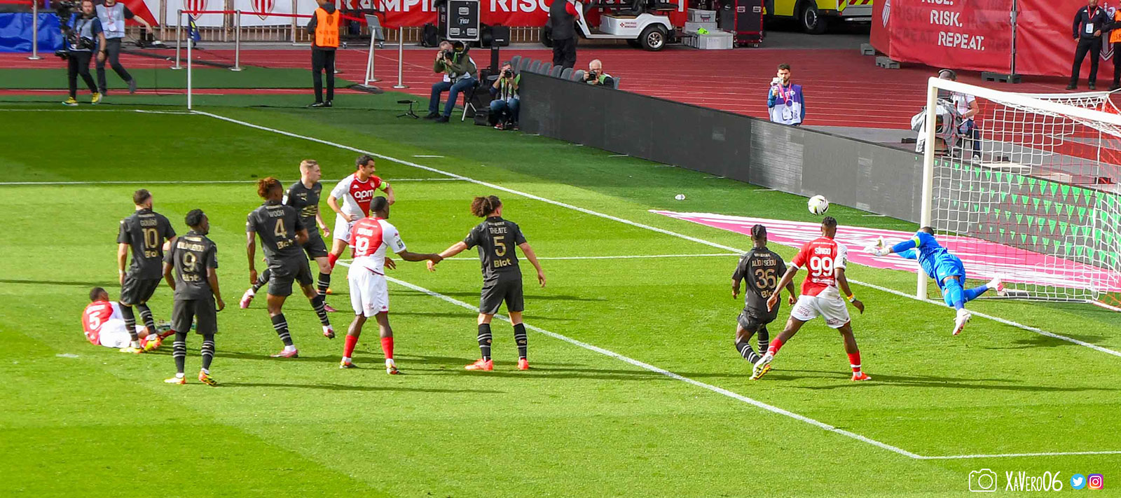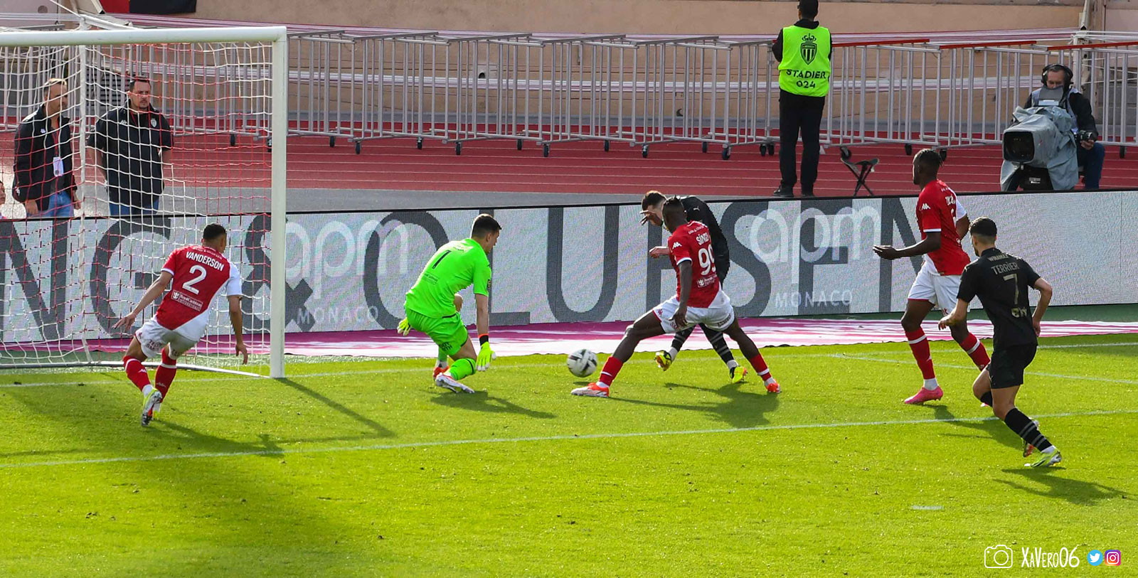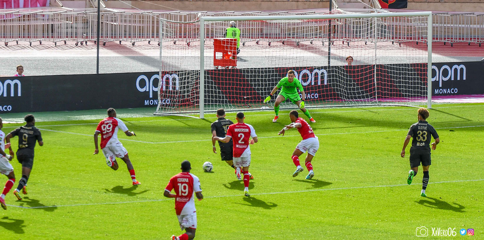 Et c'est rapidement payant, avec un ballon perdu de Bourigeaud. Minamino lance côté gauche Ismail Jakobs qui centre en aveugle et en retrait pour le point de pénalty où Maghnes Akliouche vient couper et reprendre du plat du pied gauche. Le ballon est croisé et hors de portée de Mandanda, battu (1-0, 25e).
