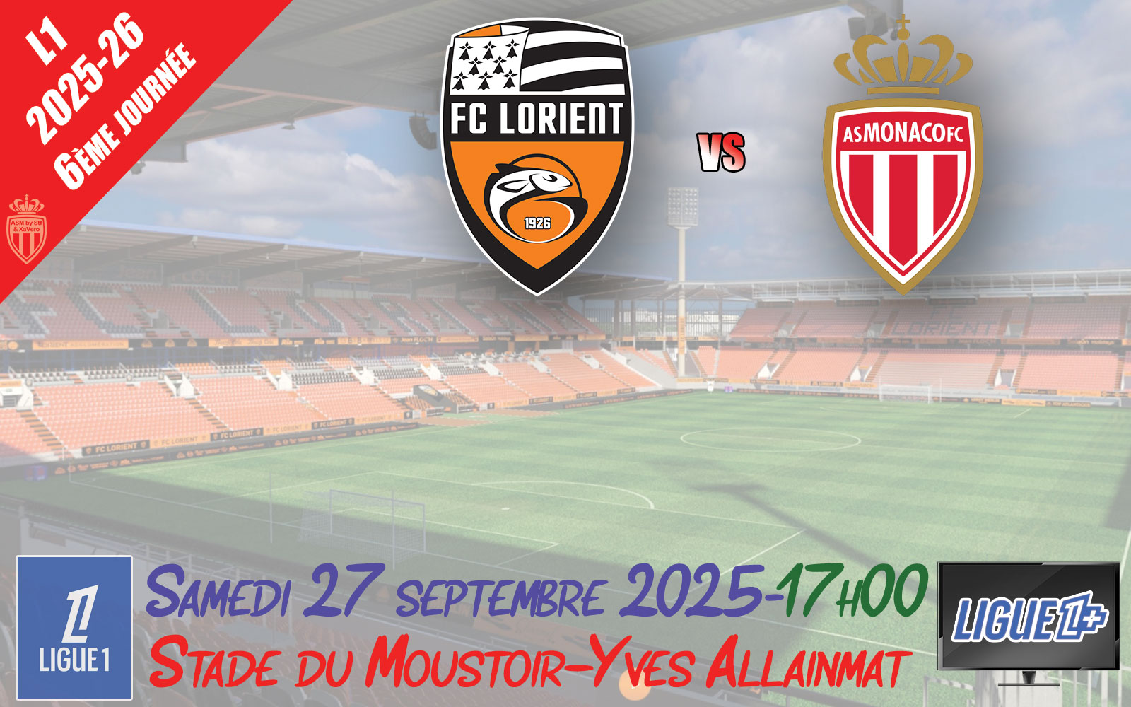 Pour la 6ème journée de Ligue 1, l'AS Monaco (1er) se rend chez le FC Lorient (17ème).