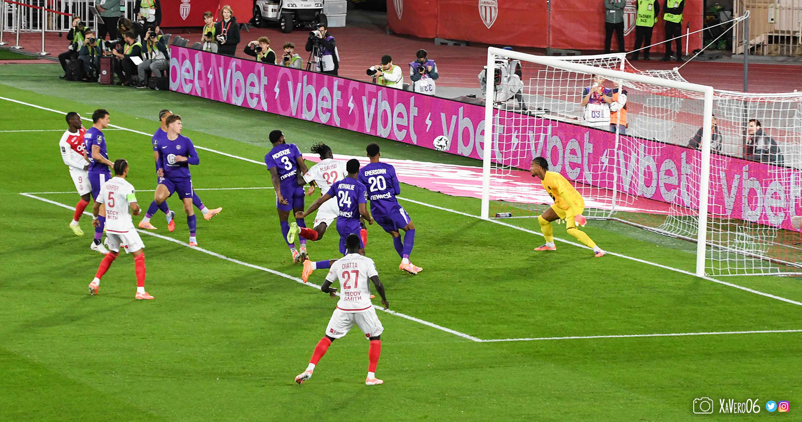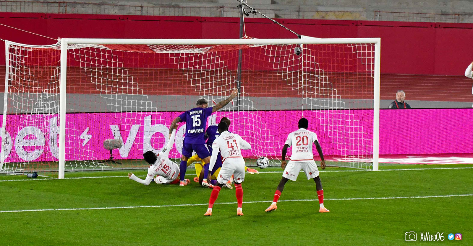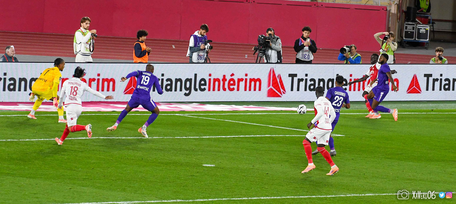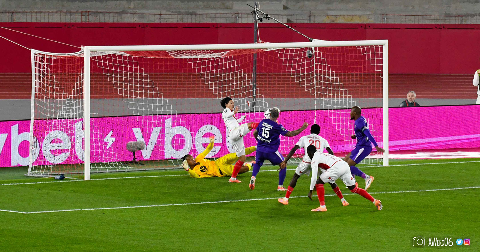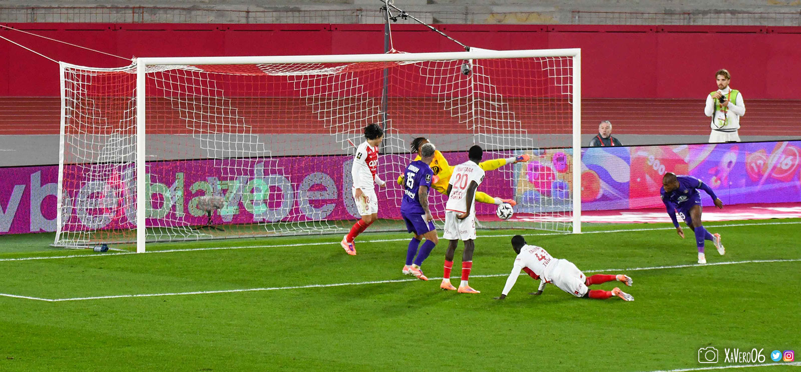 - Long ballon monégasque rendu par Dønnum à Ouattara aux 25m sur la gauche, qui accélère pour rentrer dans la surface à gauche et adresse un centre aux 6m où Folarin Balogun vient couper et reprendre du plat du pied droit. Restes repousse d'un réflexe devant son but aux 6m où Ansu Fati se précipite pour reprendre ... devant Takumi Minamino et met le ballon à côté alors que le gardien était encore au sol (35e).