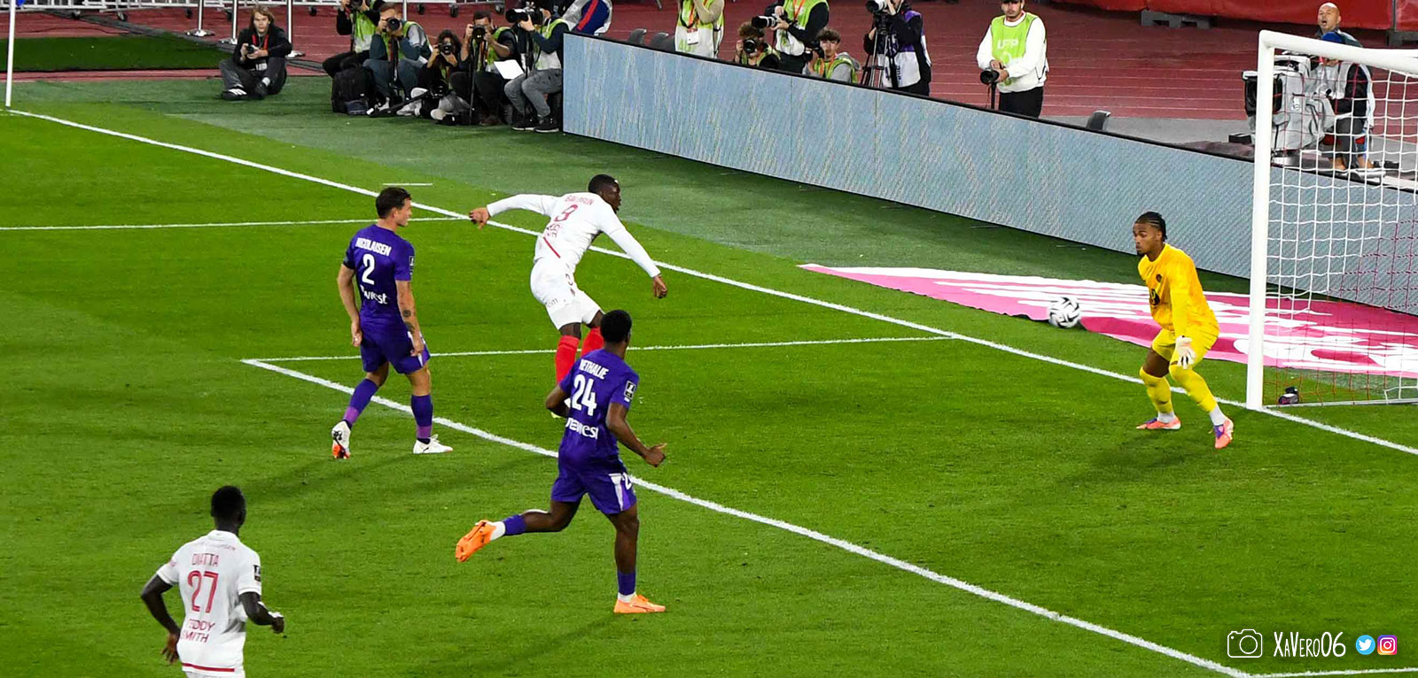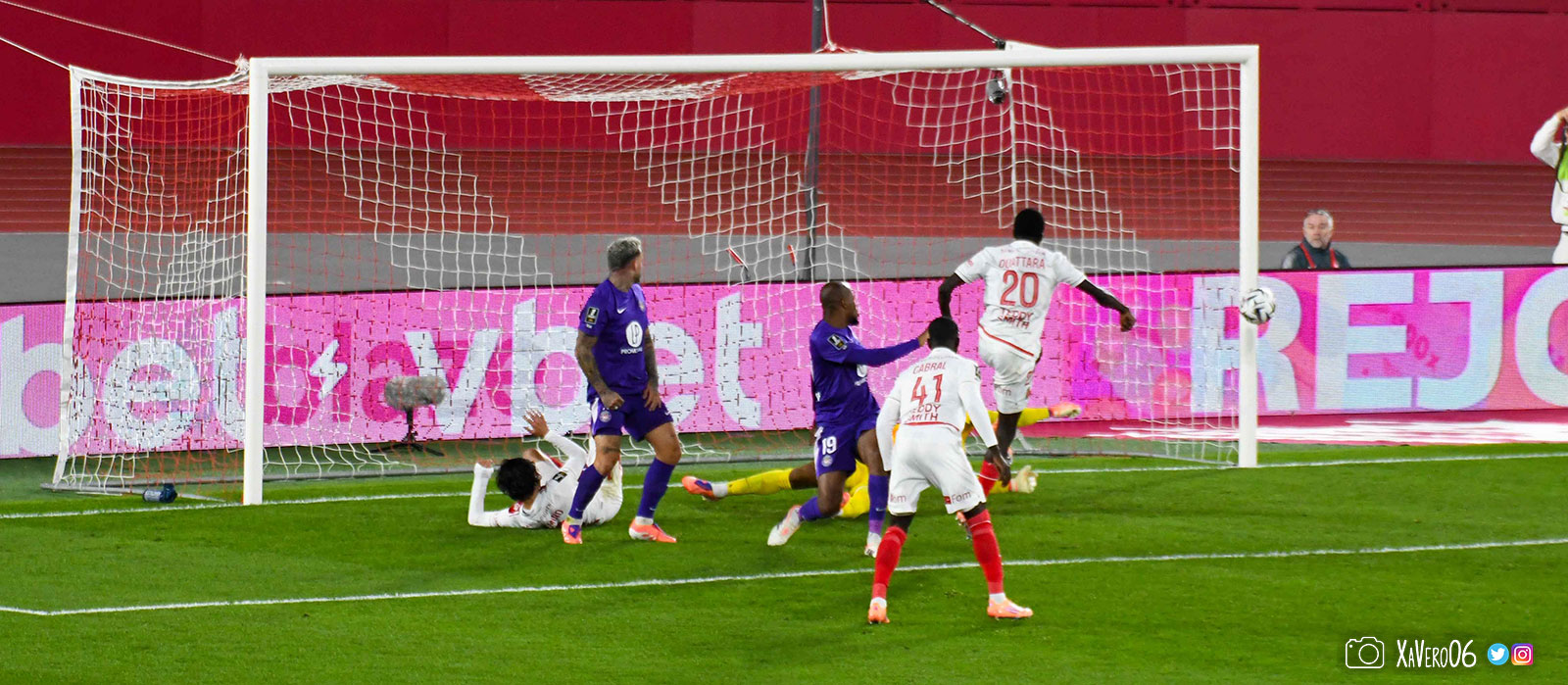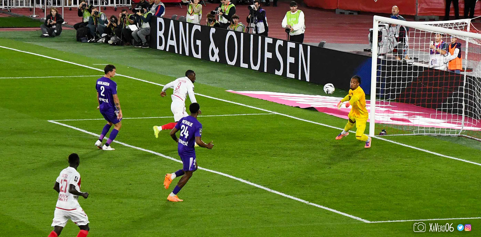 - Côté droit, Ilenikhena décale Diatta dans la surface qui centre immédiatement en retrait où Pape Cabral reprend de l'extérieur du droit en extension. Restes effectue un nouvel arrêt réflexe et repousse devant son but où Minamino n'arrive pas à contrôler le ballon qui rebondit, Restes par terre arrive à repousser encore le ballon devant lui sur Kassoum Ouattara aix 6m face au but grand ouvert qui tire de l'extérieur du gauche et fracasse le montant opposé, le ballon sortant rapidement de la surface par l'axe (78e).