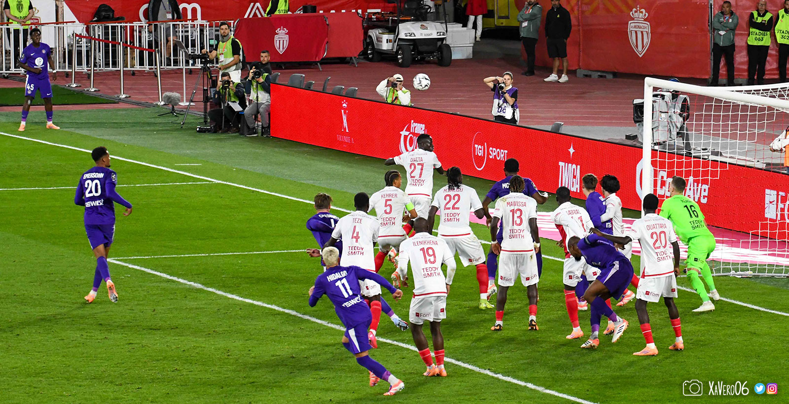 La rencontre débute fort pour l'AS Monaco qui cherche à aller rapidement devant le but toulousains, et obtient un corner après une frappe de Ouattara détournée (2e).