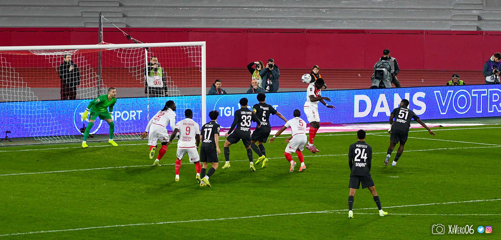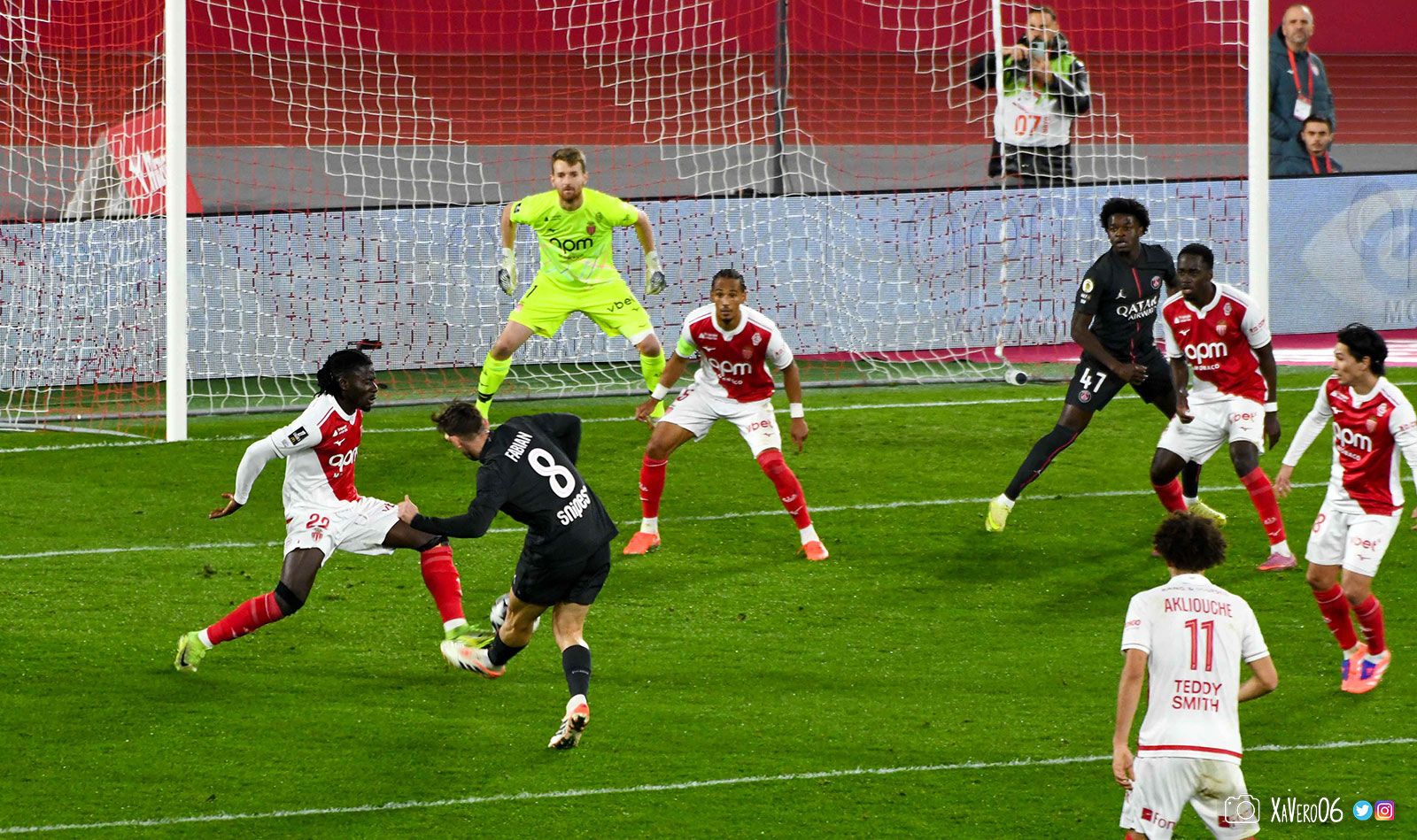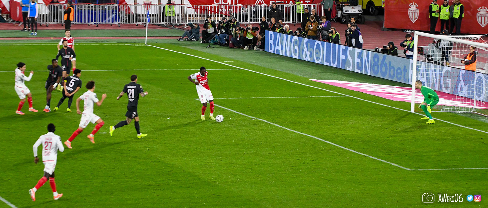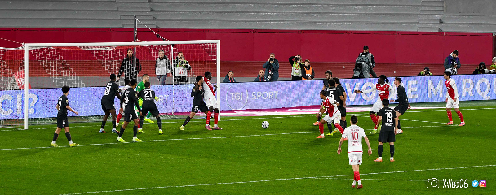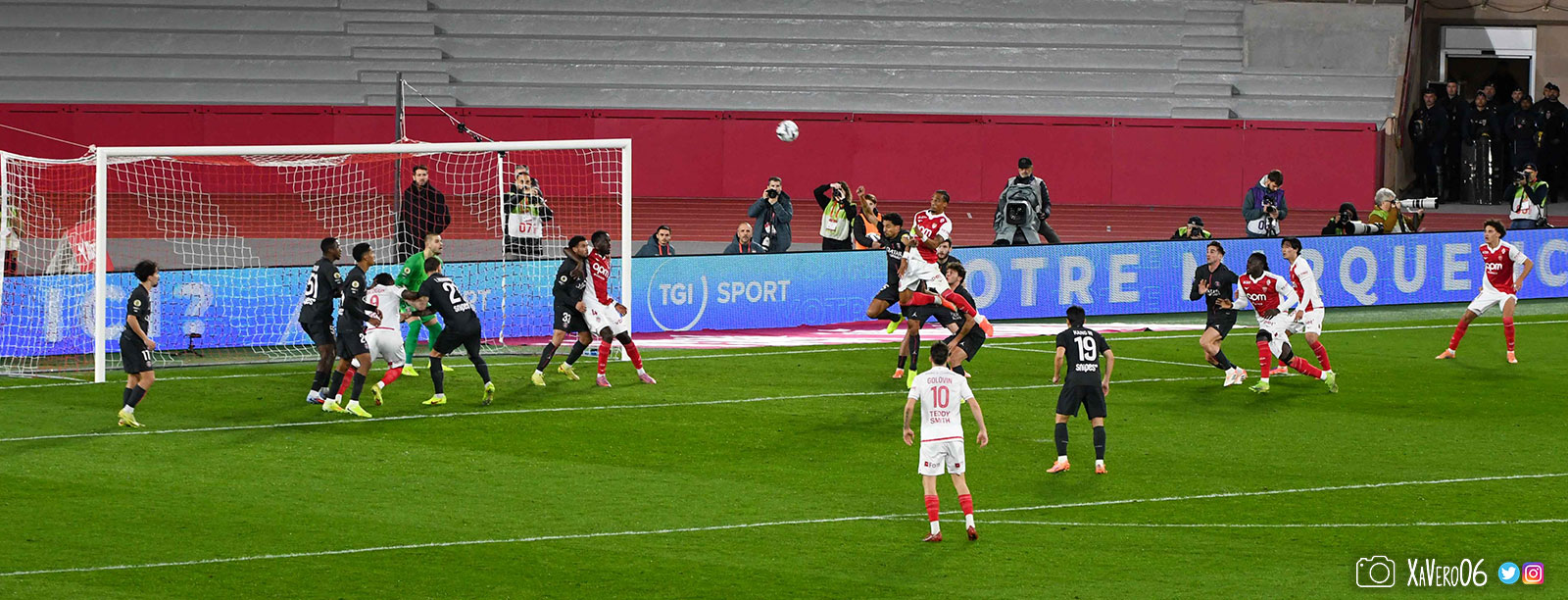 - Passe lobée de Teze pour Akliouche dans la surface, parti dans le dos de la défense. Le ballon est un peu fort et le monégasque ne peut le prendre aux 6m au premier poteau (21e).