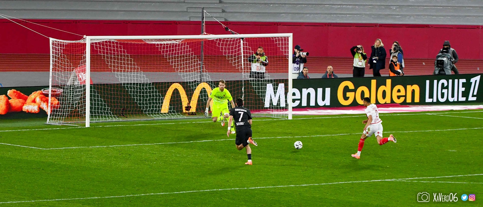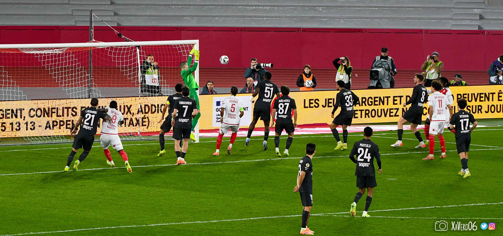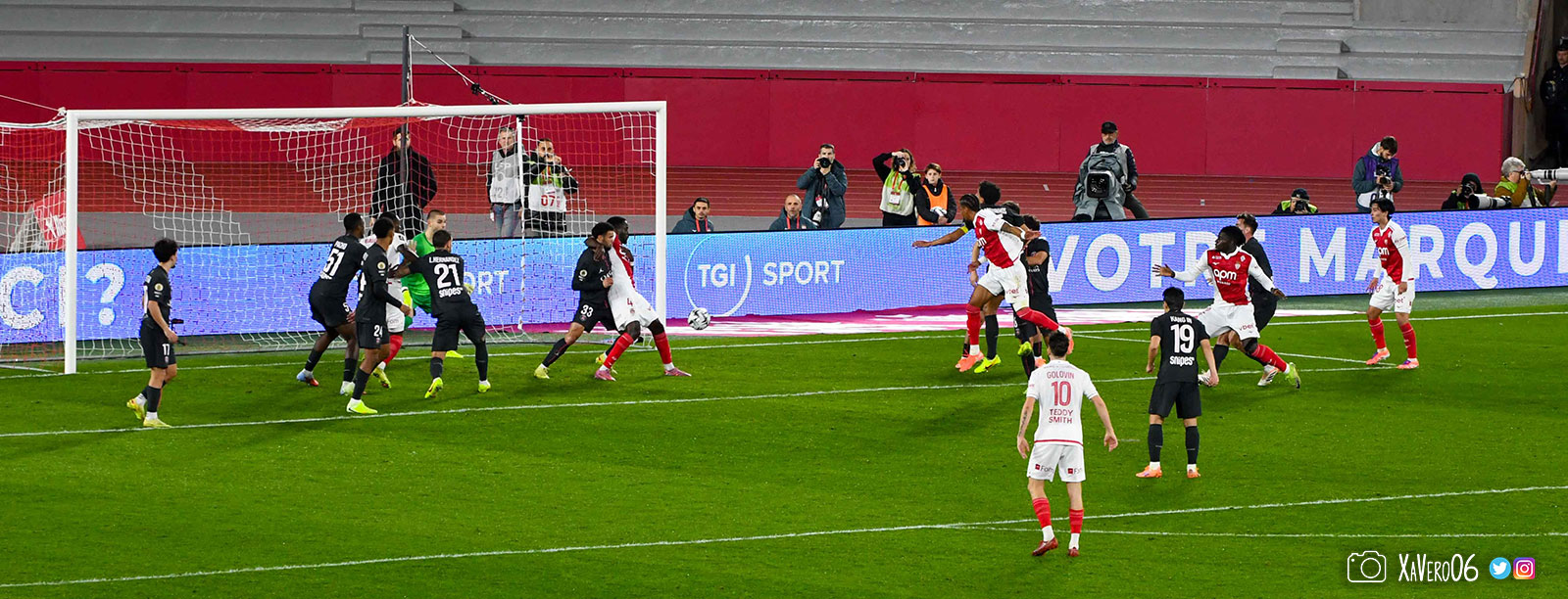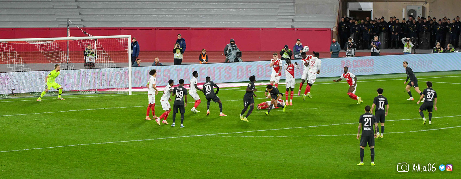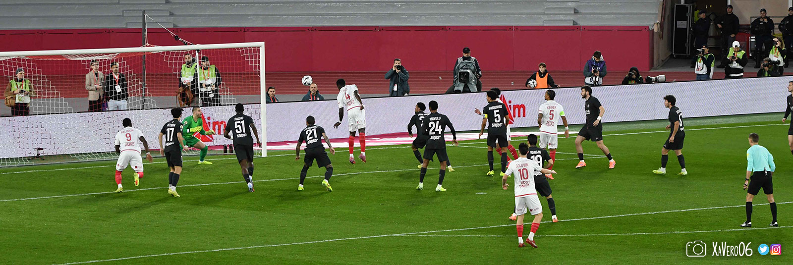 - Passe lobée de Teze pour Akliouche dans la surface, parti dans le dos de la défense. Le ballon est un peu fort et le monégasque ne peut le prendre aux 6m au premier poteau (21e).