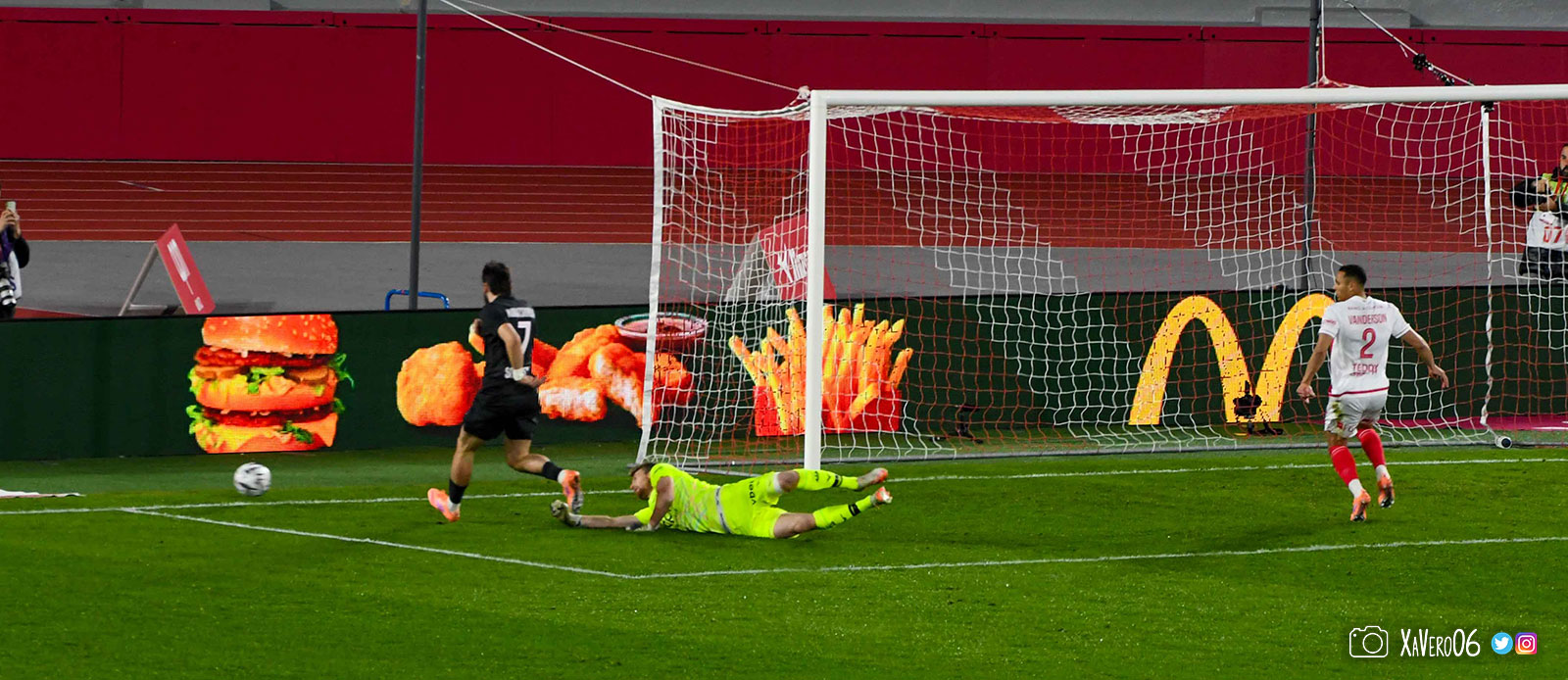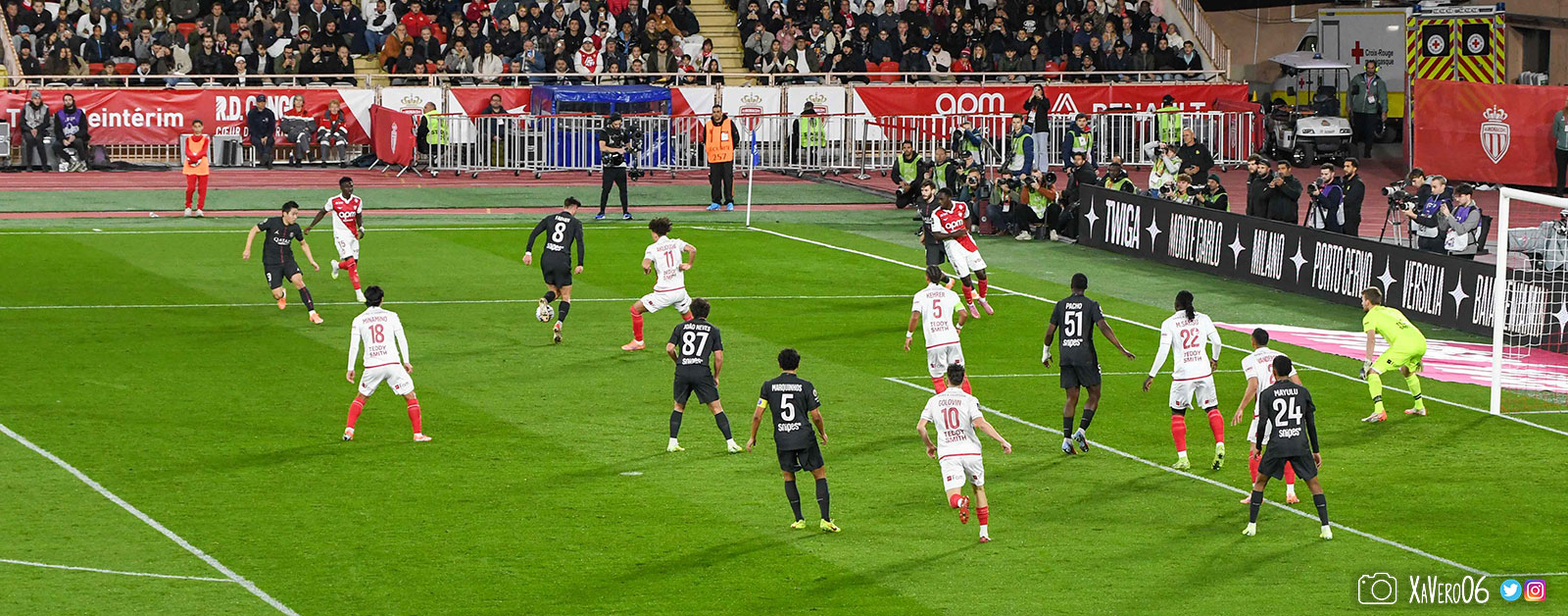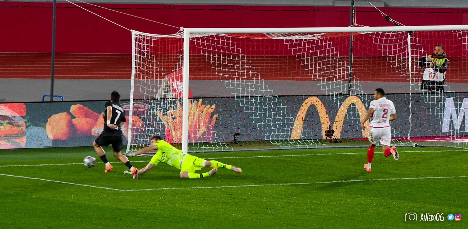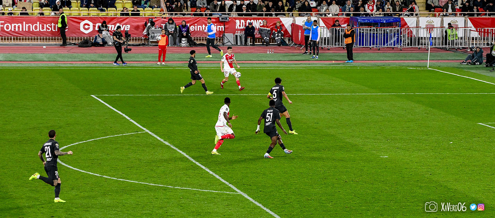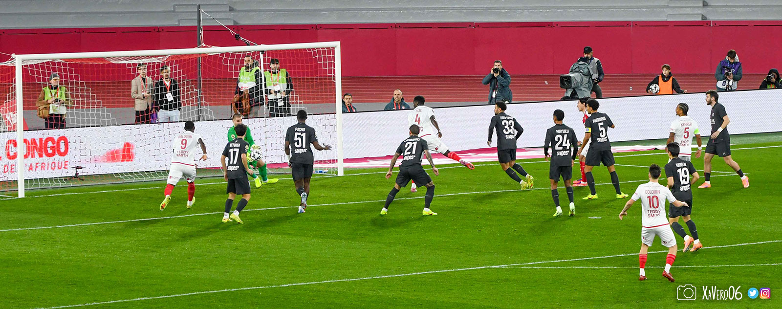 - Passe lobée de Teze pour Akliouche dans la surface, parti dans le dos de la défense. Le ballon est un peu fort et le monégasque ne peut le prendre aux 6m au premier poteau (21e).