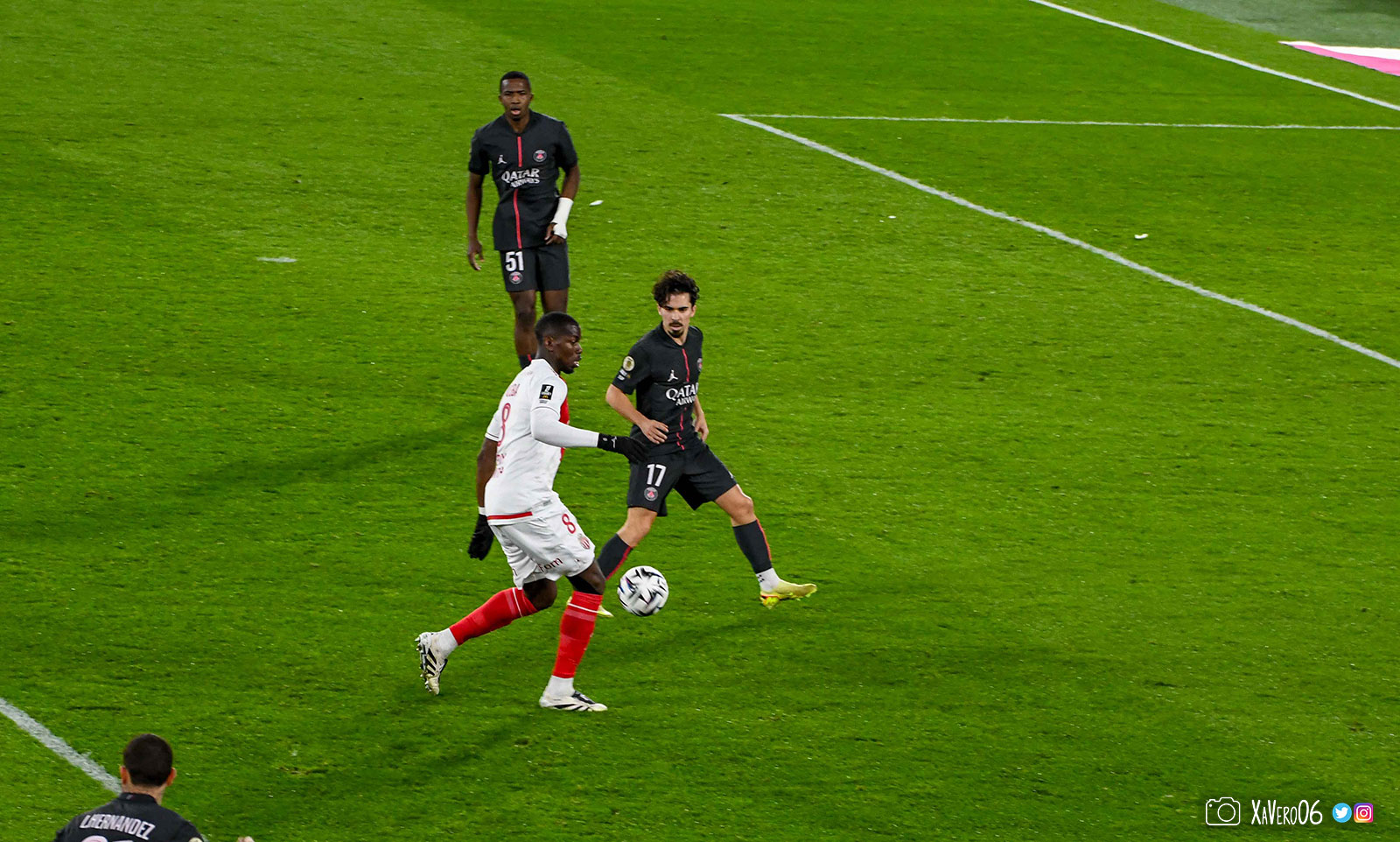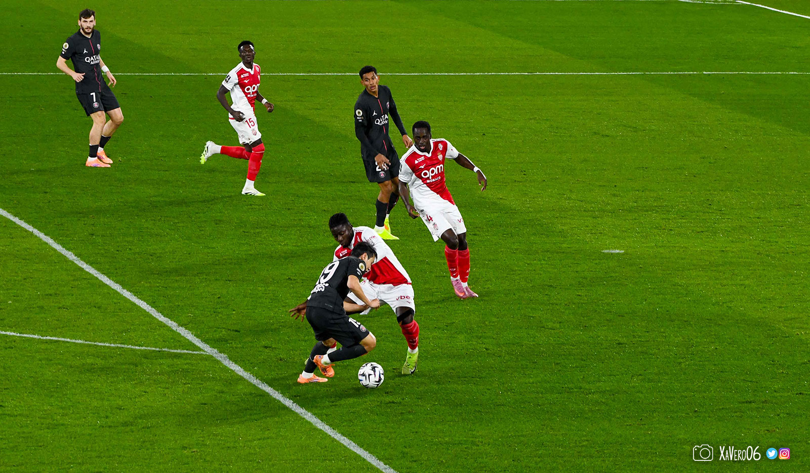 Monaco chercher toujours à presser Paris pour l'empêcher d'installer son jeu, la justesse technique des parisiens fait qu'ils passent quand ils mettent de la vitesse.