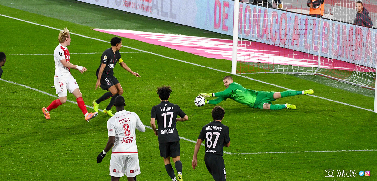 - Ballon repoussé par la défense monégasque sur Vitinha qui vient contrôler de la poitrine aux 18m avant de reprendre du bout du pied en tendant la jambe. Hrádecký se détend et capte la volée sans puissance (90e+3).