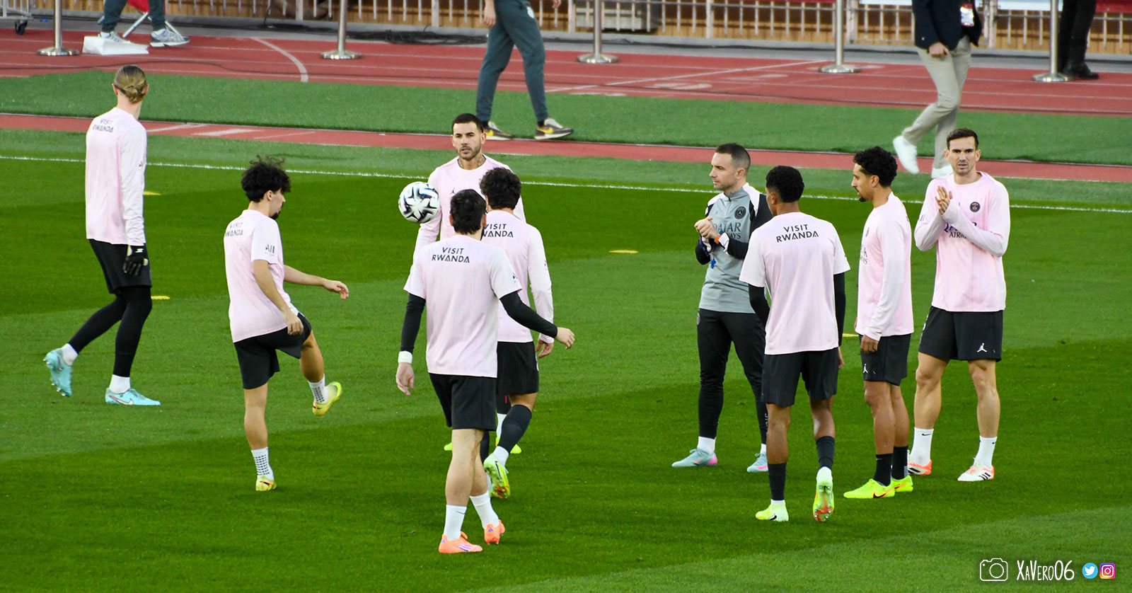 Côté PSG, Luis Enrique commence avec Chevalier, Hernandez, Pacho, Marquinhos, Zaïre-Emery, Vitinha, Ruiz, Neves, Kvaratskhelia, Lee, Mayulu.