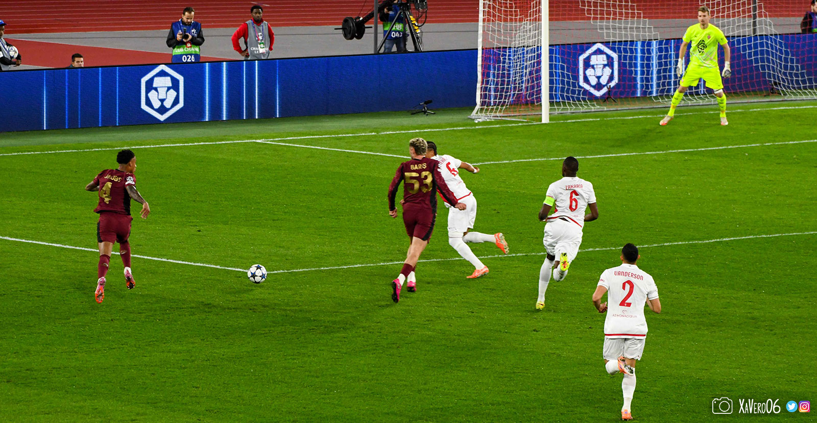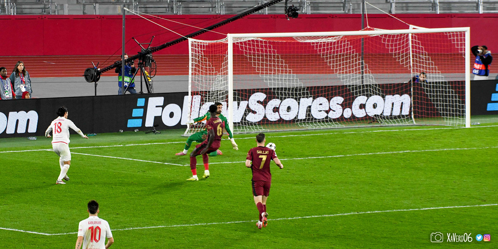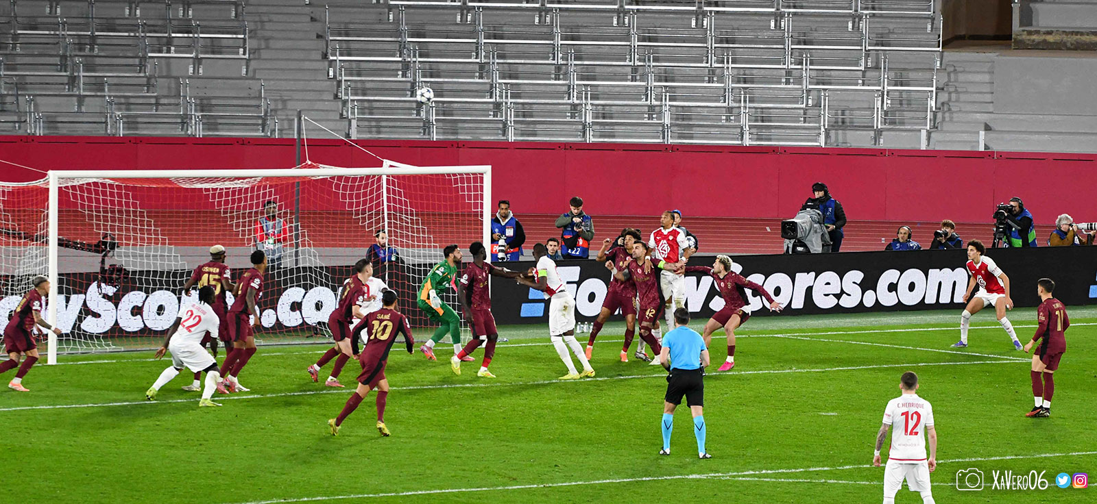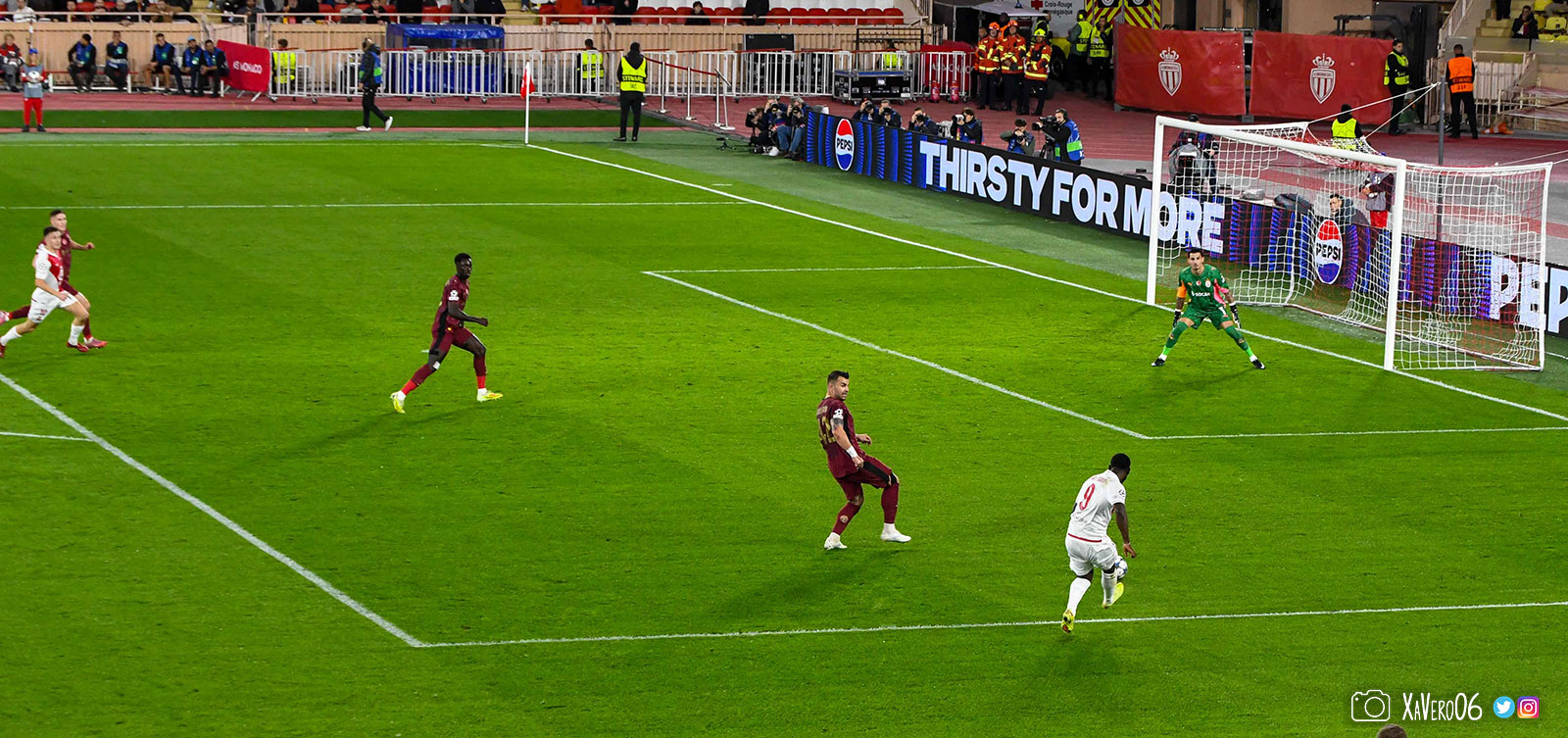 Encore une longue transversale de Vanderson pour Golovin côté gauche aux 35m, qui contrôle, accélère et décale pour Caio passé dans le dos du défenseur, qui met en retrait pour Balogun qui laisse passer entre ses jambes pour Lamine Camara dans son dos, seul aux 16m face au but qui reprend du plat du pied droit et met le ballon au-dessus de la lucarne droite de Güvenç qui avait plongé sur sa gauche (80e).