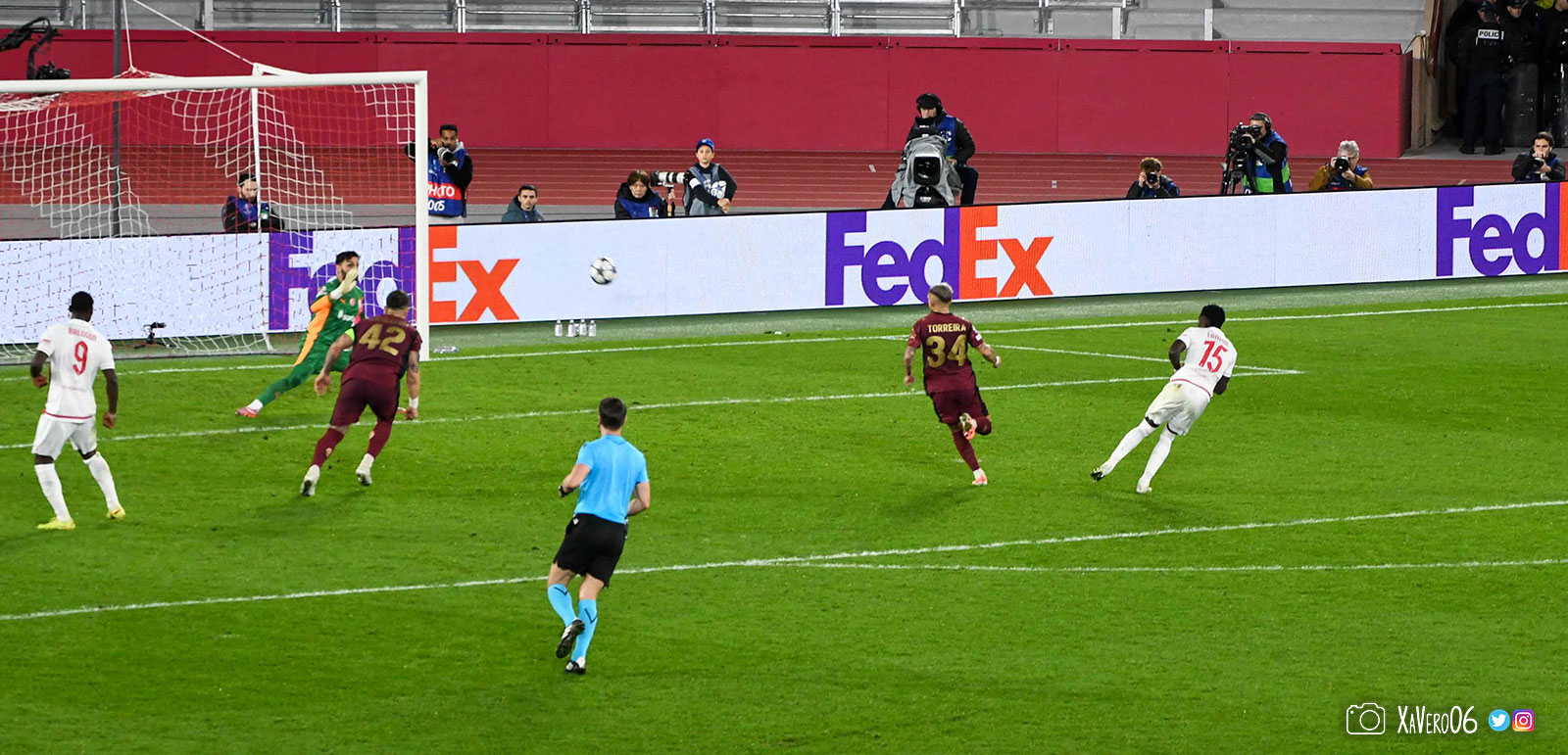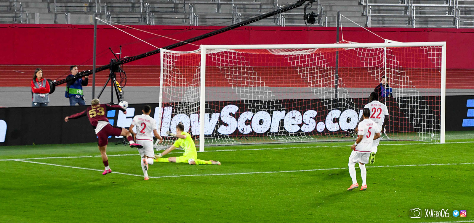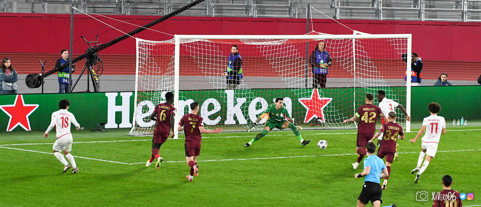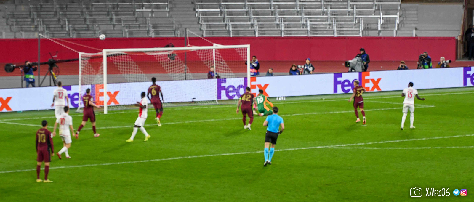 - Sallai côté droit met en retrait pout Sara aux 20m, contré par le tacle de Zakaria. Le ballon part en cloche et retombe dans les gants de Hrádecký qui peut relancer (17e).