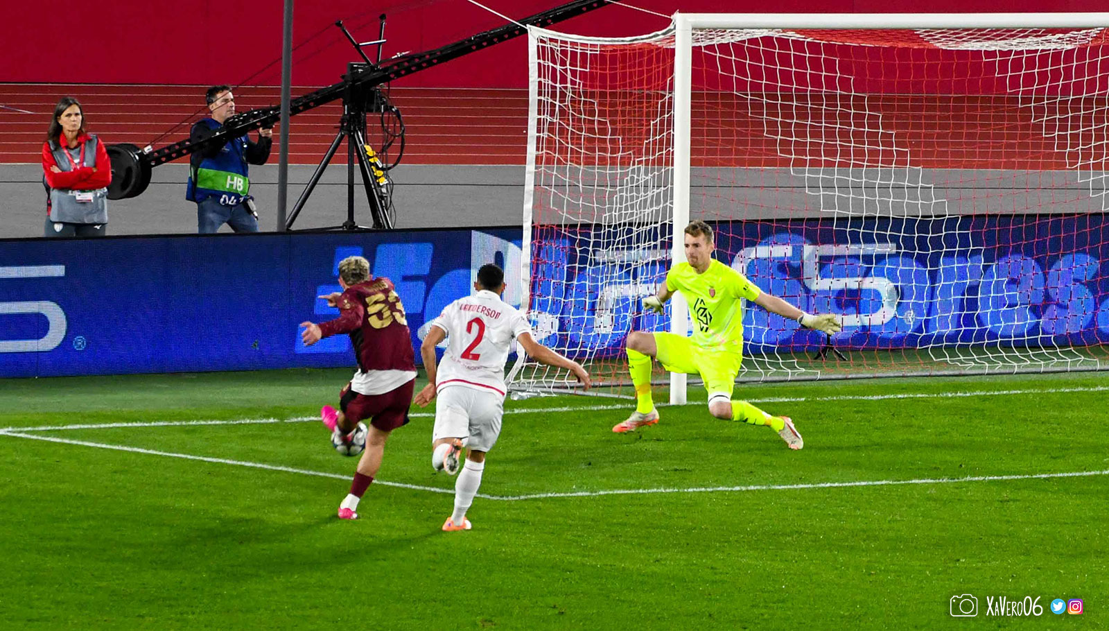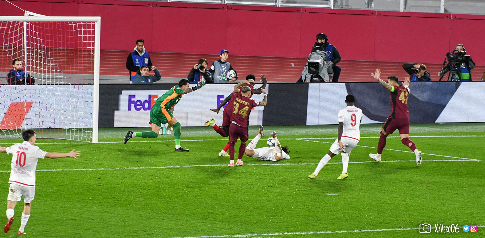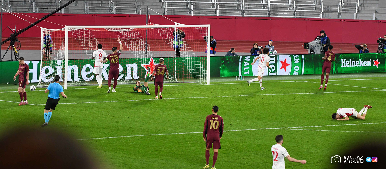 - Sallai côté droit met en retrait pout Sara aux 20m, contré par le tacle de Zakaria. Le ballon part en cloche et retombe dans les gants de Hrádecký qui peut relancer (17e).