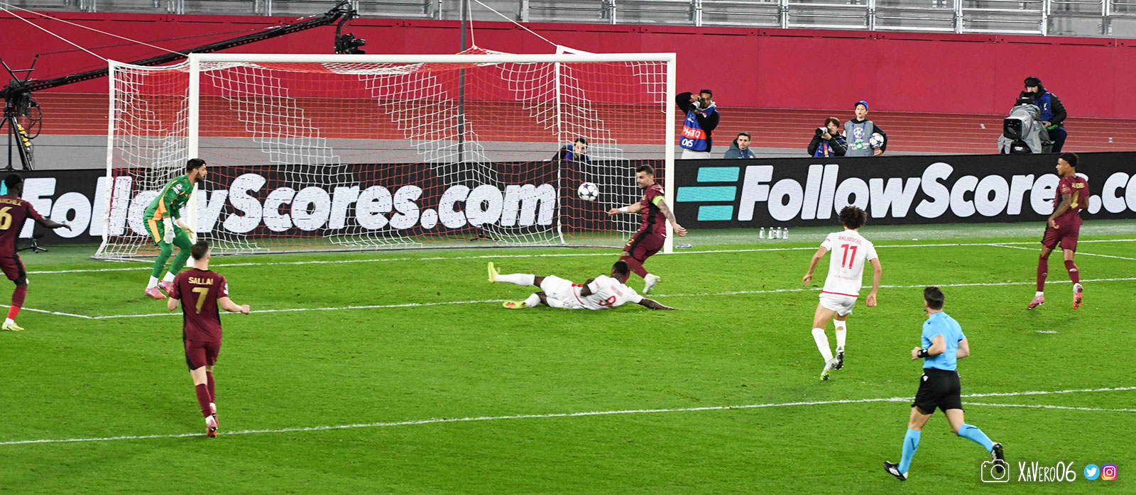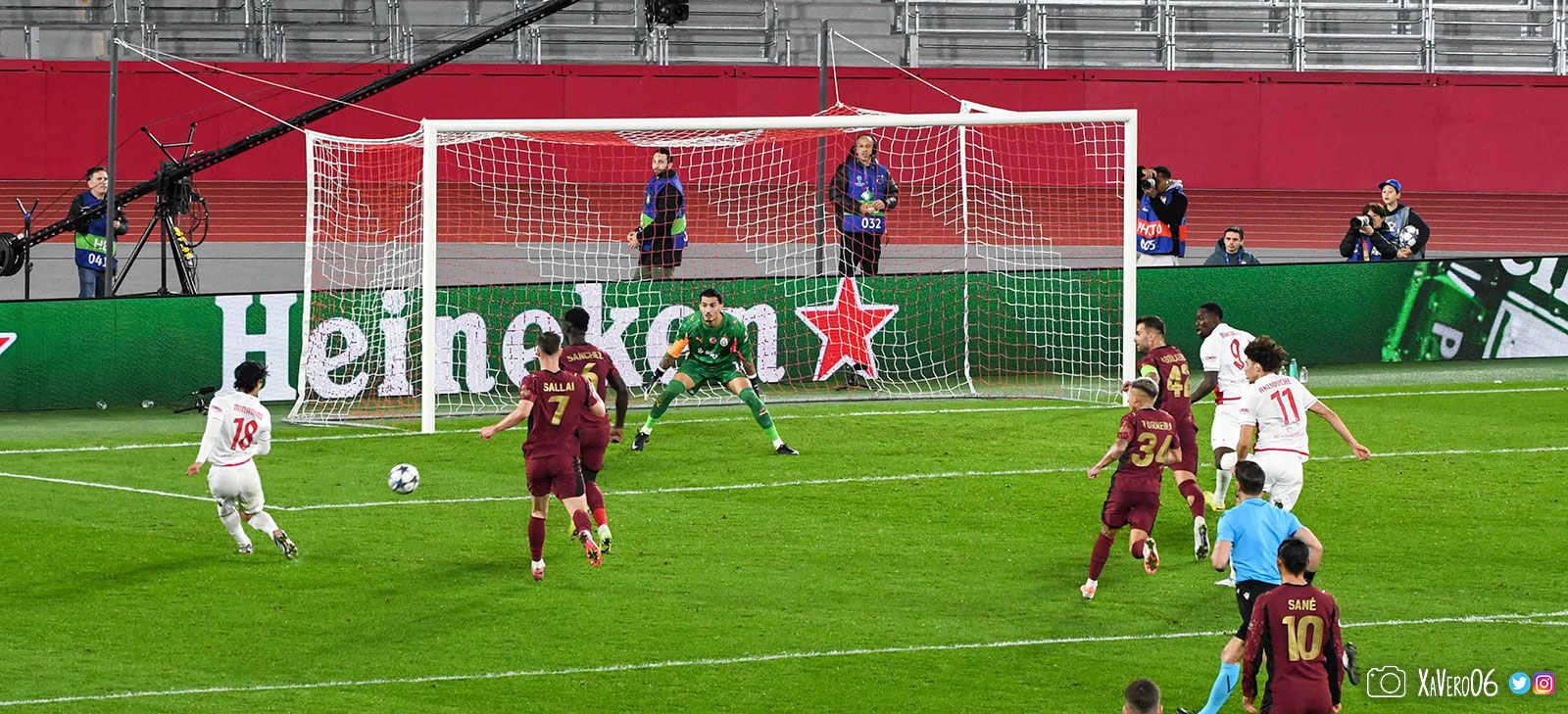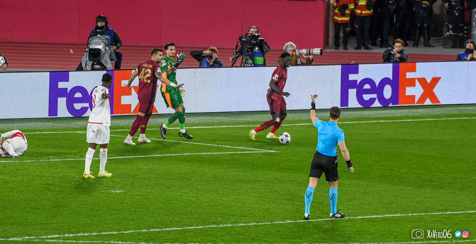 L'arbitre fait signe de jouer, Minamino reste au sol, le jeu continue avec Sané qui vient déborder, rentre dans la surface asémiste et est repris par Caio avant que l'arbitre n'arrête le jeu, appelé par la V.A.R.