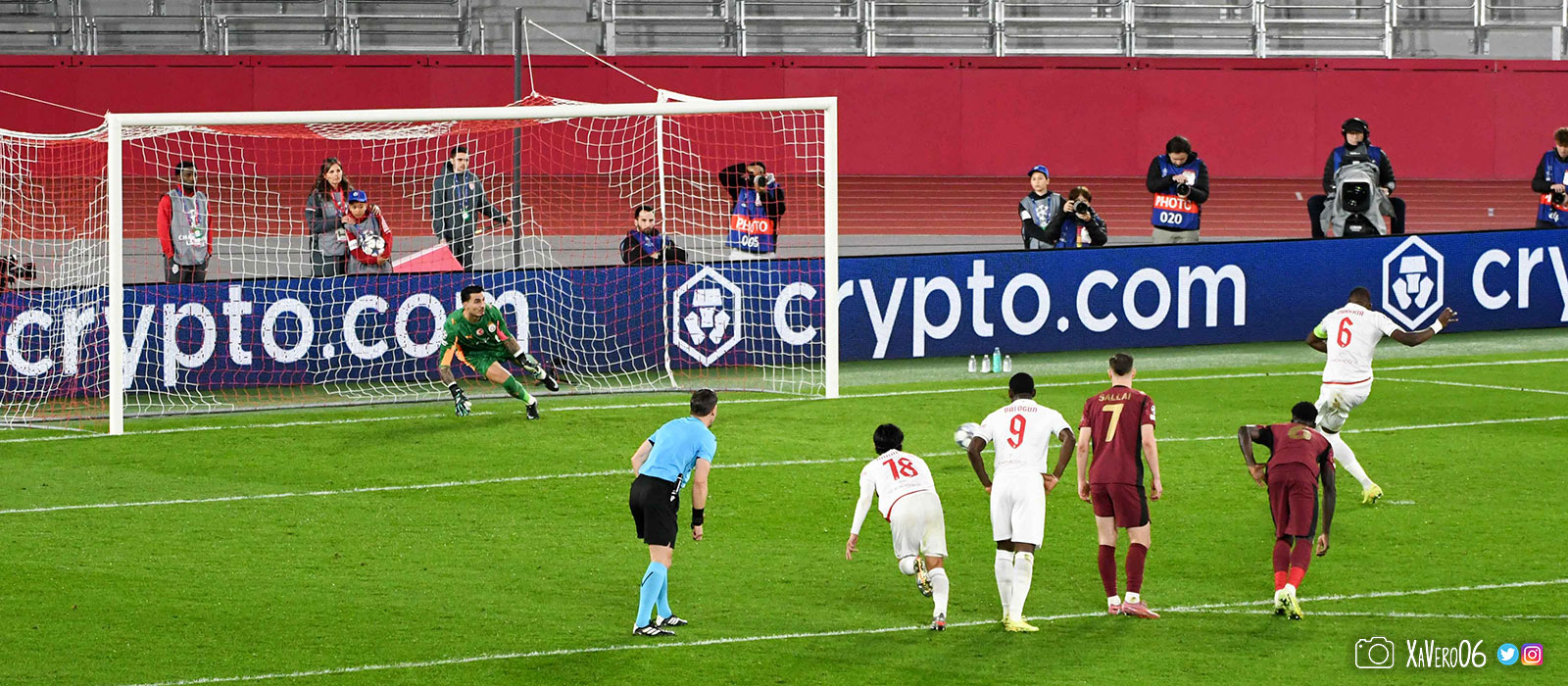 C'est le capitaine Denis Zakaria qui se charge de la sentence. Il rate son tir qui part plein centre et à ras de terre en rebondissant. Çakir est parti sur sa droite mais a laissé ses jambes traînées et repousse vers son côté gauche où Maghnes Akliouche est proche de reprendre de volée, mais le ballon tournoie tellement qu'il est trompé par la trajectoire (50e).