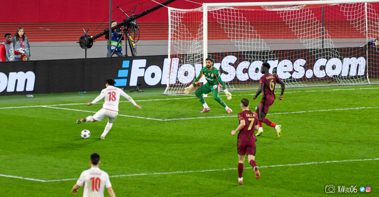 - Interception de Vanderson aux 25m, qui donne pour Maghnes Akliouche devant lui qui accélère, traverse le terrain jusqu'aux 20m adverses, crochète Torreira à l'angle de la surface et enroule son ballon que Çakir va chercher, et détourne d'une belle horizontale en corner (30e).