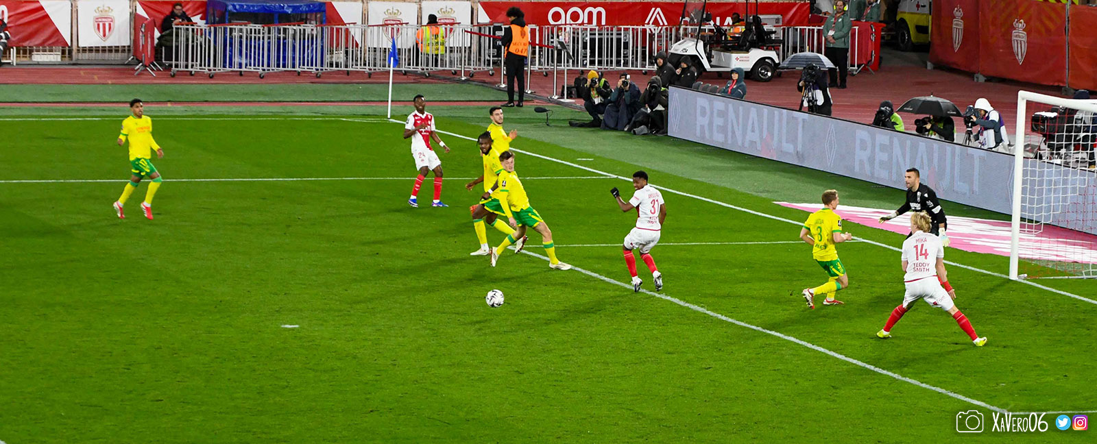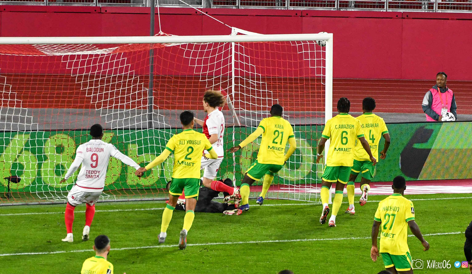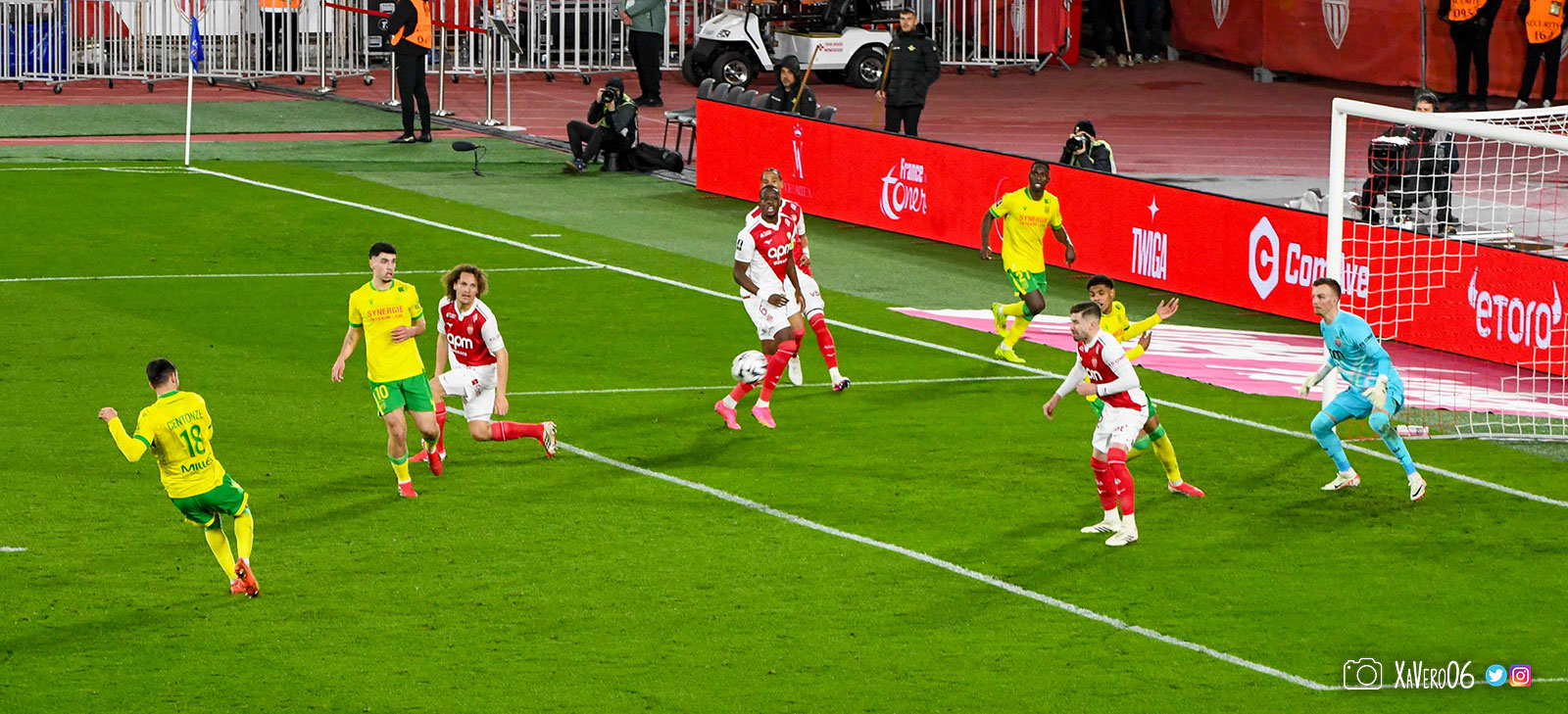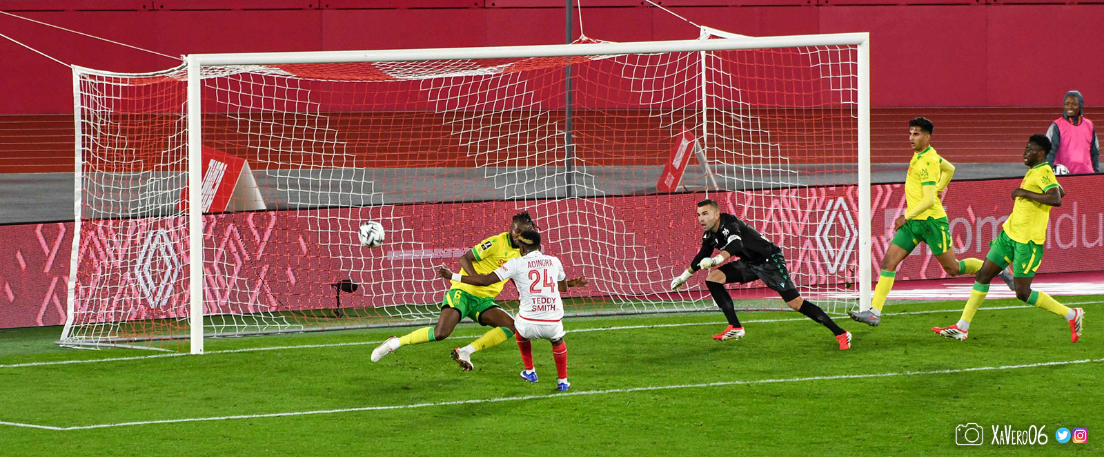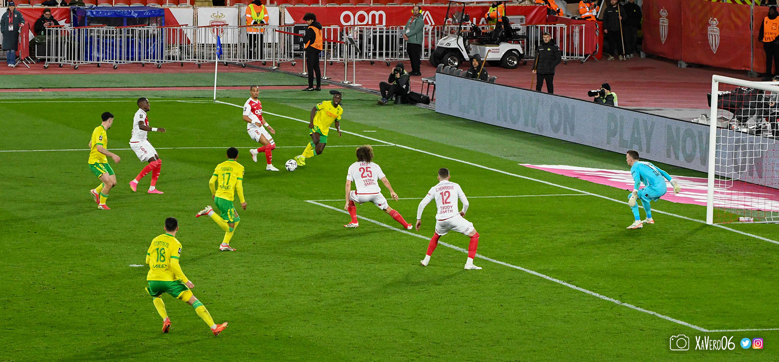 - Nantes a le ballon, fait tourner sans trouver la faille aux 25-30m. Monaco contre avec Teze dans le rond central qui met à gauche sur Simon Adingra qui efface facilement Tabibou, rentre dans la surface et met en retrait au point de pénalty où il n'y a personne car Fati et Biereth avaient fait le même appel aux 6m devant le but (82e).