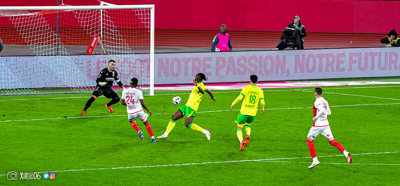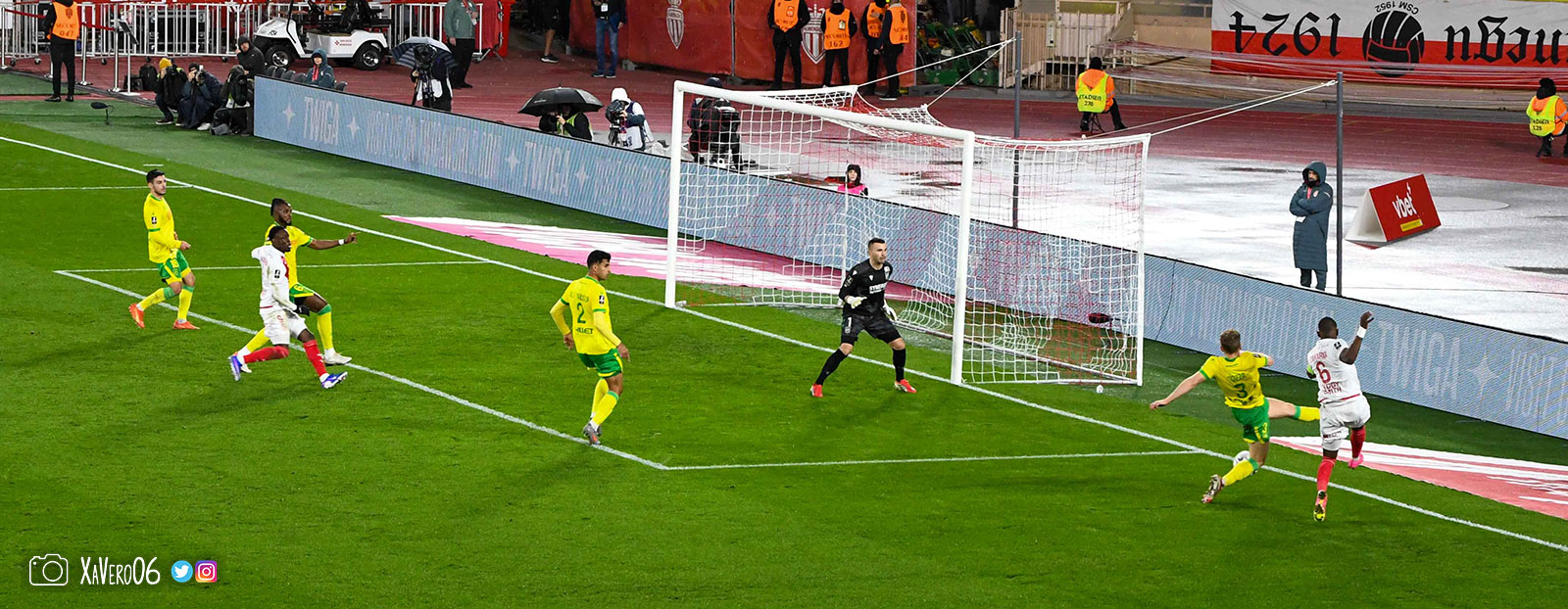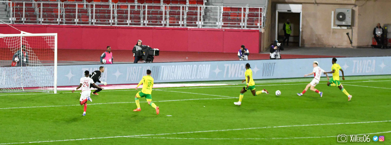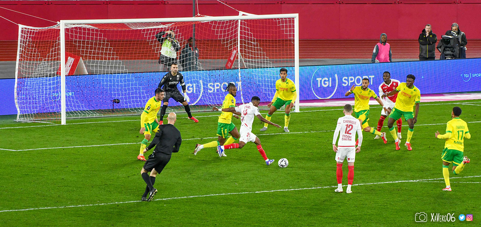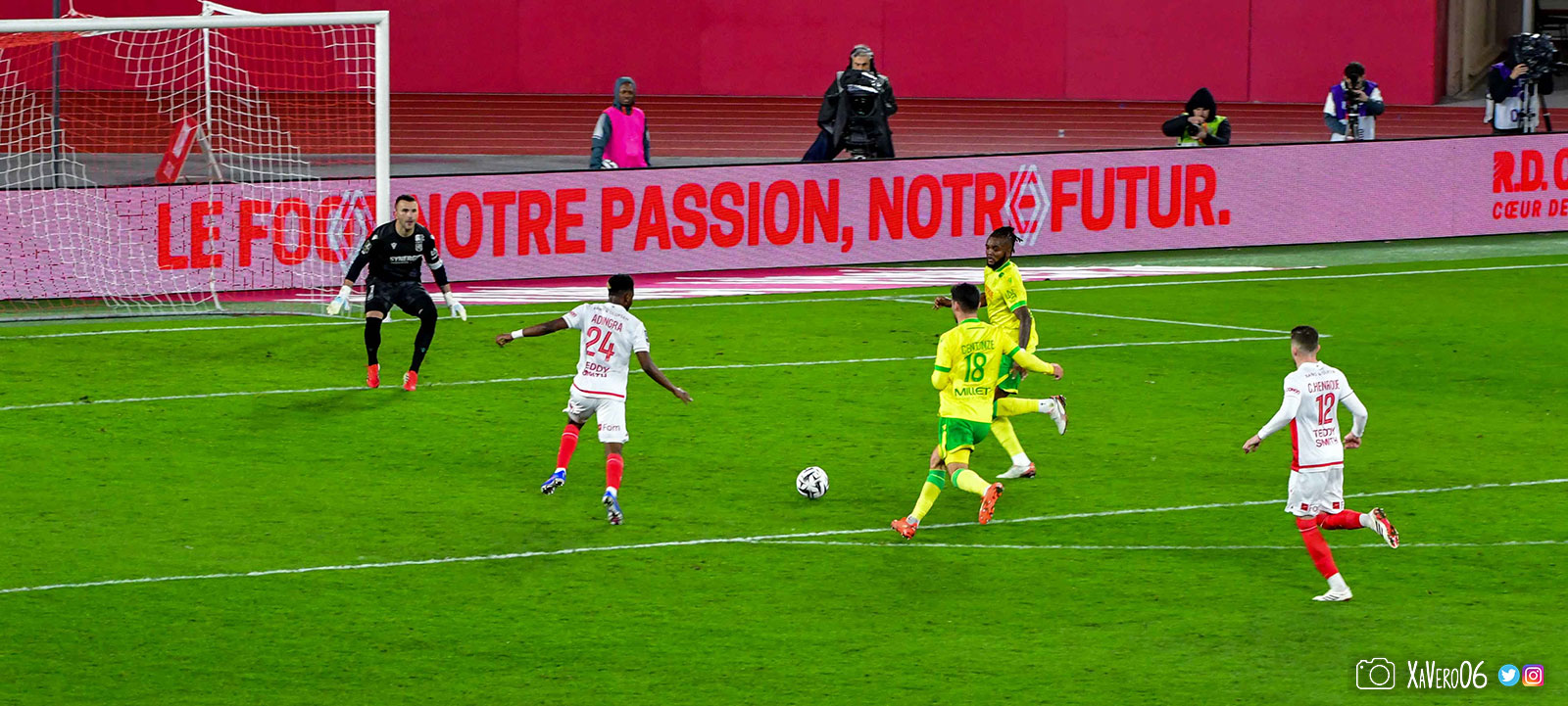 - Nantes a le ballon, fait tourner sans trouver la faille aux 25-30m. Monaco contre avec Teze dans le rond central qui met à gauche sur Simon Adingra qui efface facilement Tabibou, rentre dans la surface et met en retrait au point de pénalty où il n'y a personne car Fati et Biereth avaient fait le même appel aux 6m devant le but (82e).