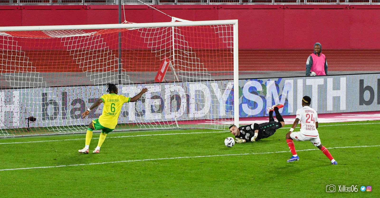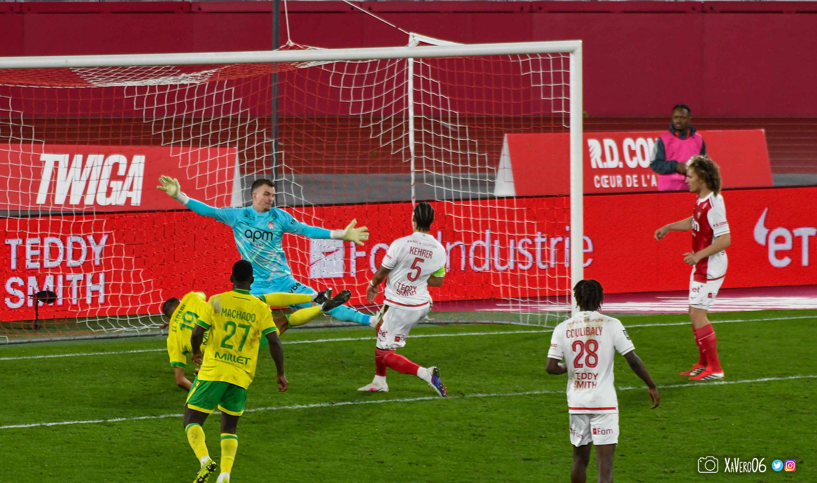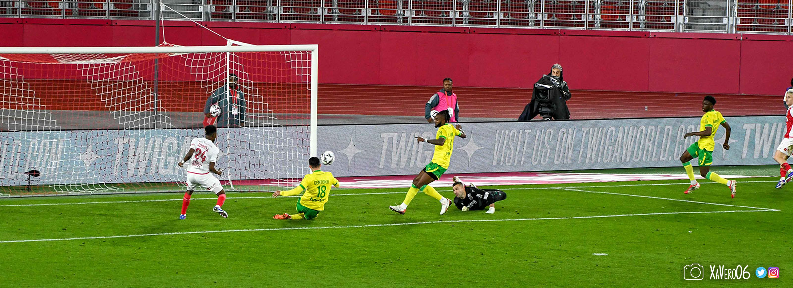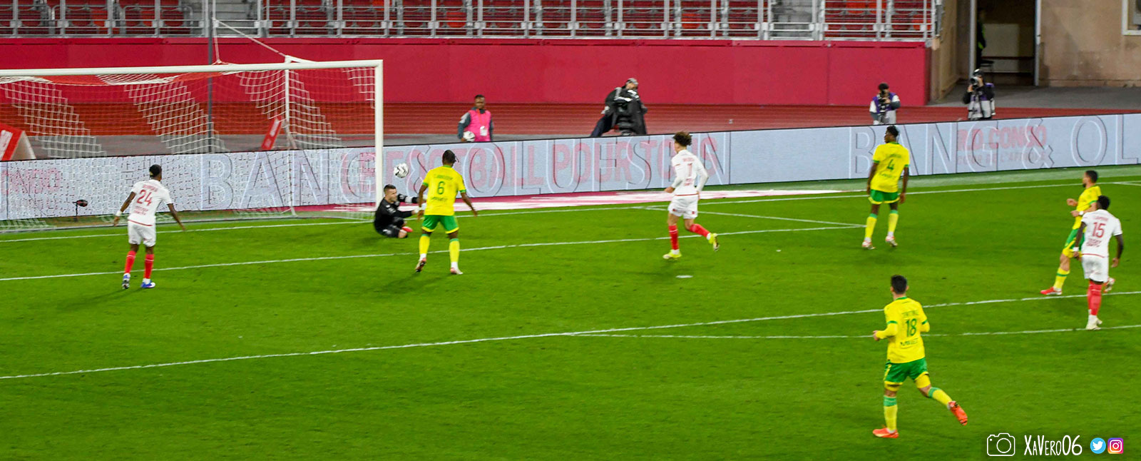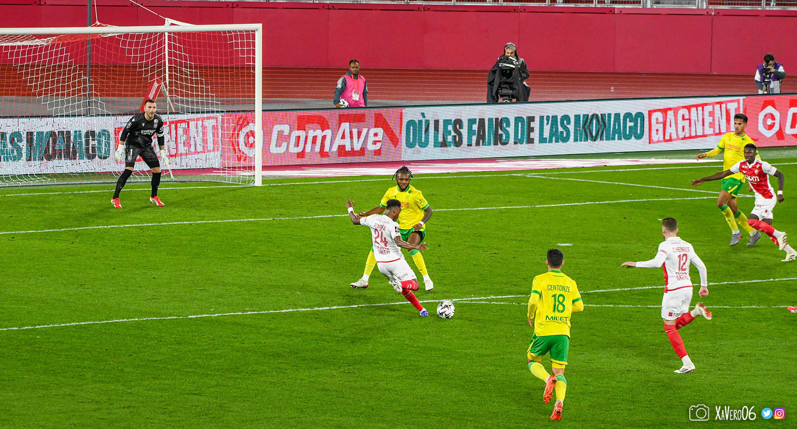 - Nantes a le ballon, fait tourner sans trouver la faille aux 25-30m. Monaco contre avec Teze dans le rond central qui met à gauche sur Simon Adingra qui efface facilement Tabibou, rentre dans la surface et met en retrait au point de pénalty où il n'y a personne car Fati et Biereth avaient fait le même appel aux 6m devant le but (82e).