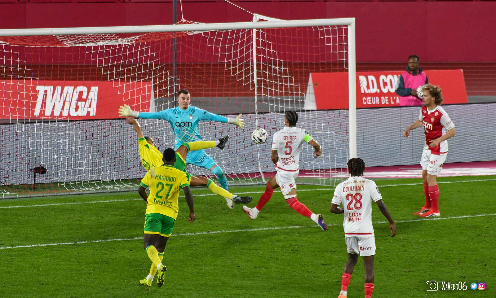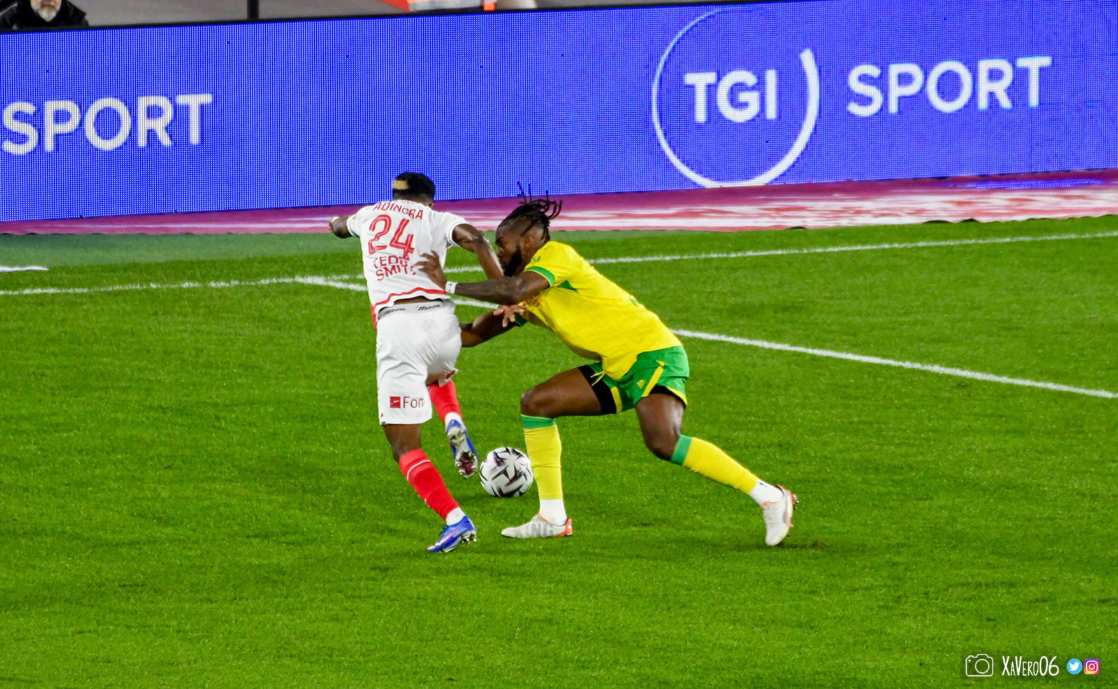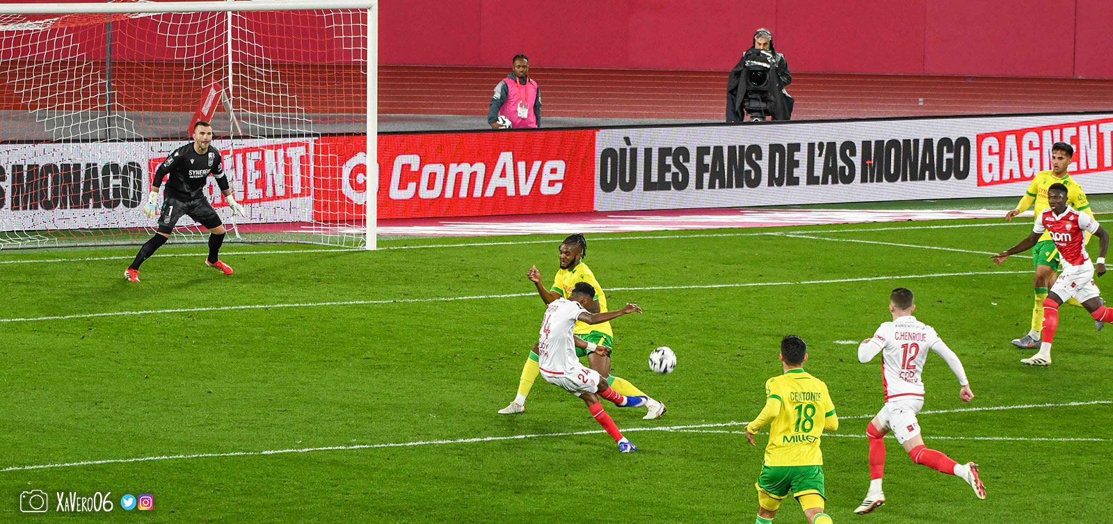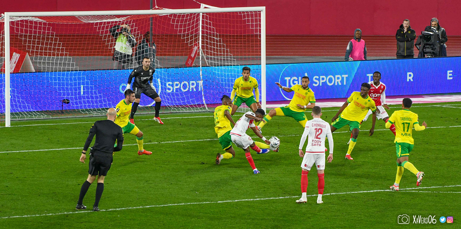 - Nantes a le ballon, fait tourner sans trouver la faille aux 25-30m. Monaco contre avec Teze dans le rond central qui met à gauche sur Simon Adingra qui efface facilement Tabibou, rentre dans la surface et met en retrait au point de pénalty où il n'y a personne car Fati et Biereth avaient fait le même appel aux 6m devant le but (82e).