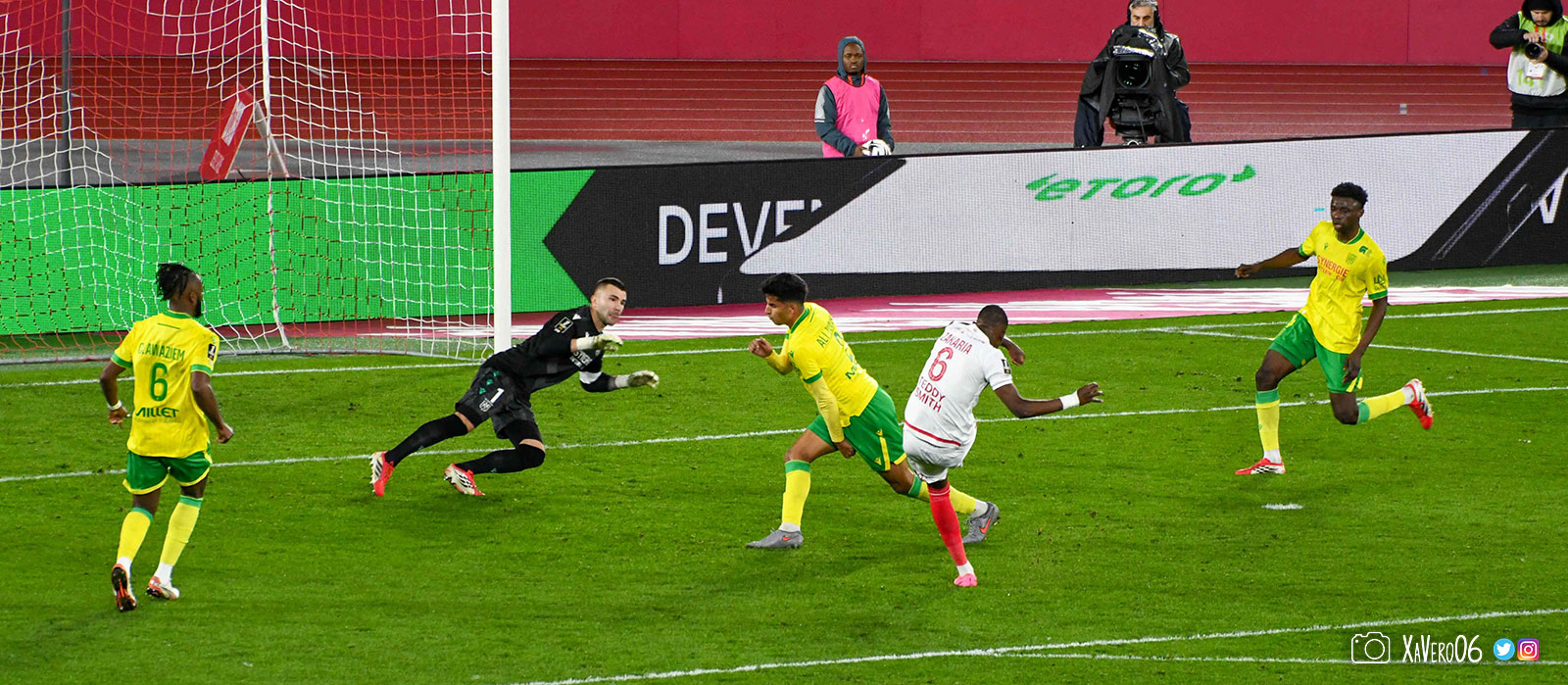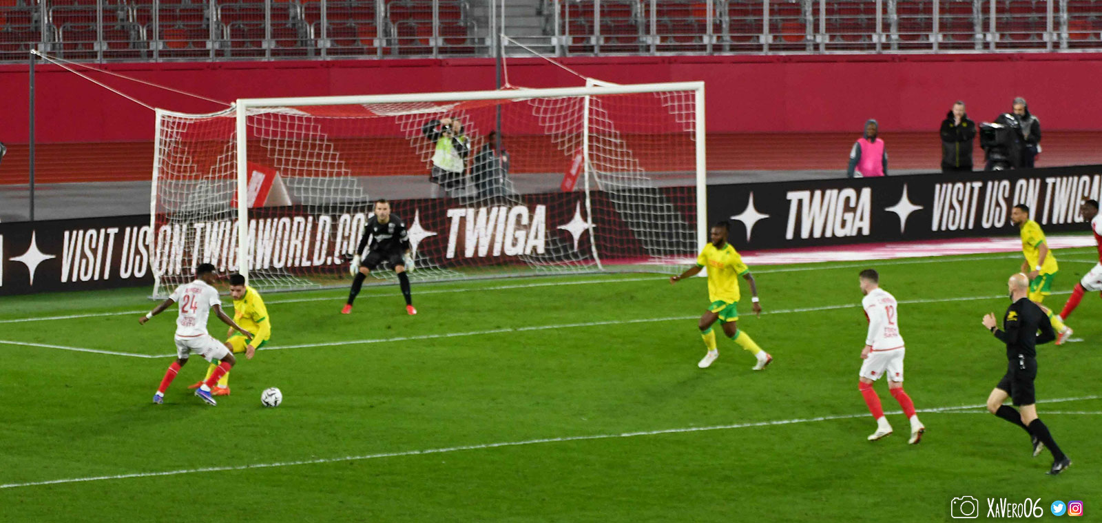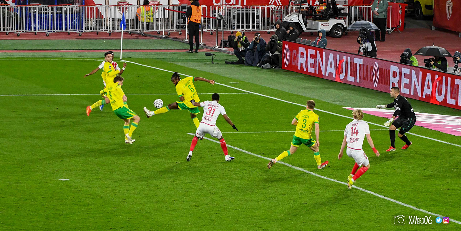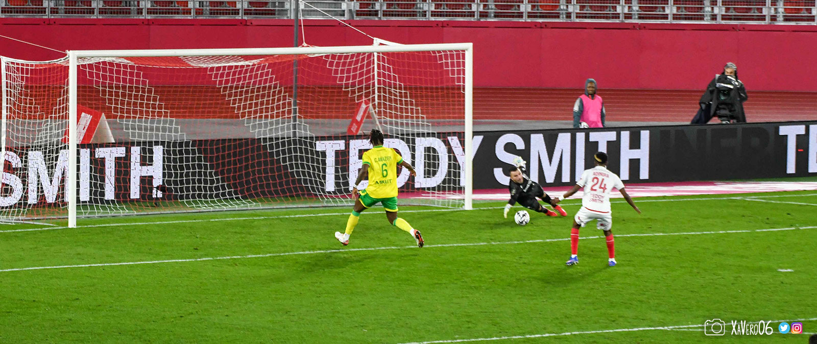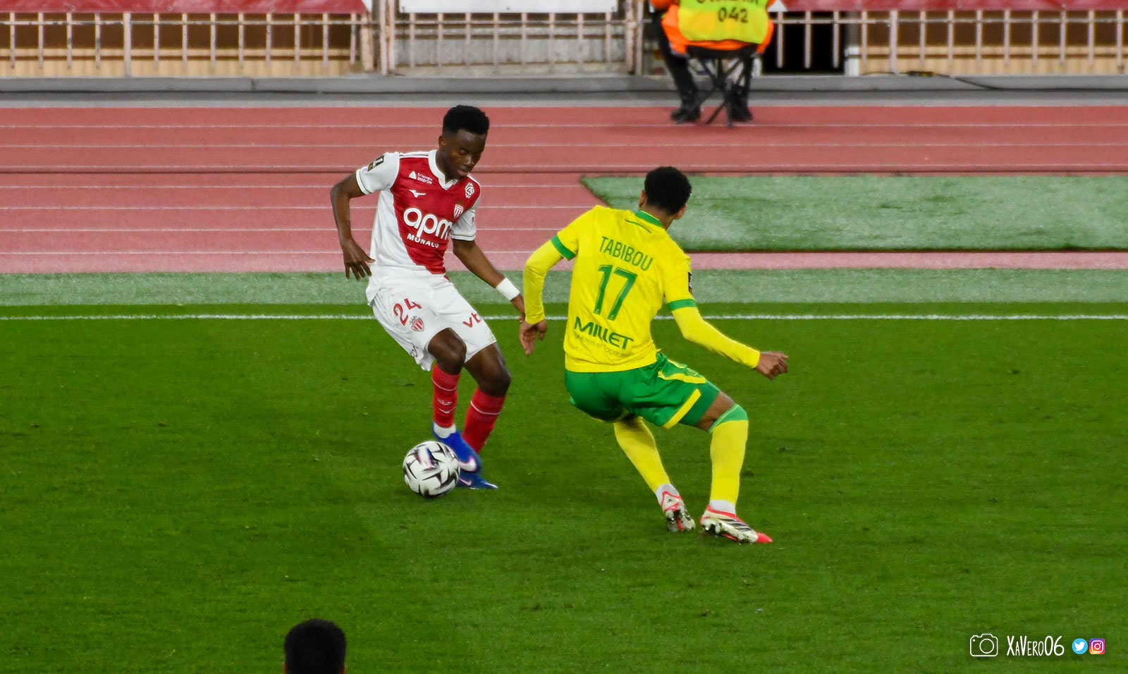- Nantes a le ballon, fait tourner sans trouver la faille aux 25-30m. Monaco contre avec Teze dans le rond central qui met à gauche sur Simon Adingra qui efface facilement Tabibou, rentre dans la surface et met en retrait au point de pénalty où il n'y a personne car Fati et Biereth avaient fait le même appel aux 6m devant le but (82e).