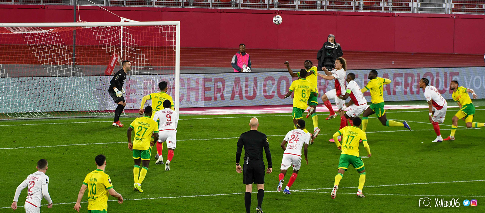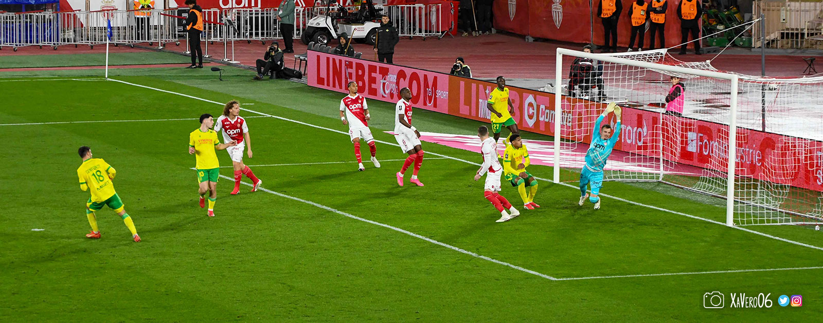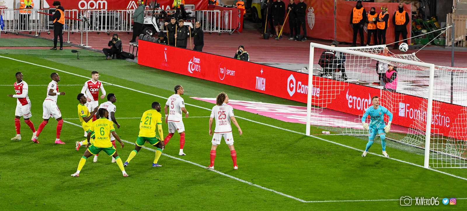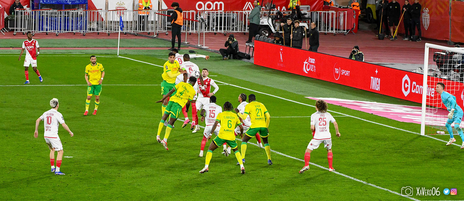 - Sur une remise en jeu, Akliouche lance Golovin dans le dos de la défense nantaise côté droit, rentre dans la surface et centre pour le second poteau et Simon Adingra, devancé par Centonze qui met en corner (16e).